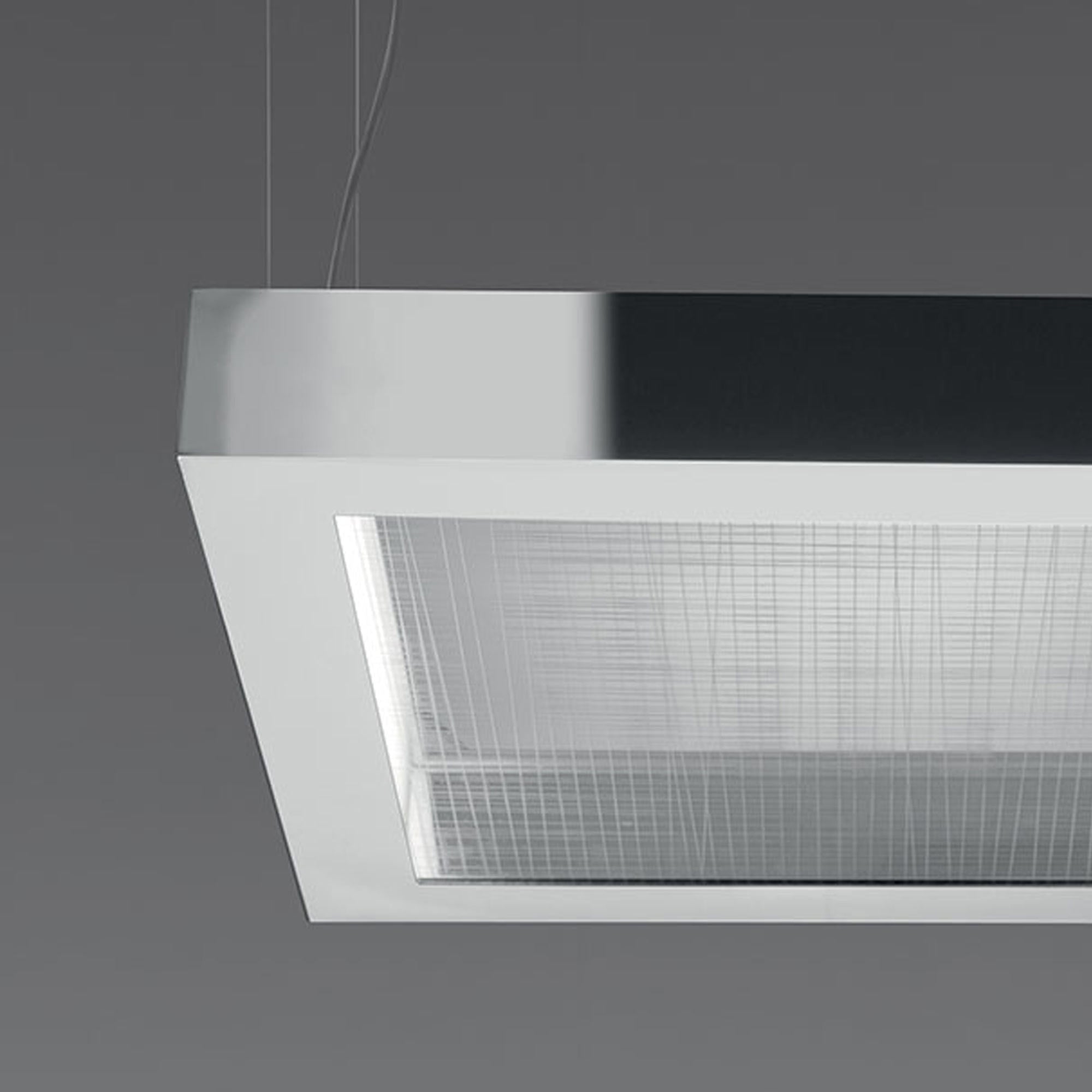 Transform interiors with the sleek Altrove 600 LED Pendant Light from Artemide, featuring an etched diffuser with textured thread-inspired striations. The slim boxy silhouette hovers over a space, reflecting its surroundings elegantly thanks to a gleaming mirror polished aluminum surface. Suspend this wonderful energy-efficient pendant light above for a bold yet minimalist aesthetic.