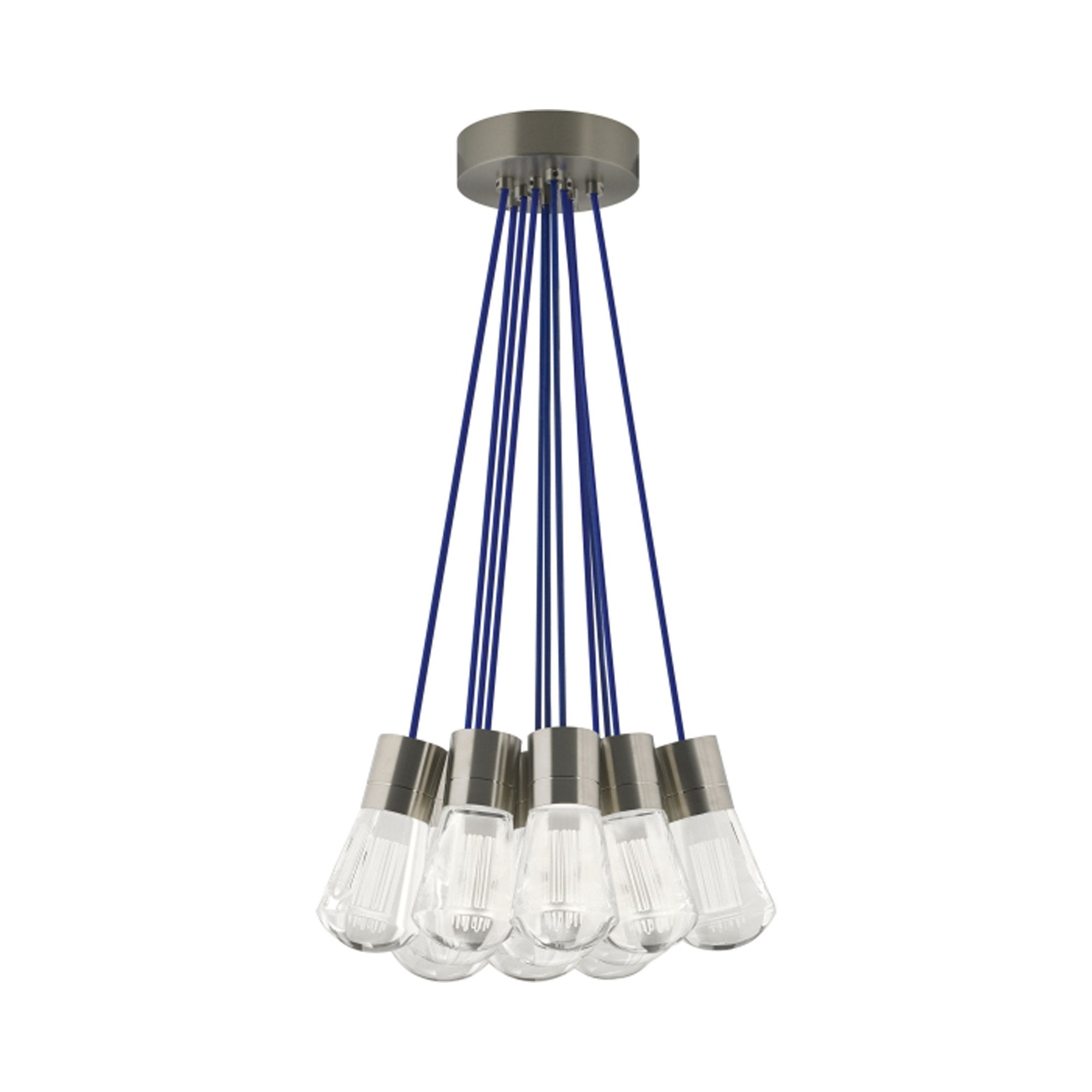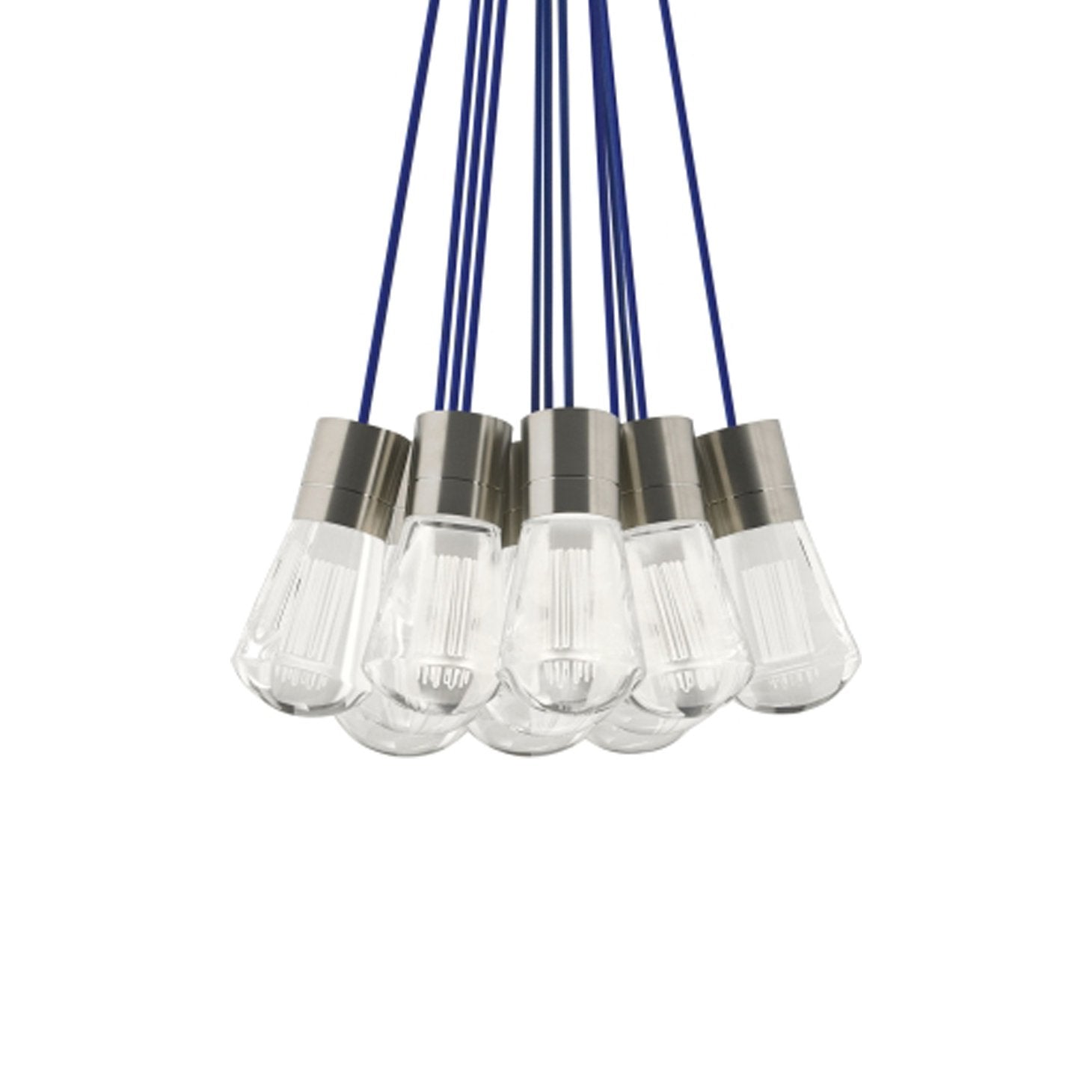 The Alva 11-Light LED Pendant Light, by Sean Lavin for Visual Comfort Modern, is a classic Edison-style squirrel cage lamp reincarnated as a modern socket and cord-style LED pendant light. Alva features a powerful downward-firing LED that is smartly hidden within the "socket" then combined with a solid "bulb" of pure optic crystal. Intricately detailed "filaments" are laser-etched into the crystal for a visually intriguing light fixture. With a modern take on the cord-style trend Alva is customizable to your style. Choose from three finishes and eight cord colors to match any décor in your kitchen, bathroom and living room. Also available as a 3-, 7-, and 11-lite chandeliers (canopy included).