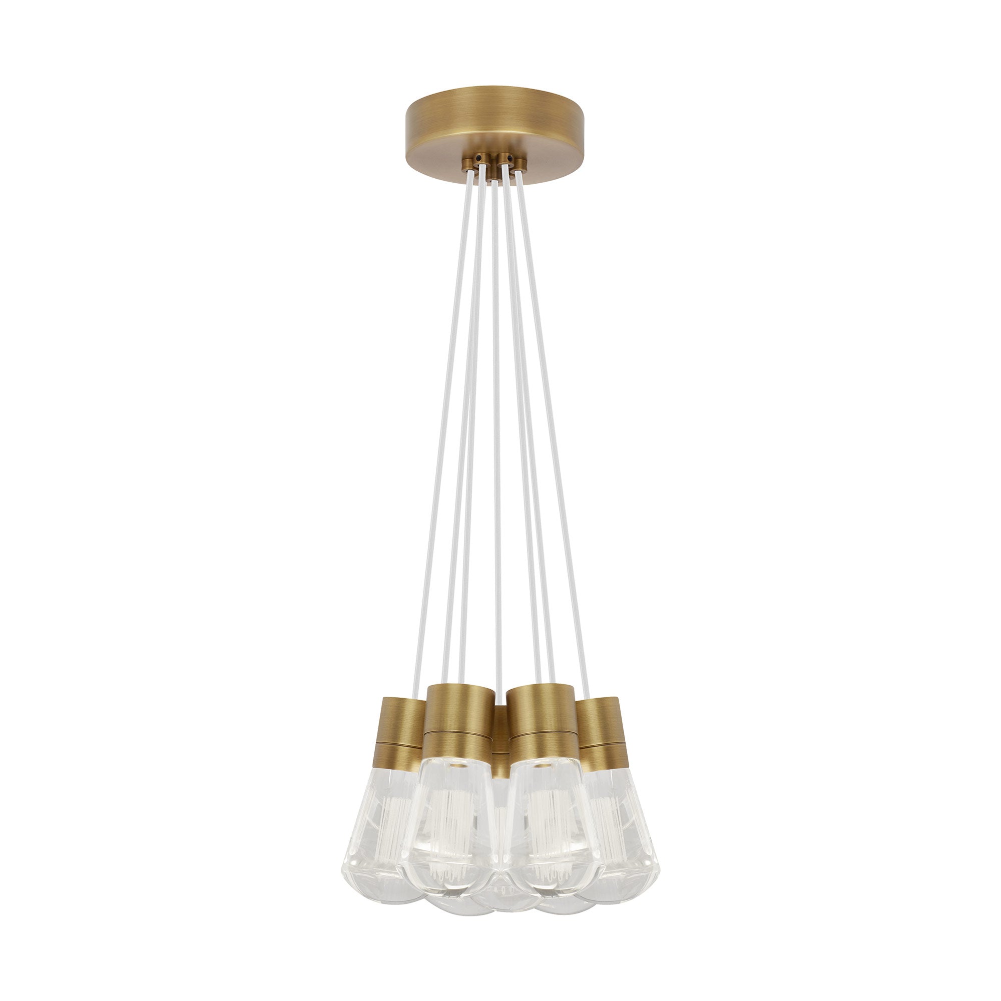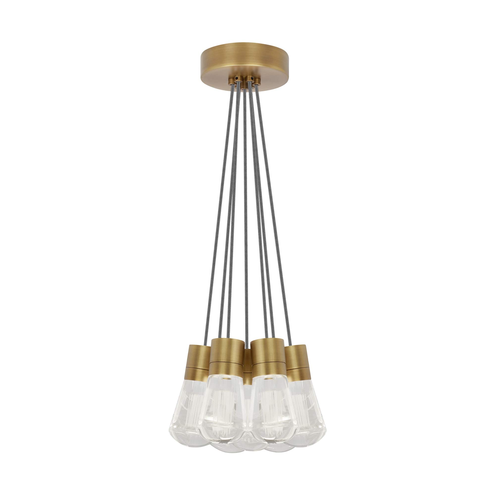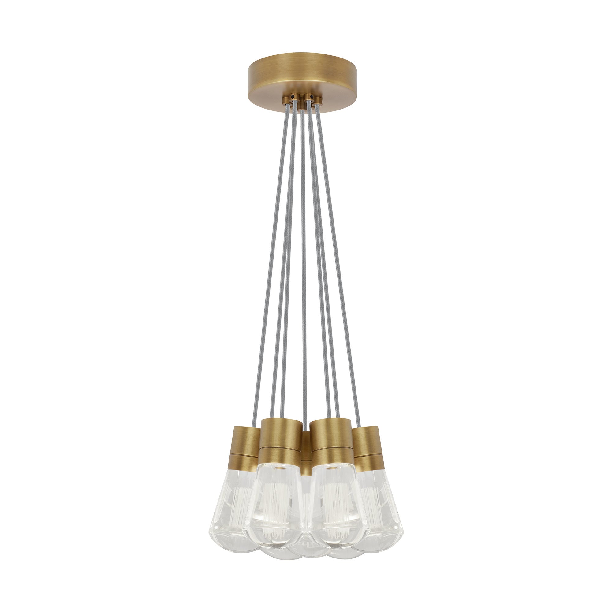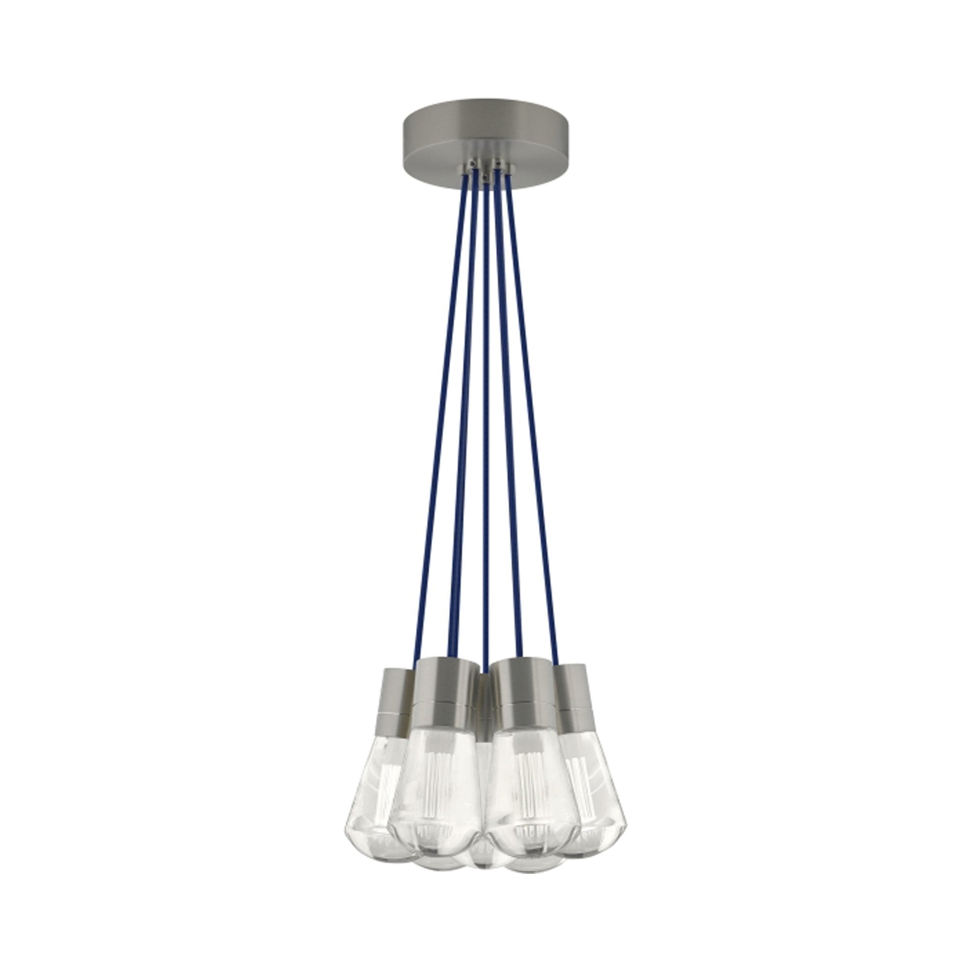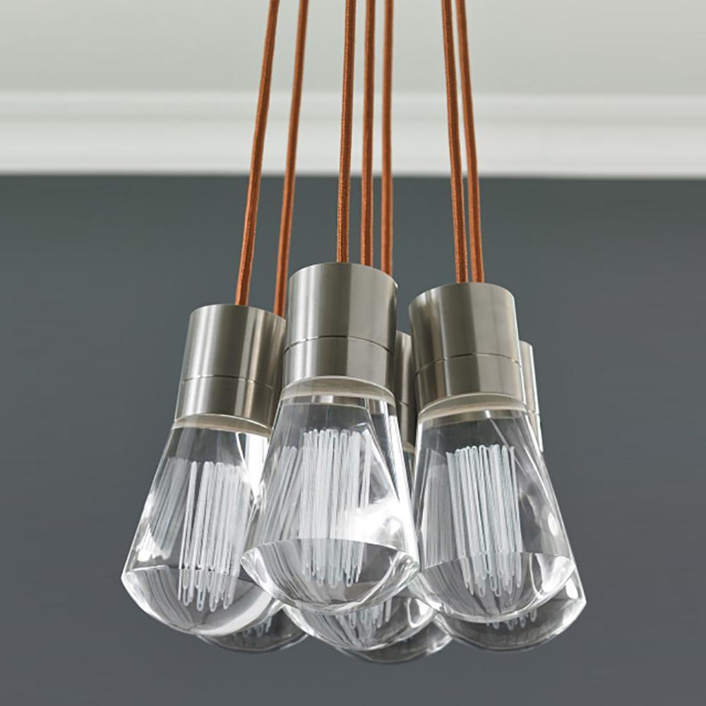 The Alva 7-Light LED Pendant Light, by Sean Lavin for Visual Comfort Modern, is a classic Edison-style squirrel cage lamp reincarnated as a modern socket and cord-style LED pendant light. Alva features a powerful downward-firing LED that is smartly hidden within the "socket" then combined with a solid "bulb" of pure optic crystal. Intricately detailed "filaments" are laser-etched into the crystal for a visually intriguing light fixture. With a modern take on the cord-style trend Alva is customizable to your style. Choose from three finishes and eight cord colors to match any décor in your kitchen, bathroom and living room. Also available as a 3-, 7-, and 11-lite chandeliers (canopy included).