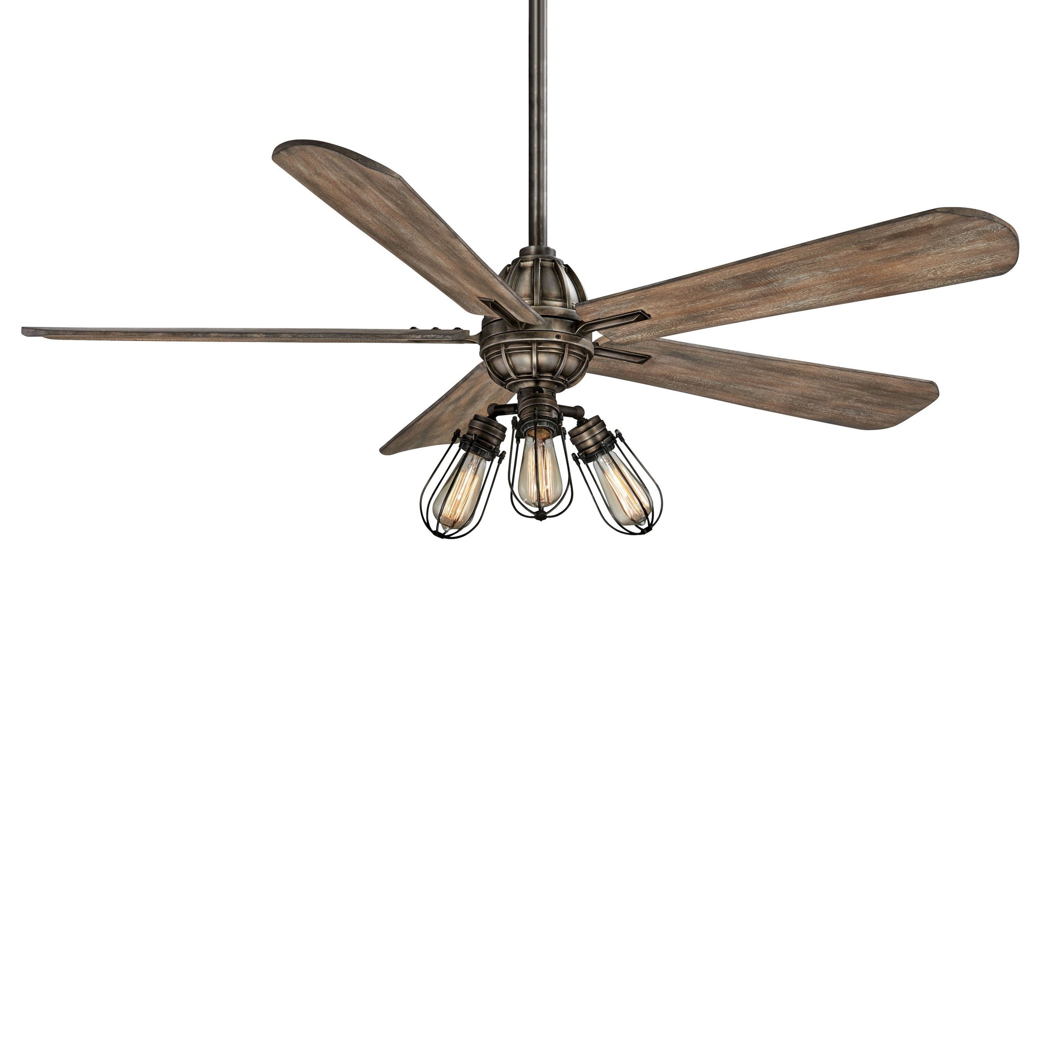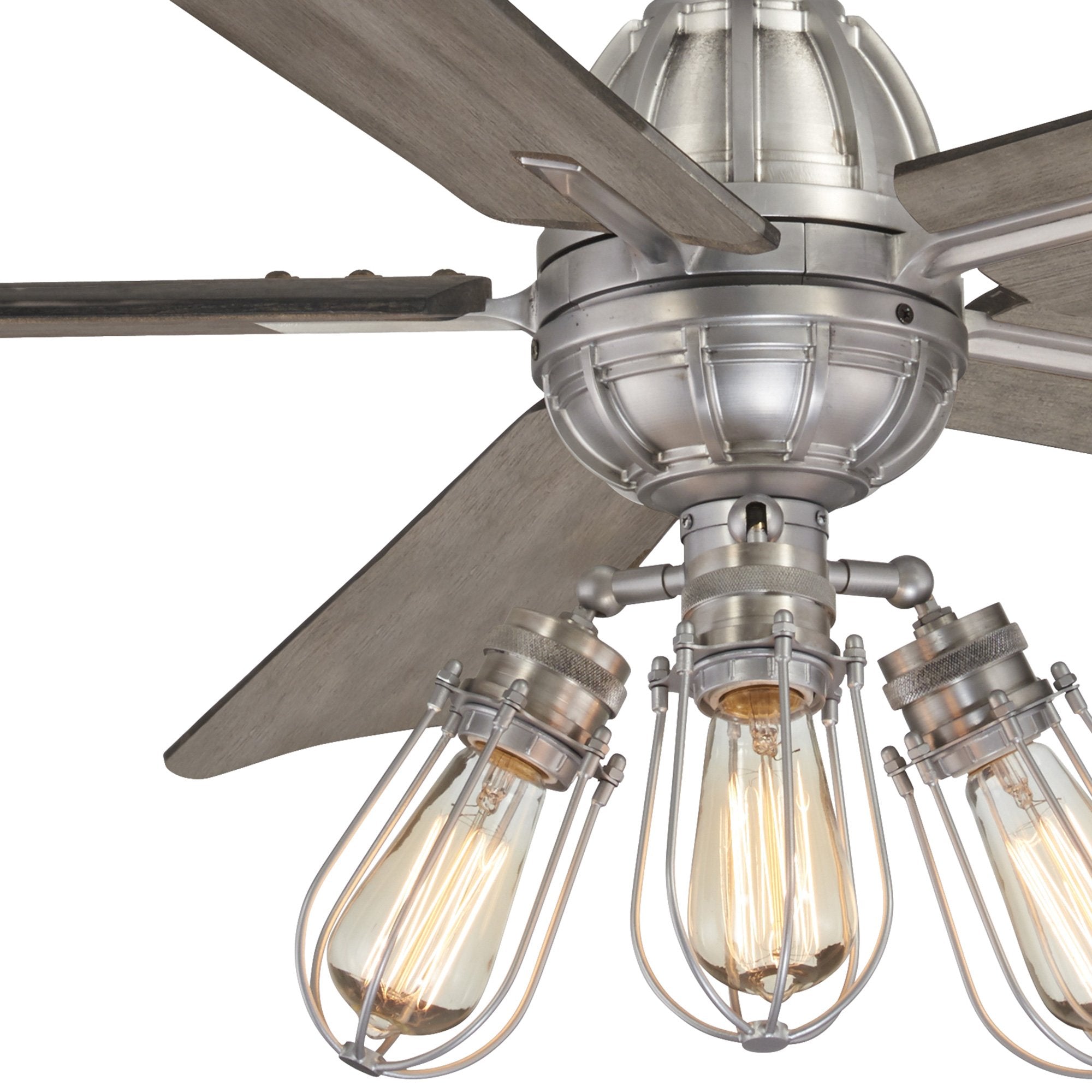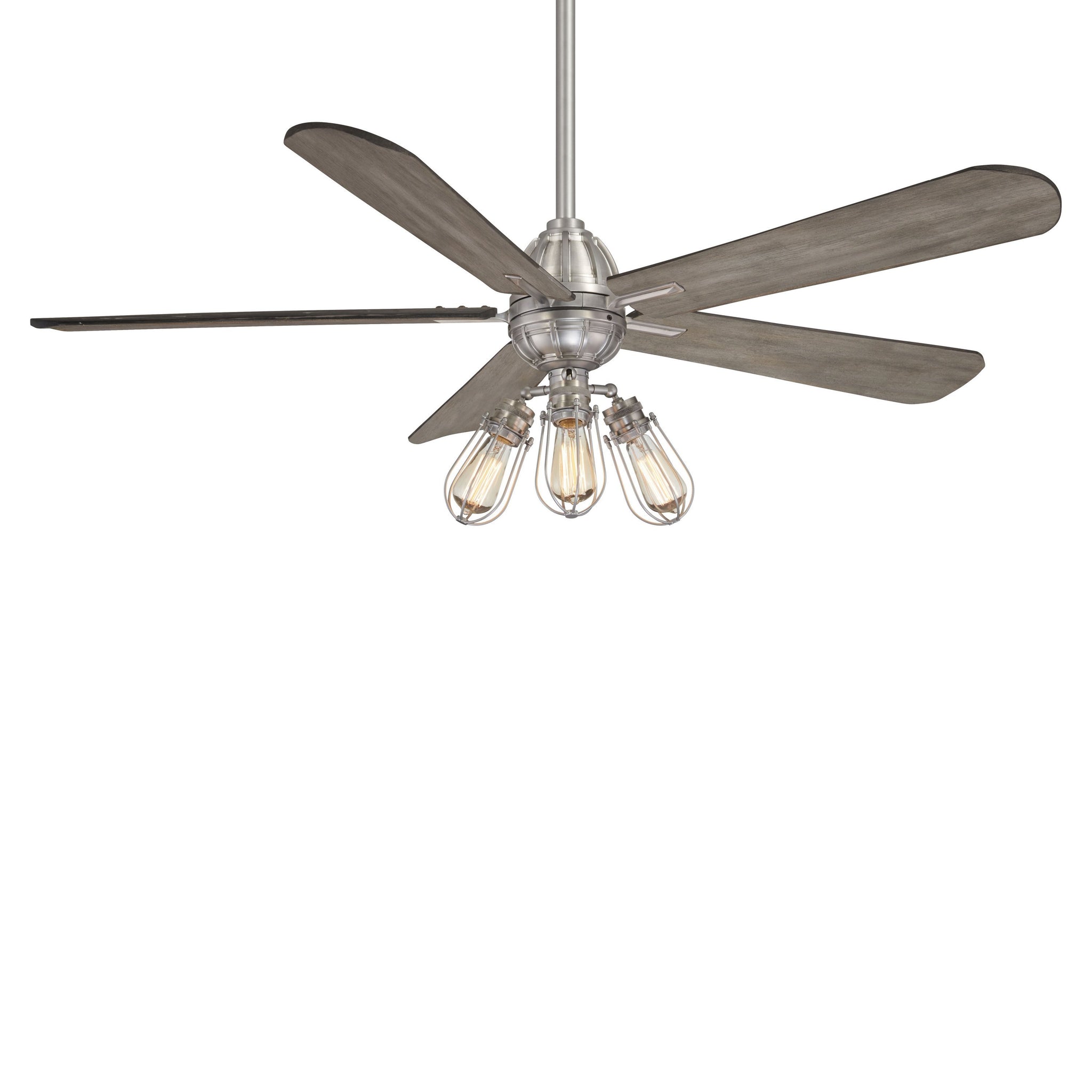 Attention to detail yields a stylish, multi-motif design suitable for casual or upscale spaces. The Alva LED Ceiling Fan from Minka Aire blends industrial-inspired metal cage shades with wood paddle blades and a metal motor, creating a surprisingly adaptable aesthetic with fresh attitude.