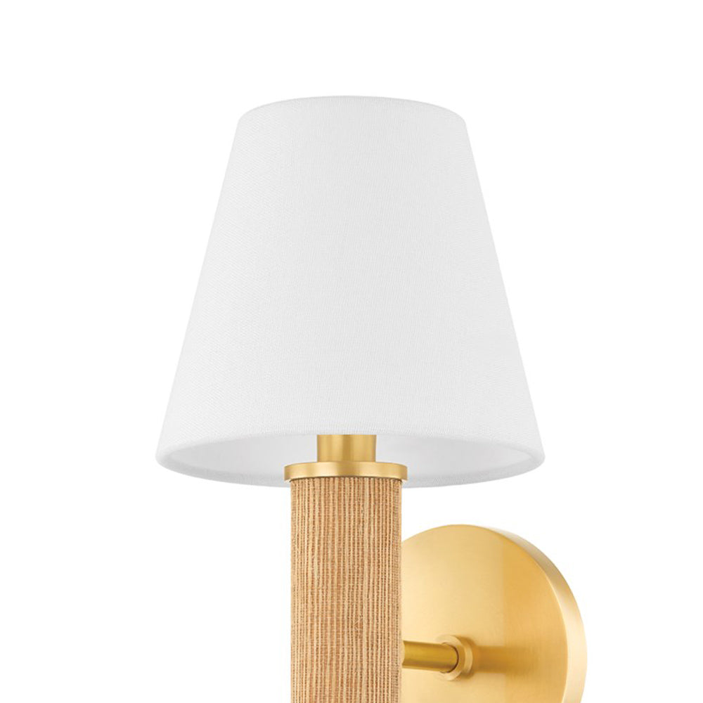 Break the rules of conformity with a fixture that expertly pairs glam with natural and organic essence. The Amabella Wall Light from Mitzi adds a focal point in any space with a grasscloth-wrapped tubular body dressed up with elegant aged brass accents. This ingenious combination reflects an inspired creation to check all the boxes of your signature style repertoire.