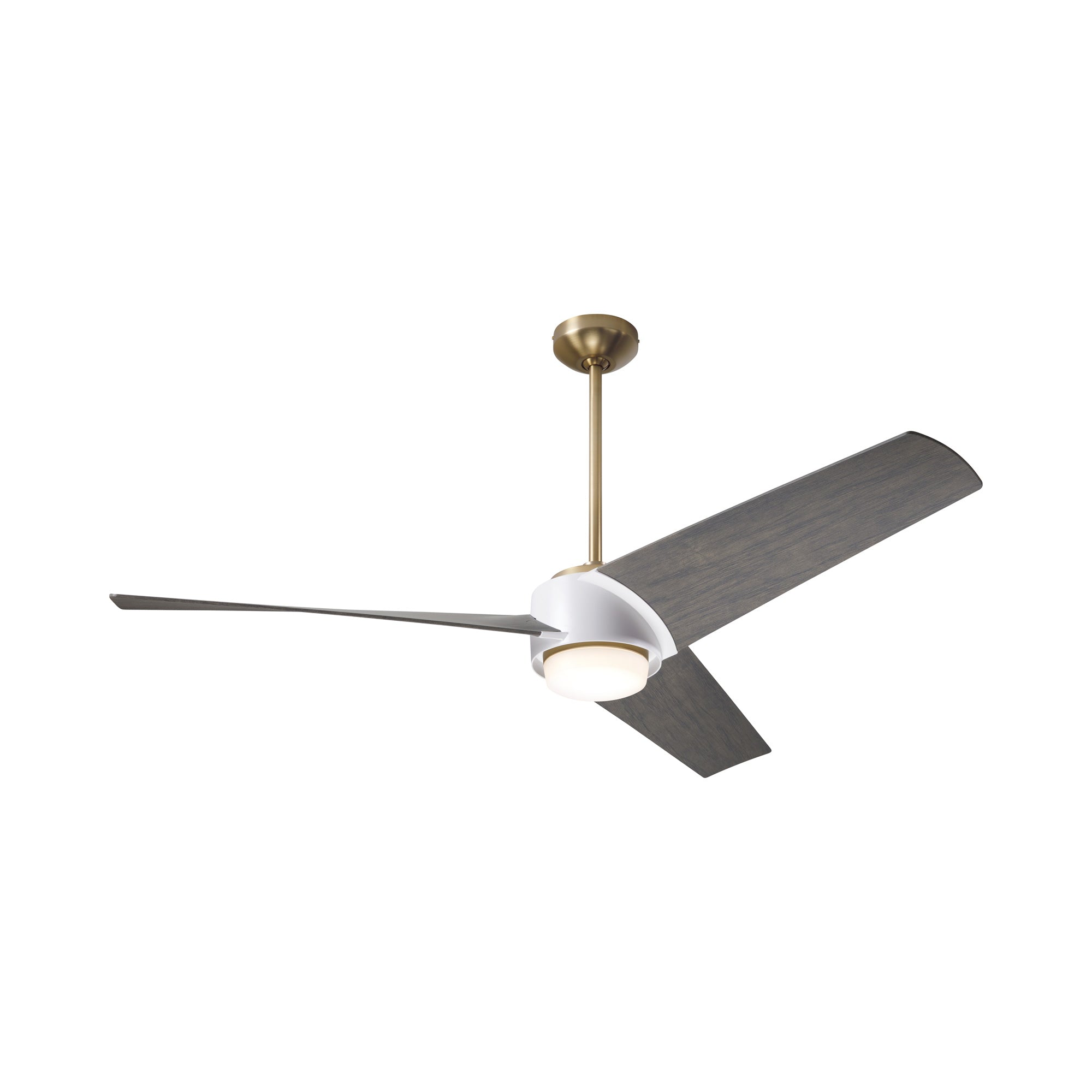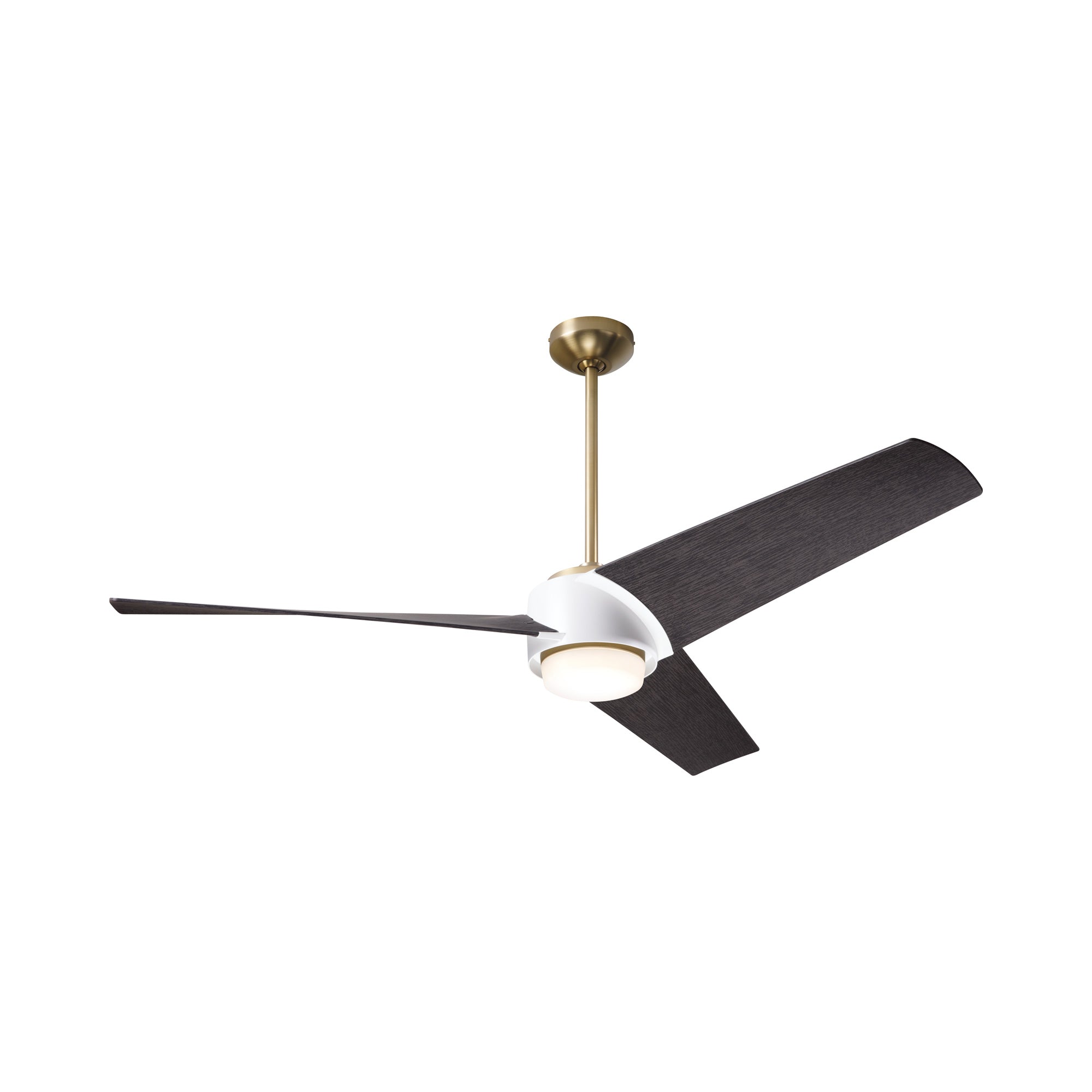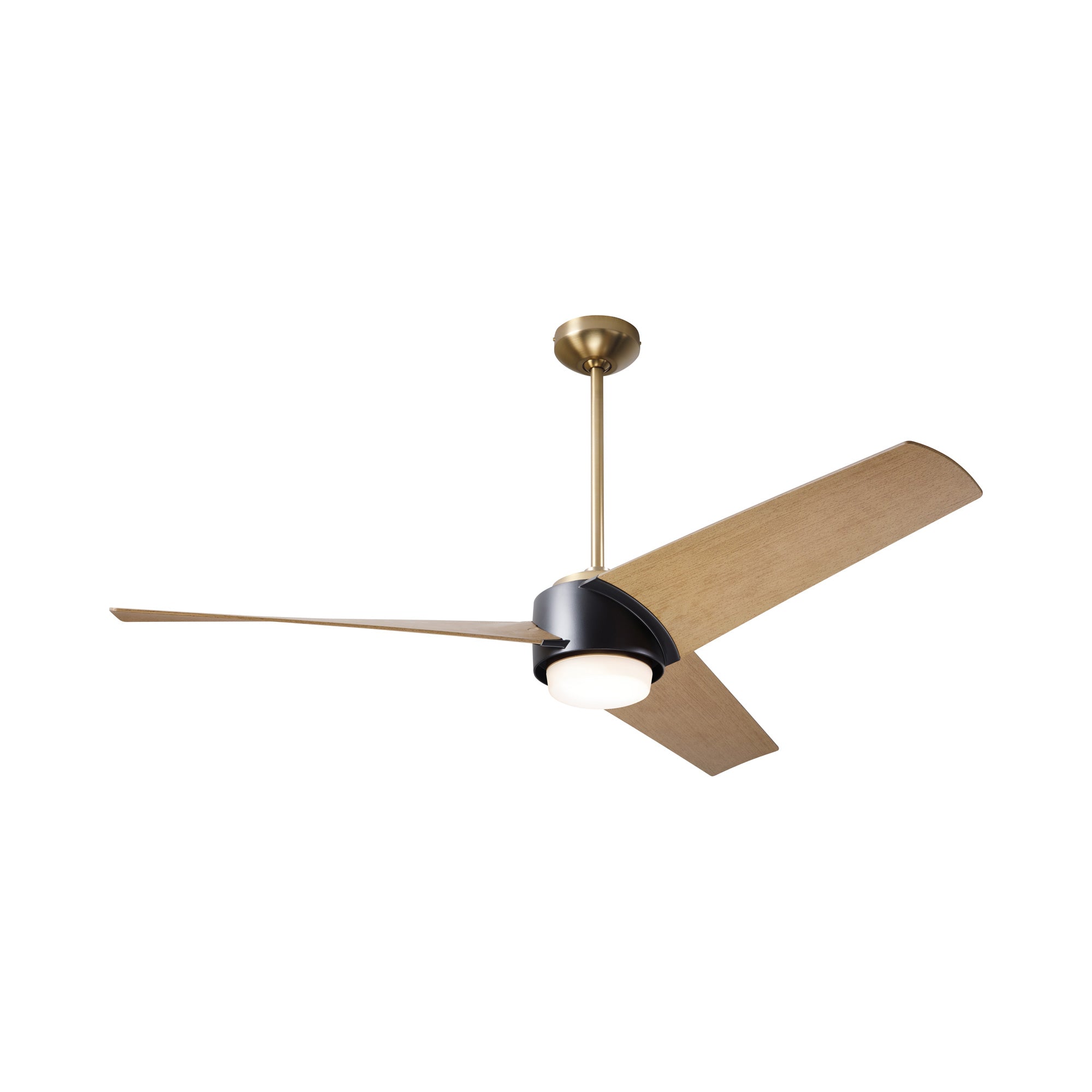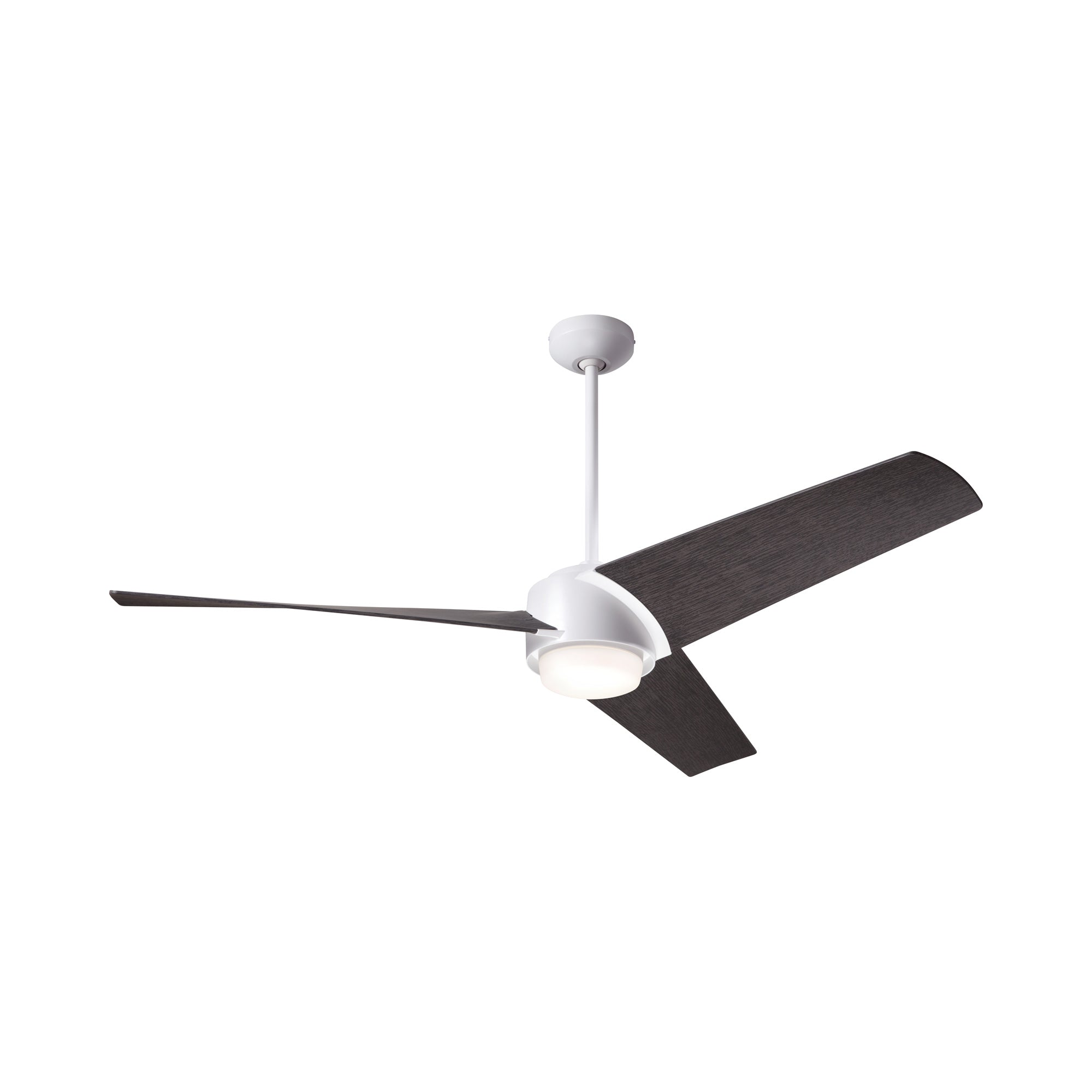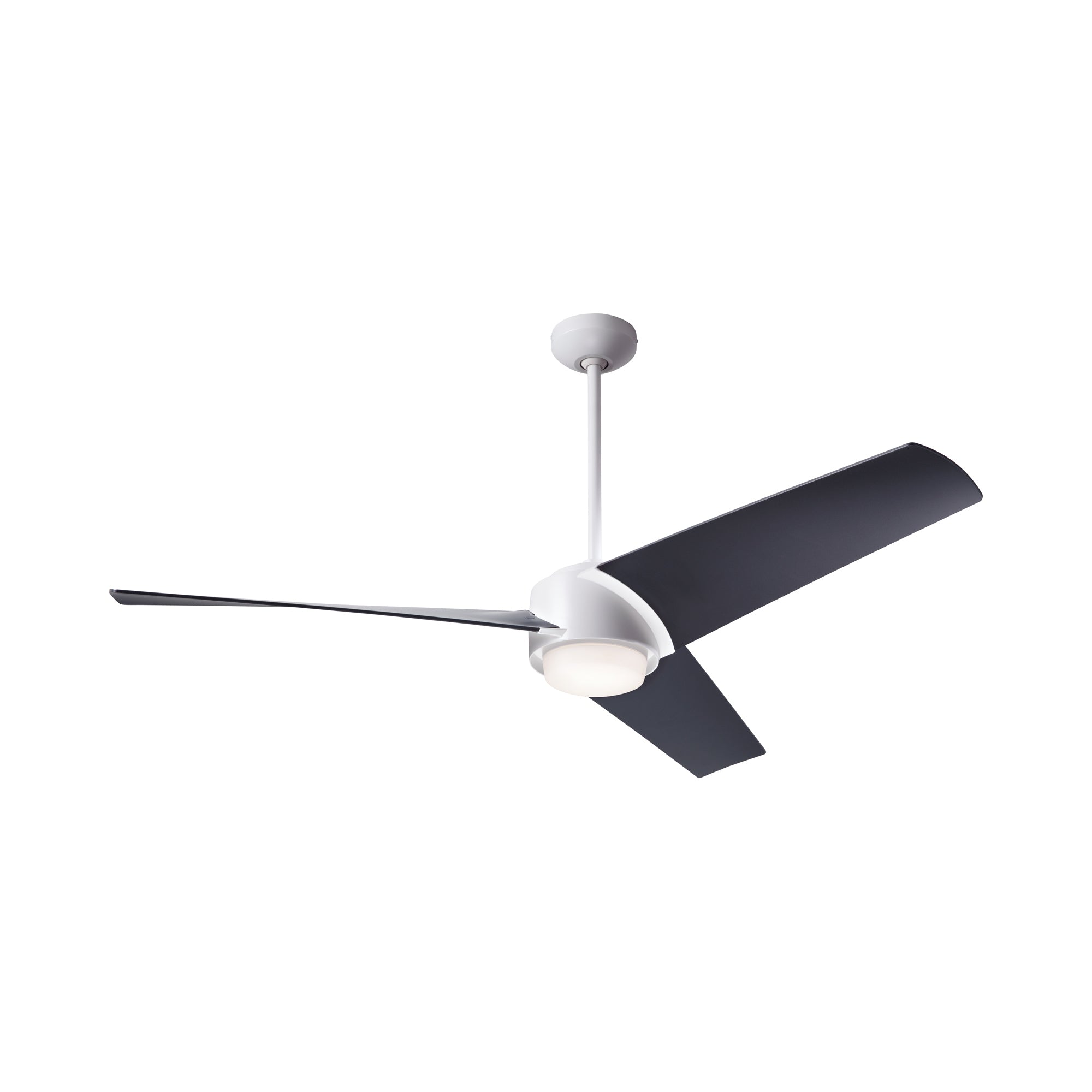 The Ambit DC LED Ceiling Fan from Modern Fan Company updates the aesthetical and functional purpose of ceiling fans, employing six speeds of rotation for ultimate customization and a reversible motor for differing seasons. This three-blade fan is crafted of die-cast aluminum, adding LED energy-efficient lighting to the mix.