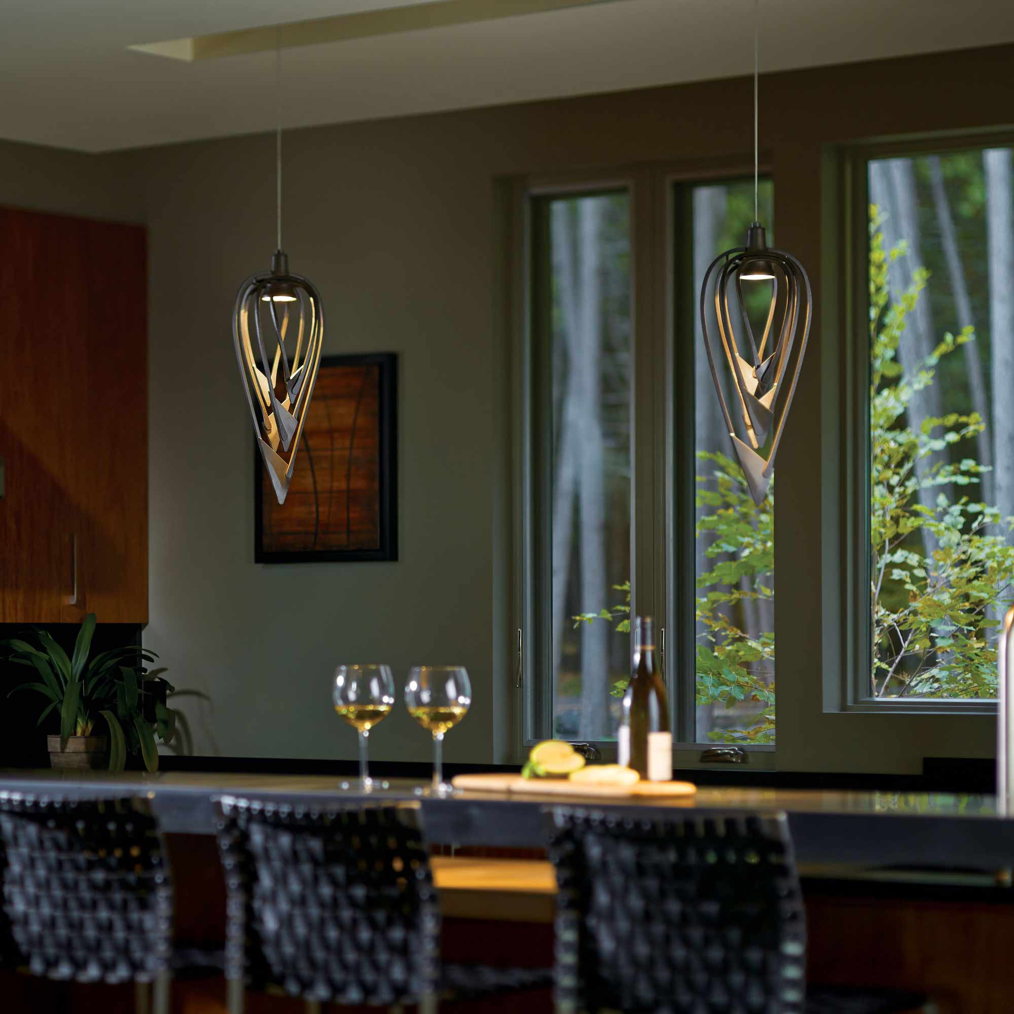 A bold choice inspired from classical jewelry designs, the Amulet Mini Pendant Light from Hubbardton Forge is certain to capture attention.