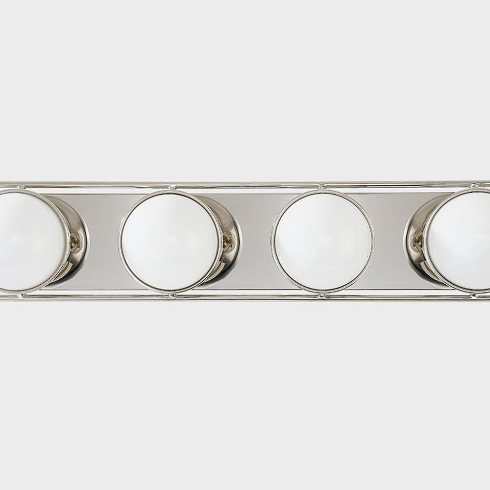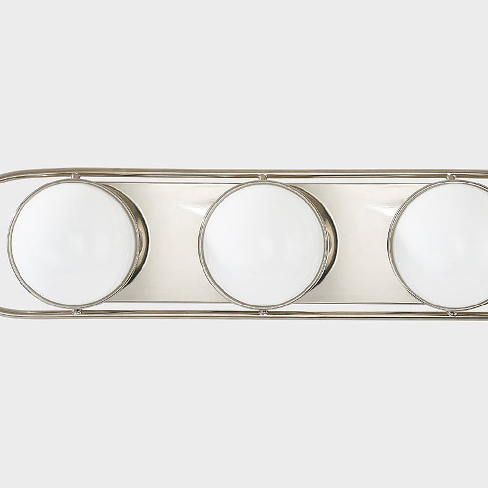 Jewelry inspires bezel setting of opal glass spheres brings impeccable sophistication to the Amy Bath Vanity Light from Mitzi. Chic and refined, it's the perfect solution to a cohesive lighting solution at the vanity, over the tub, and elsewhere in a refined bath.