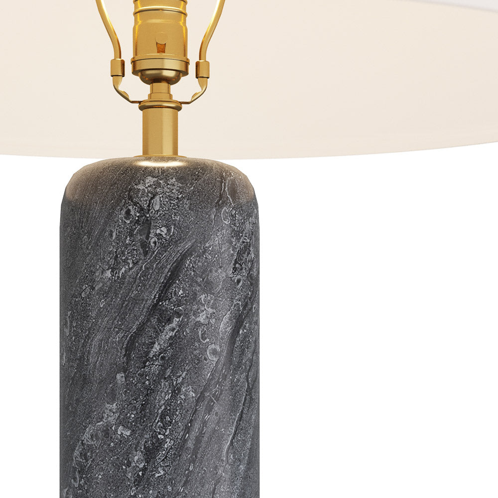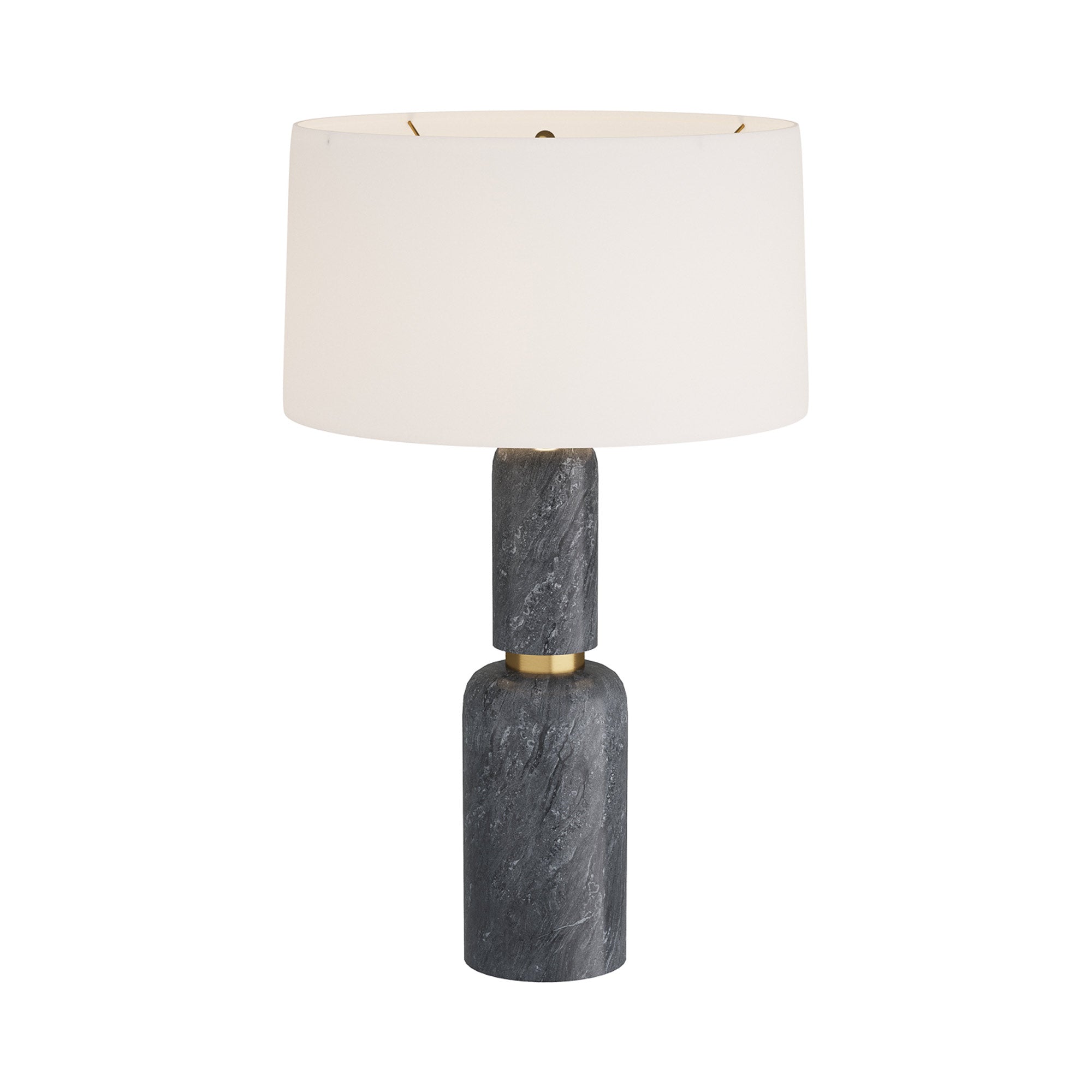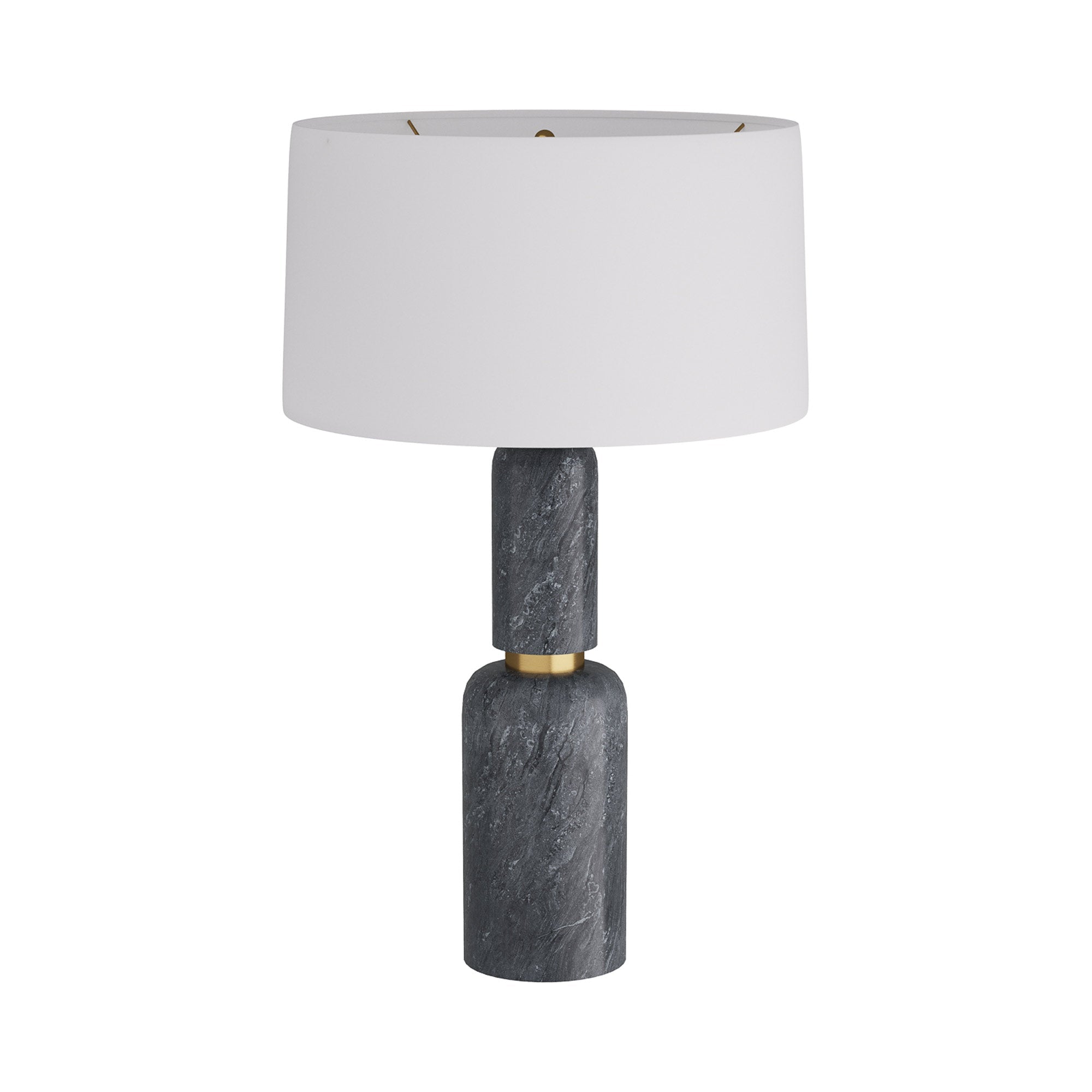 A touch of glam resonates from marble with black and galaxy marble in a lamp with the ultimate in sophistication. The Anapolis Table Lamp from Arteriors and its tiered silhouette presents a mix of minimalism and elegance, with a conventional shade providing contrast and proportion.