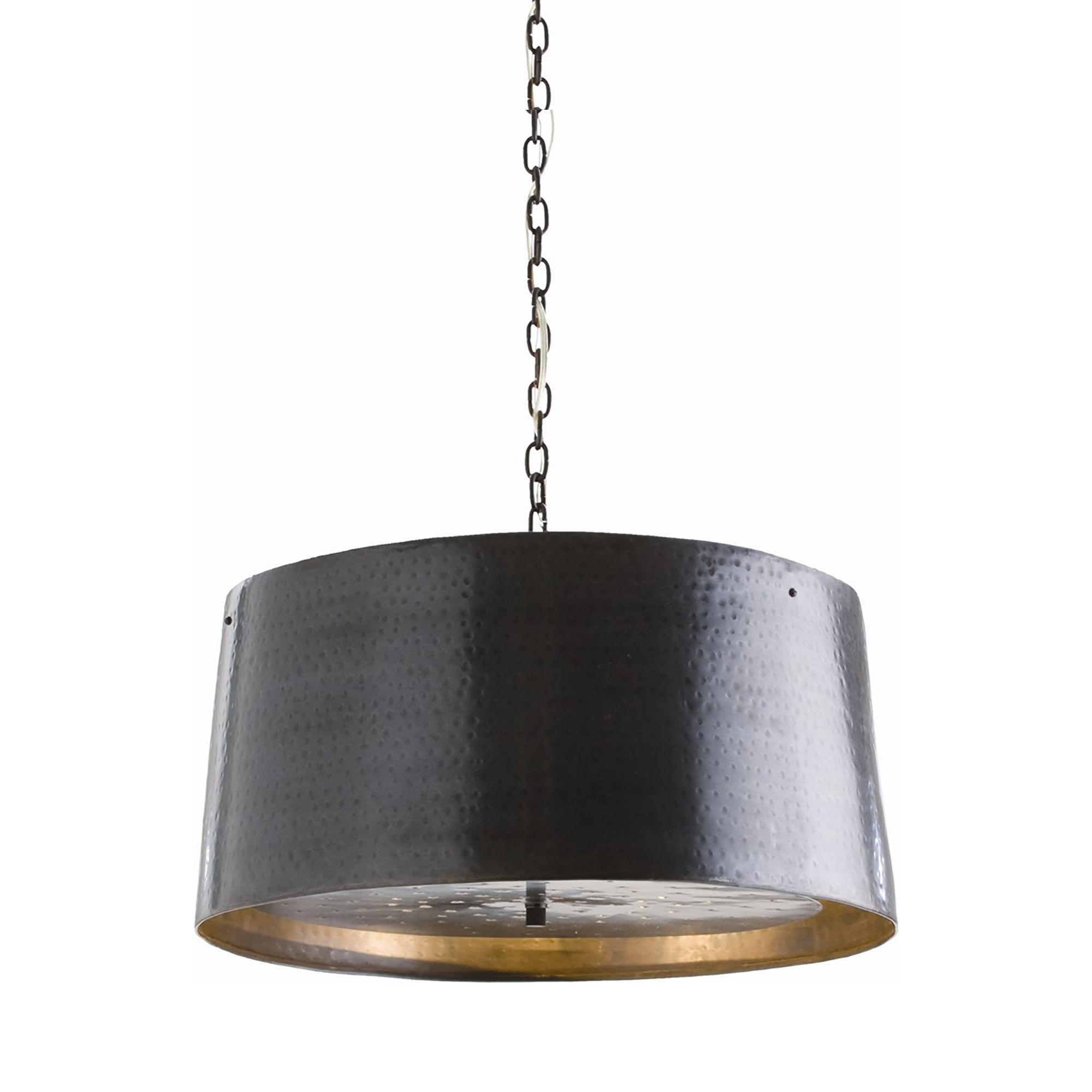 The Anderson Pendant Light from Arteriors exemplifies the design power of industrial influence and creates a versatile and functional source of illumination. What appears to be basic and simple is a tribute to modern artisan fare, as a hammered iron drum shade with a bronze finish outside and inside, and a chic diffuser creating sensational lighting effects.