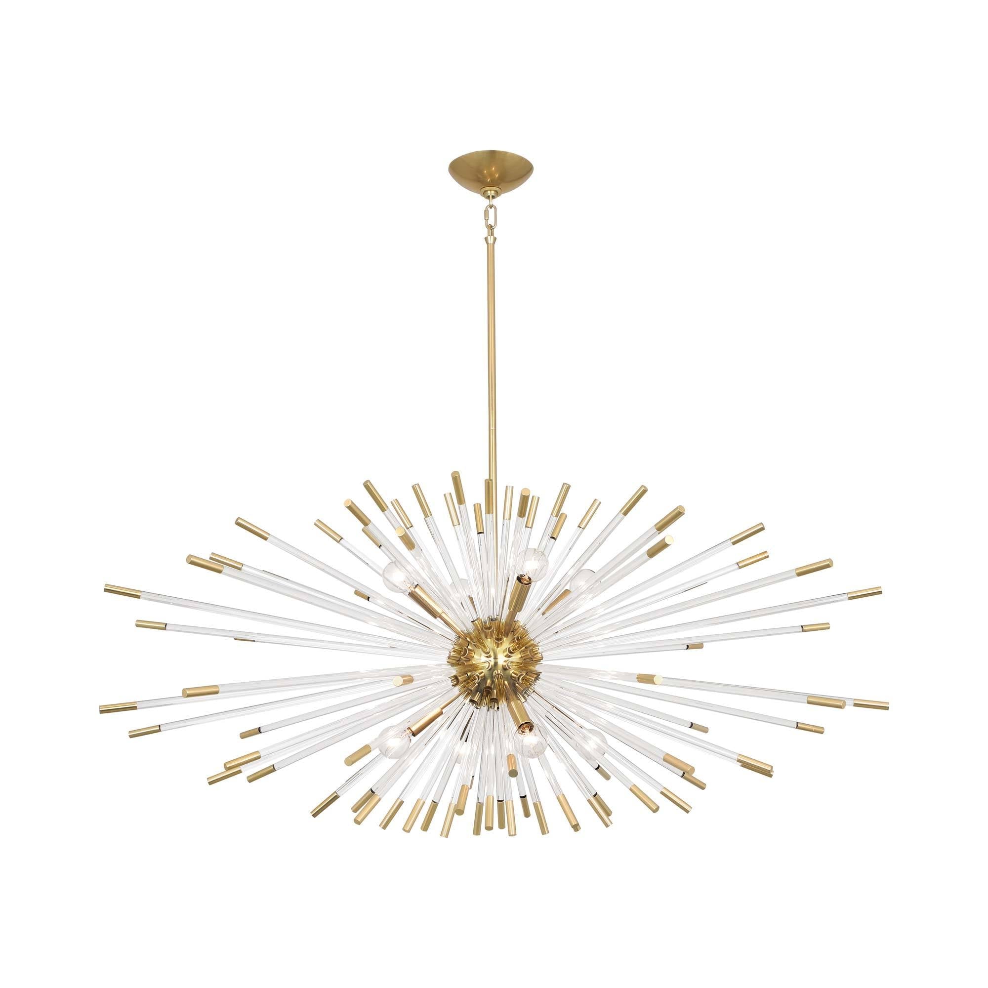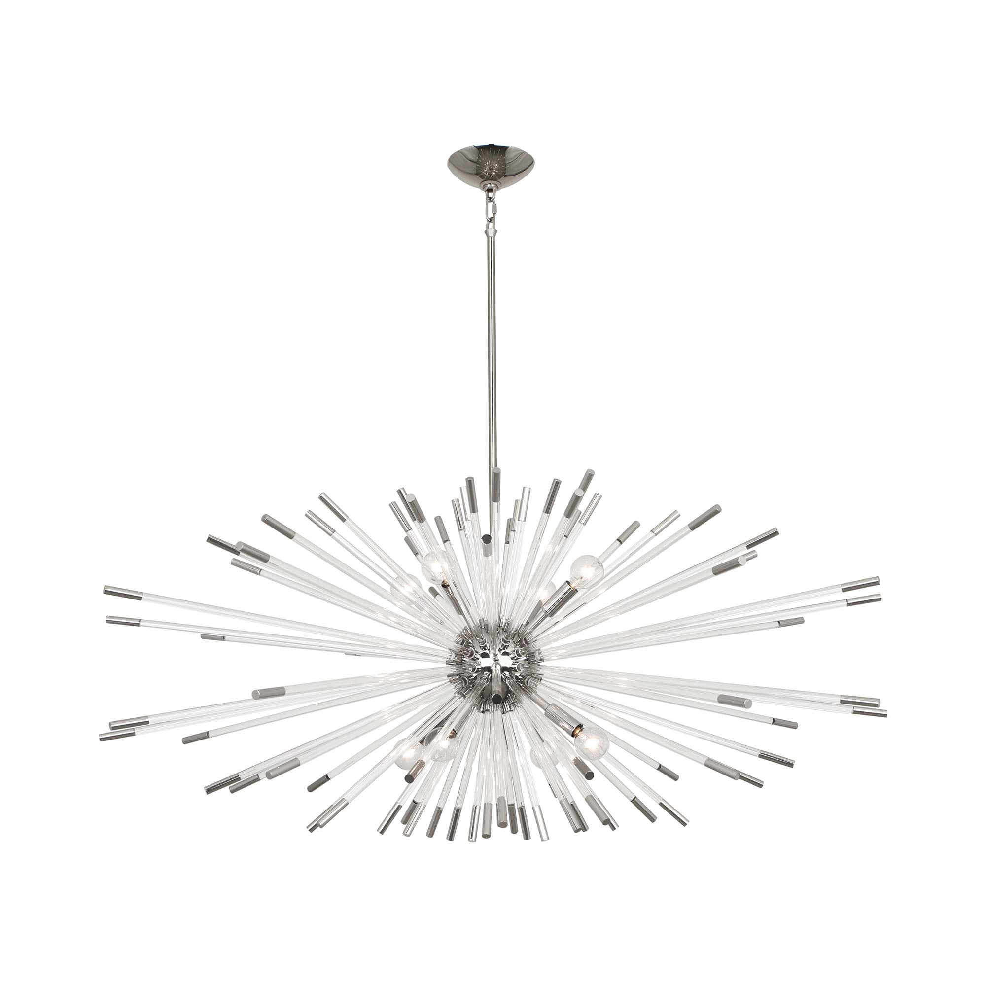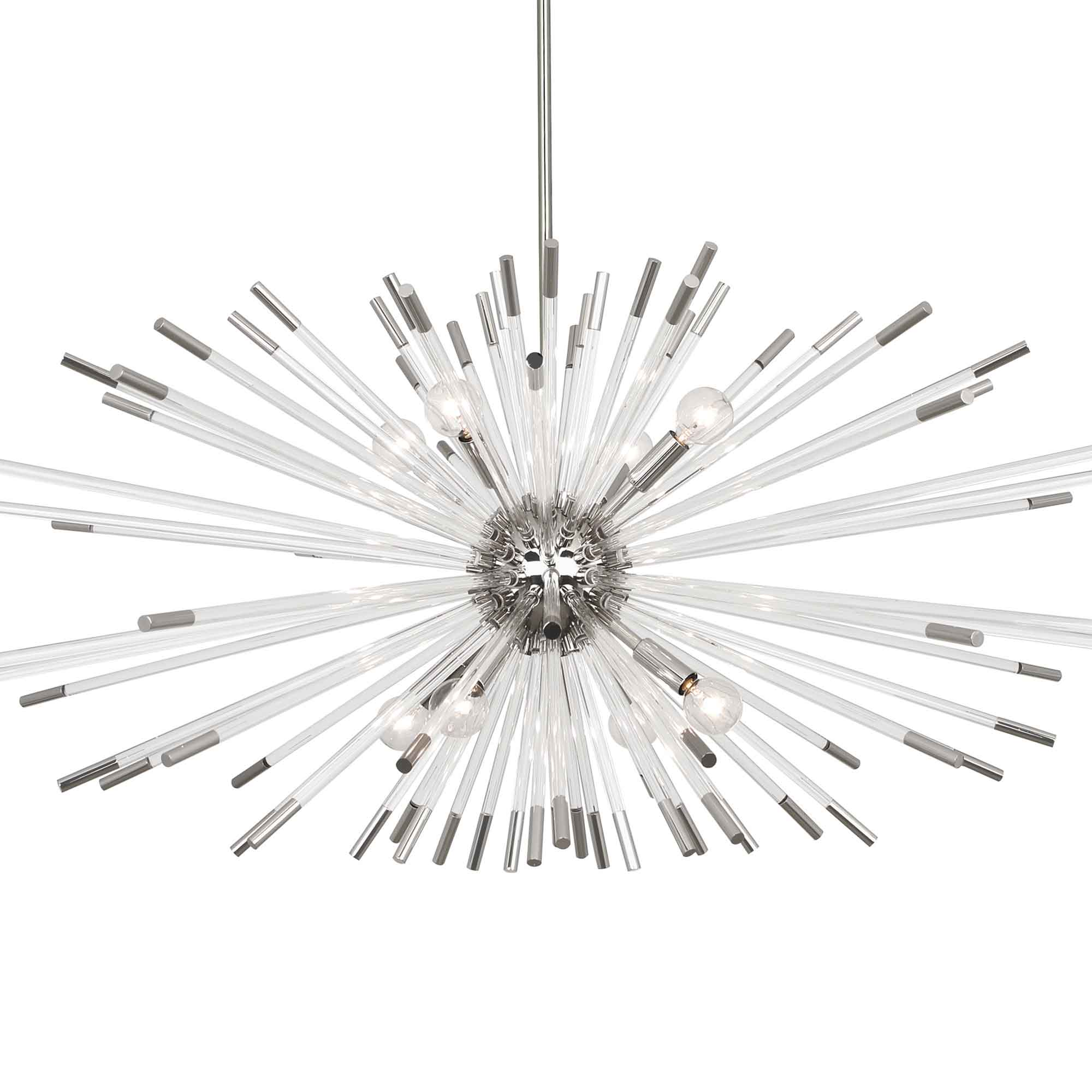 The Andromeda Chandelier from Robert Abbey delivers a veritable explosion of glam style and futuristic attitude, emulating a galactical vibe with a contemporary blend of crystal and metal.
