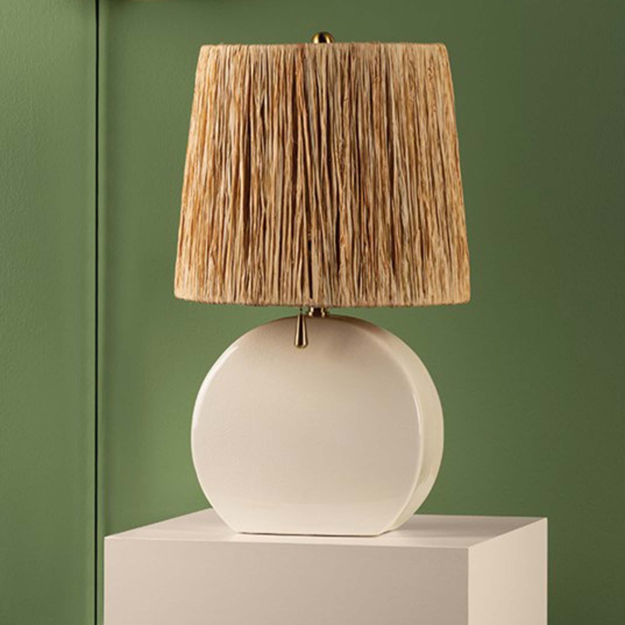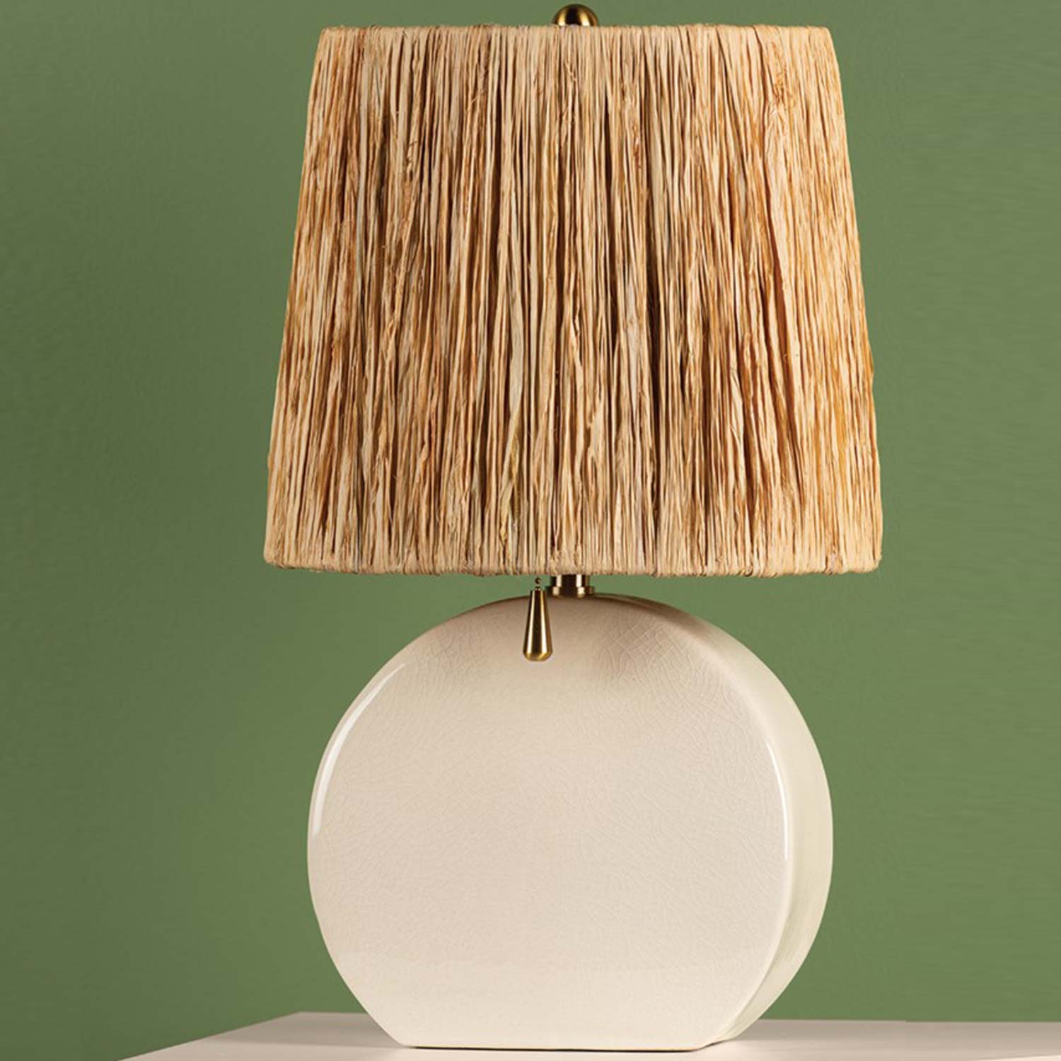 Find a sense of style balance as you mix genres and motifs to create an enticing light source. Ideal for a living room or bedroom, the Aneesa Table Lamp from Mitzi streamlines elegance with a coastal vibe and charming flat disc body fashioned of glossy crackle glaze ceramic. Topped with a raffia-lined shade, this table lamp reflects today’s trending light aesthetic.