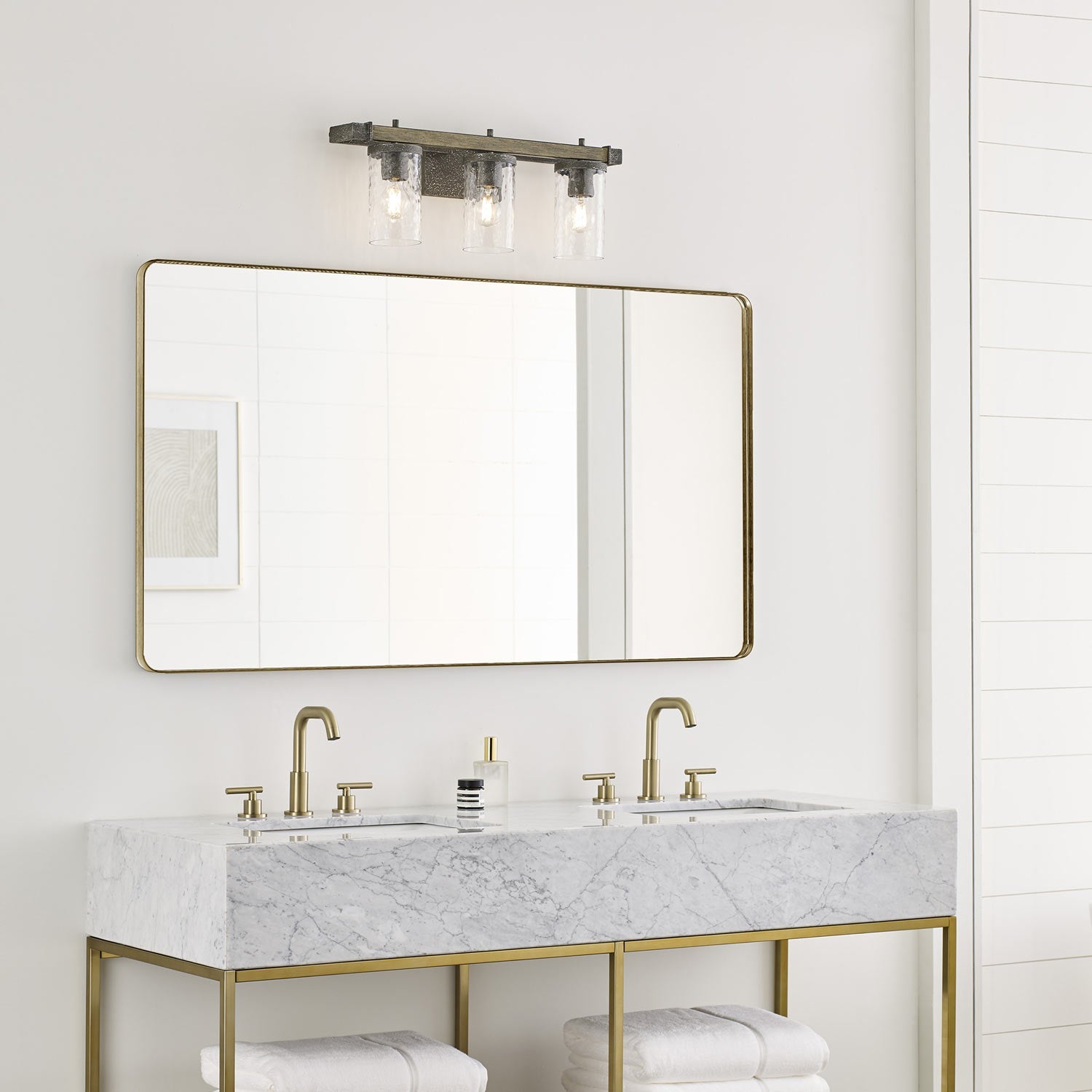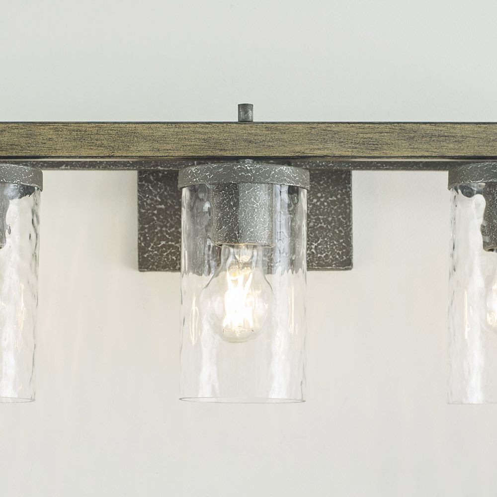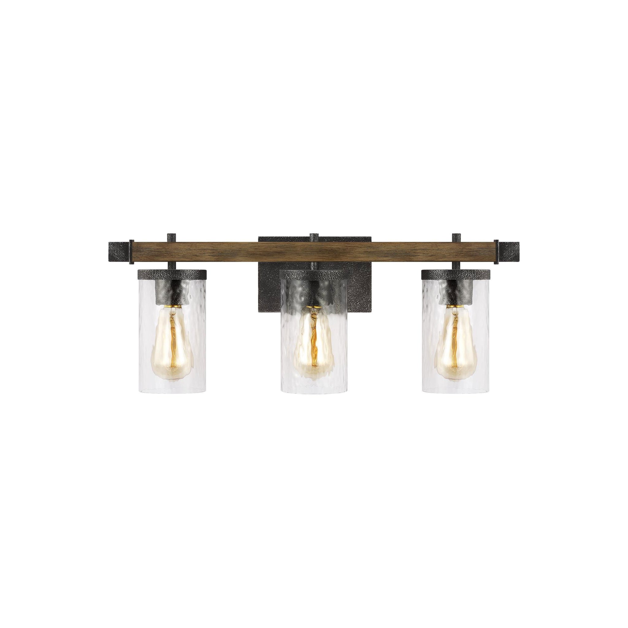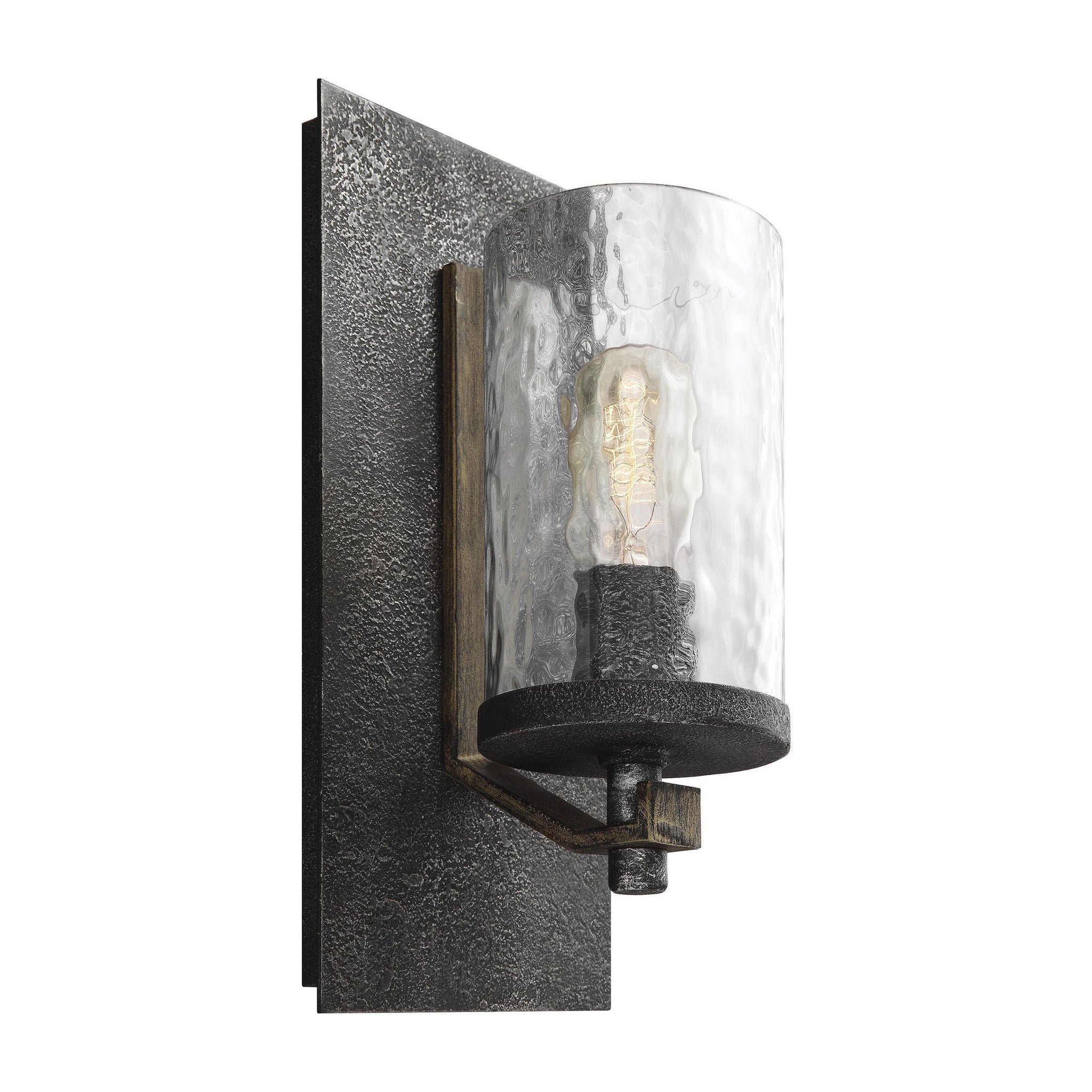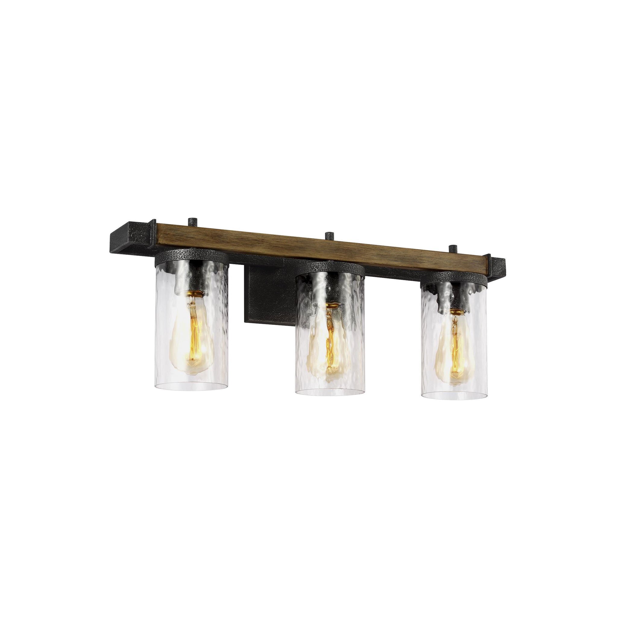 Textured slate gray finish pairs with gorgeous art glass to bring intriguing, rustic style to the engaging Angelo Bath Vanity Light from Visual Comfort Studio.