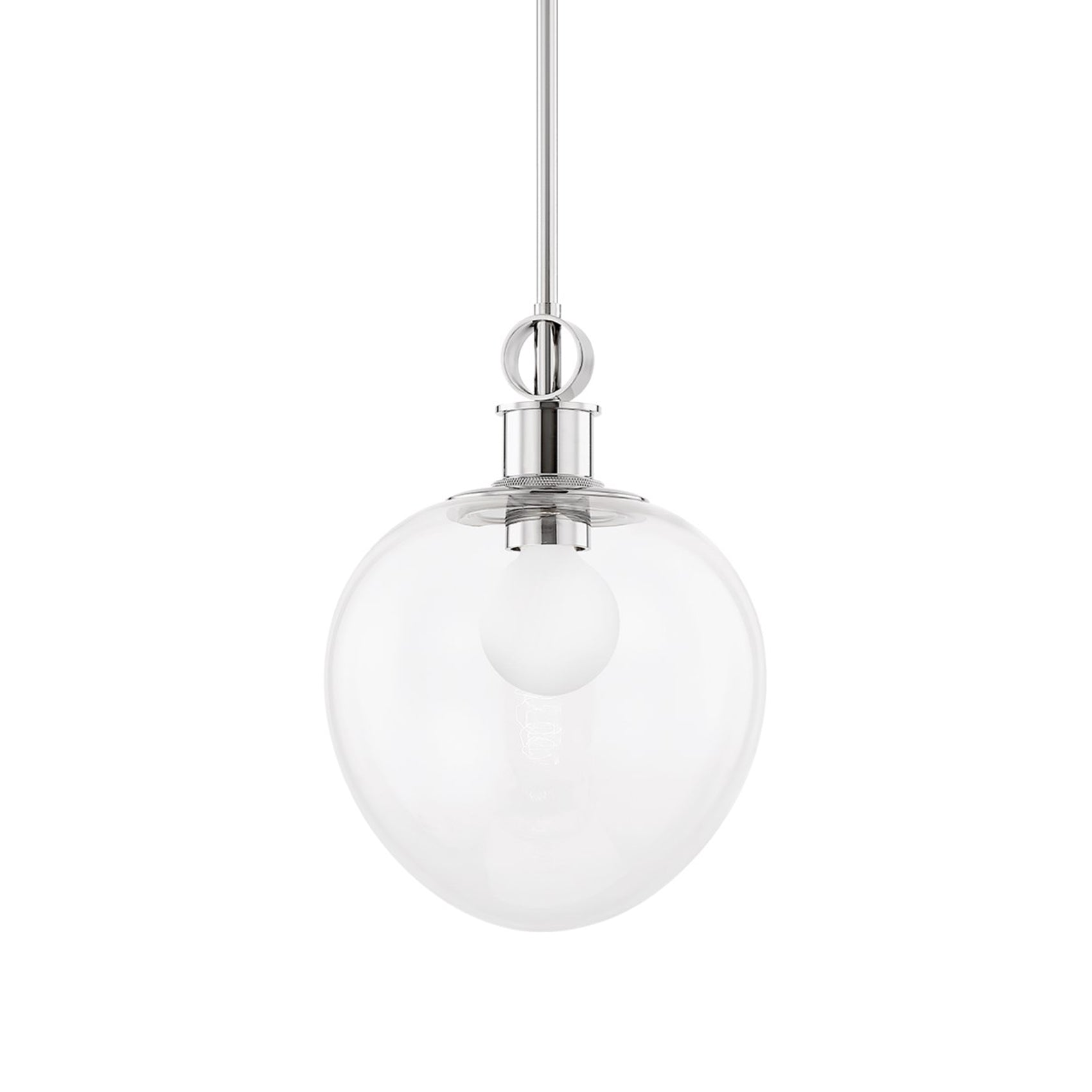 With a design form honoring both modern and traditional, the Anna Pendant Light from Mitzi stylizes simplicity to work as you need it in customized spaces. Keep it simple with the elegant blend of sparkling clear glass and ornate metal accenting, noting the pipe-style socket and romantic oval silhouette emulating a stretched bubble. This fixture is part glam and part convention, with an ability to adopt the attitude of surrounding décor.