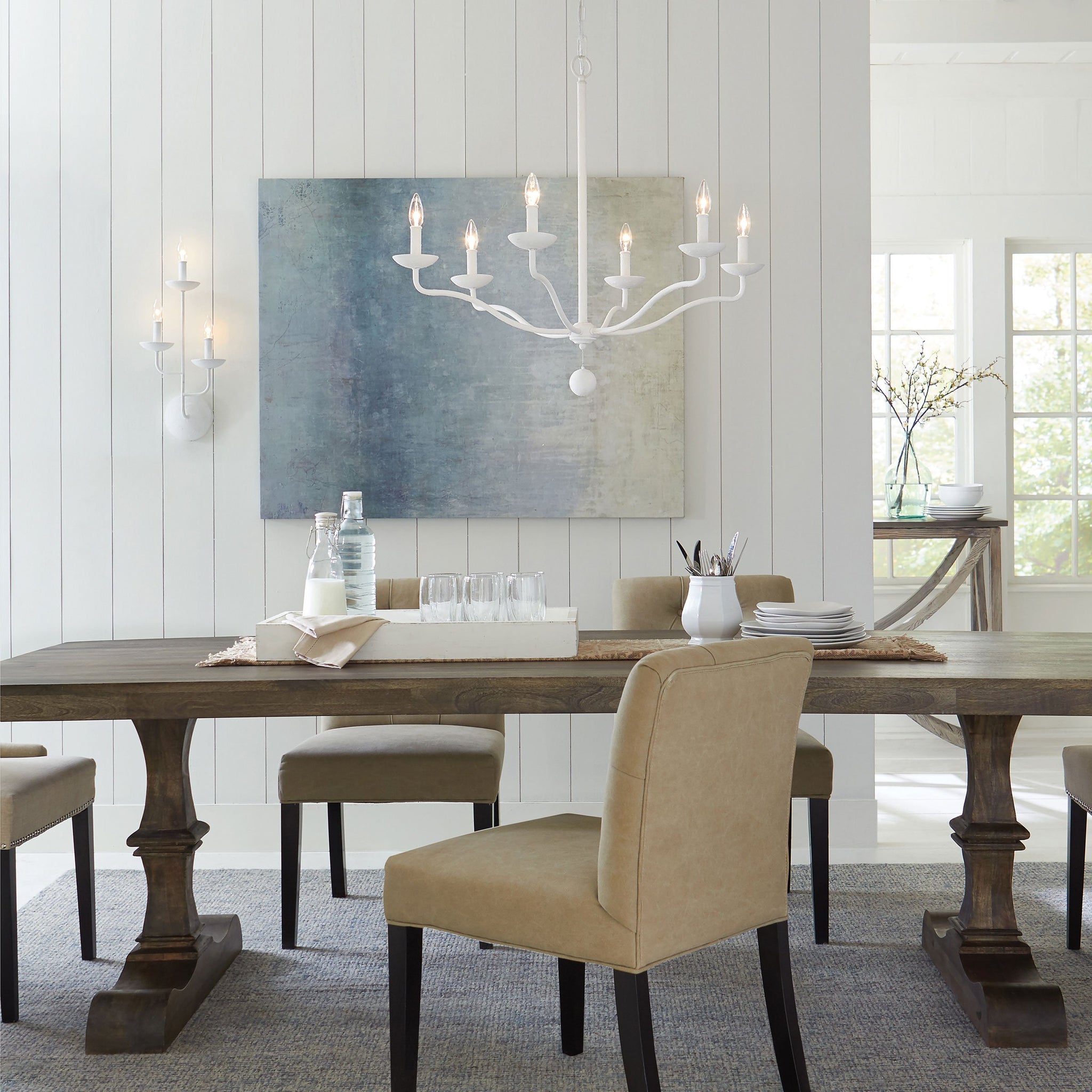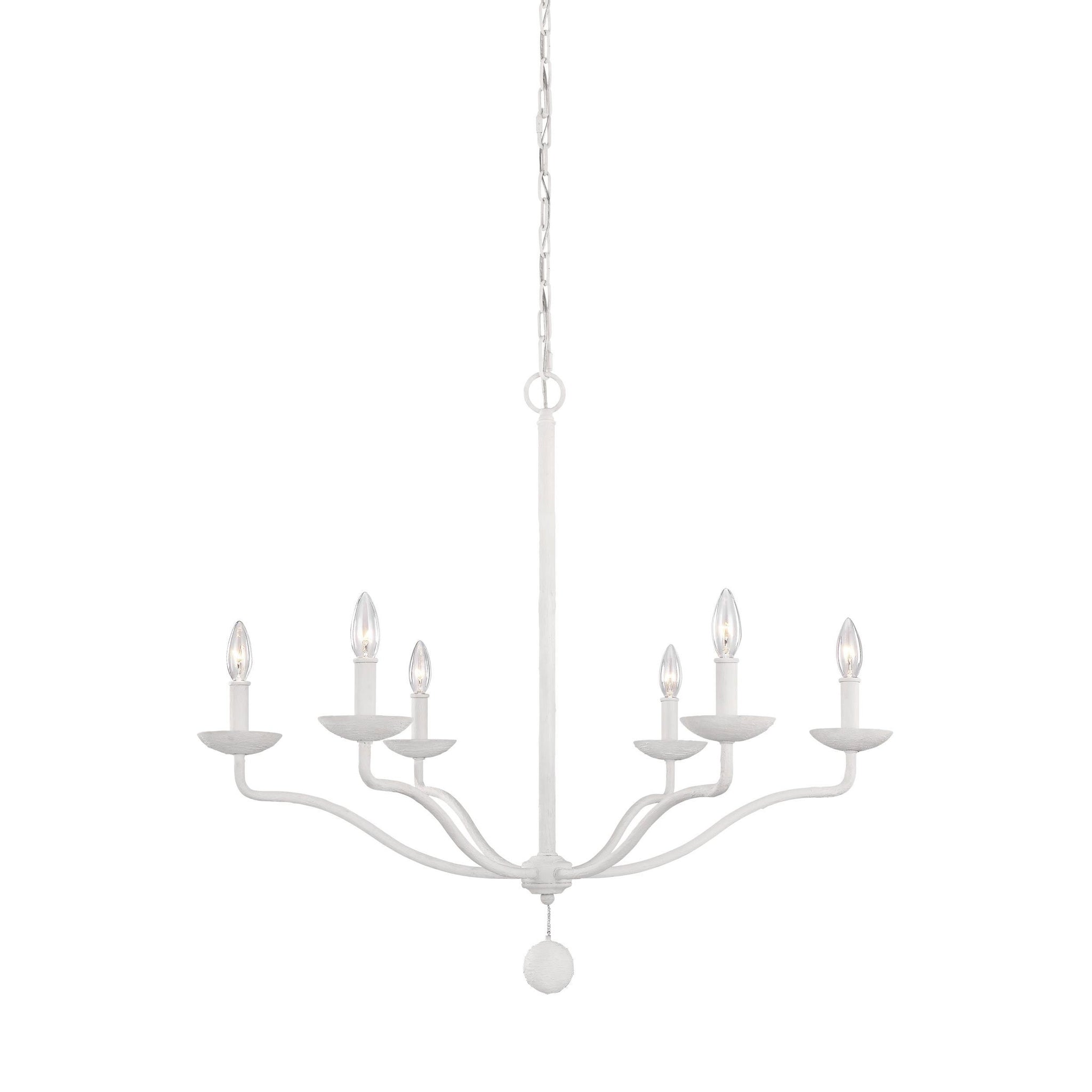 The Annie lighting collection by Feiss is simple and chic, and delights with warm, welcoming, Provincial charm. The rustic aesthetic of the new Plaster White finish perfectly enhances the texture and beauty of this humble, traditional lighting design. A decorative bead drops from the center of each fixture, adding a fanciful touch to this stately design. Alternatively, the chandelier may be installed with a round bottom cap, for a cleaner look. The simple silhouette of these light fixtures makes them versatile to fit in a wide range of décor, and the rustic finish makes them particularly ideal for living rooms, dining rooms and bedrooms with casual, traditional decor, European farmhouse design or the shabby chic look. In the Annie collection are a six-light chandelier (30” high); nine-light chandelier (34” high) and three-light wall sconce light (24” high).