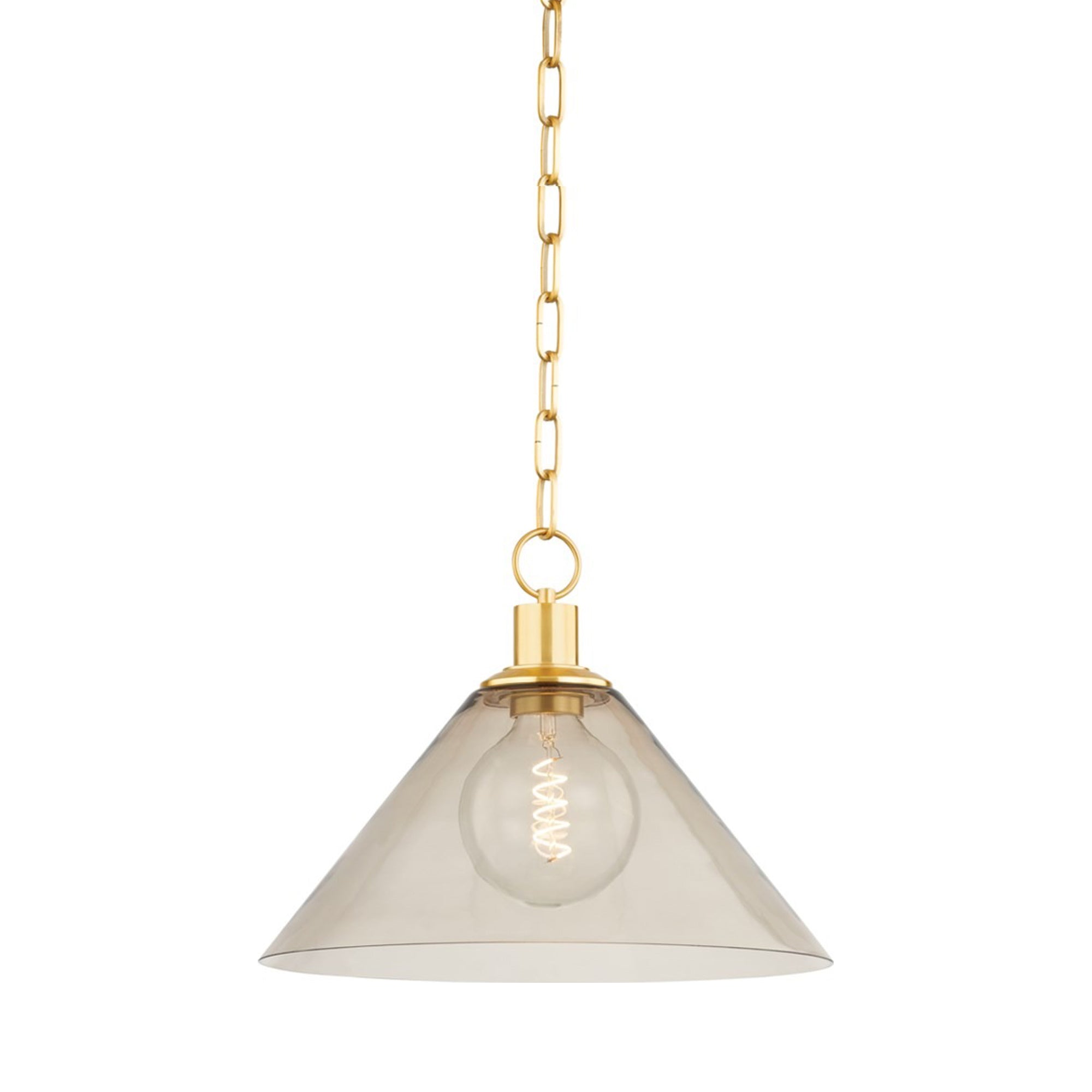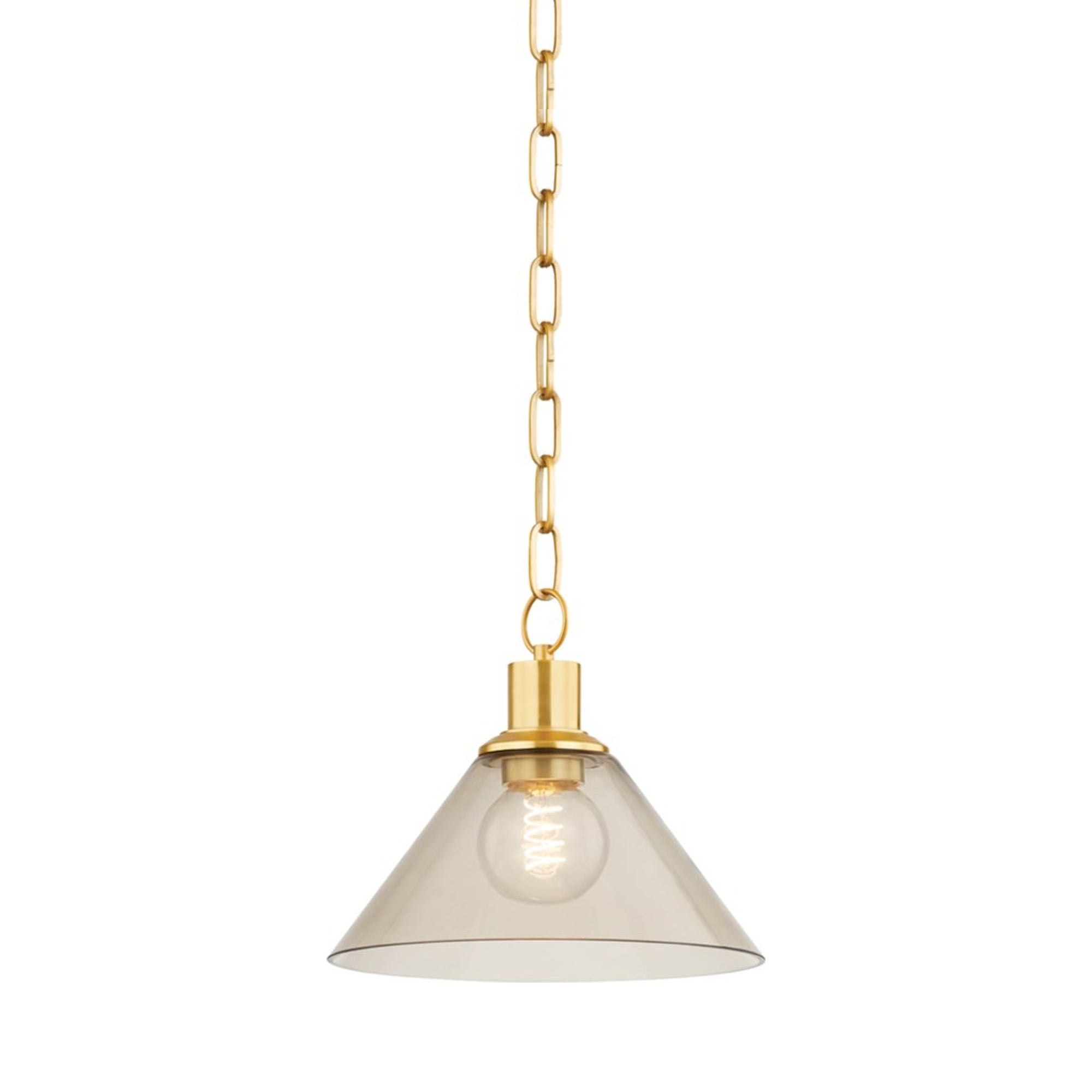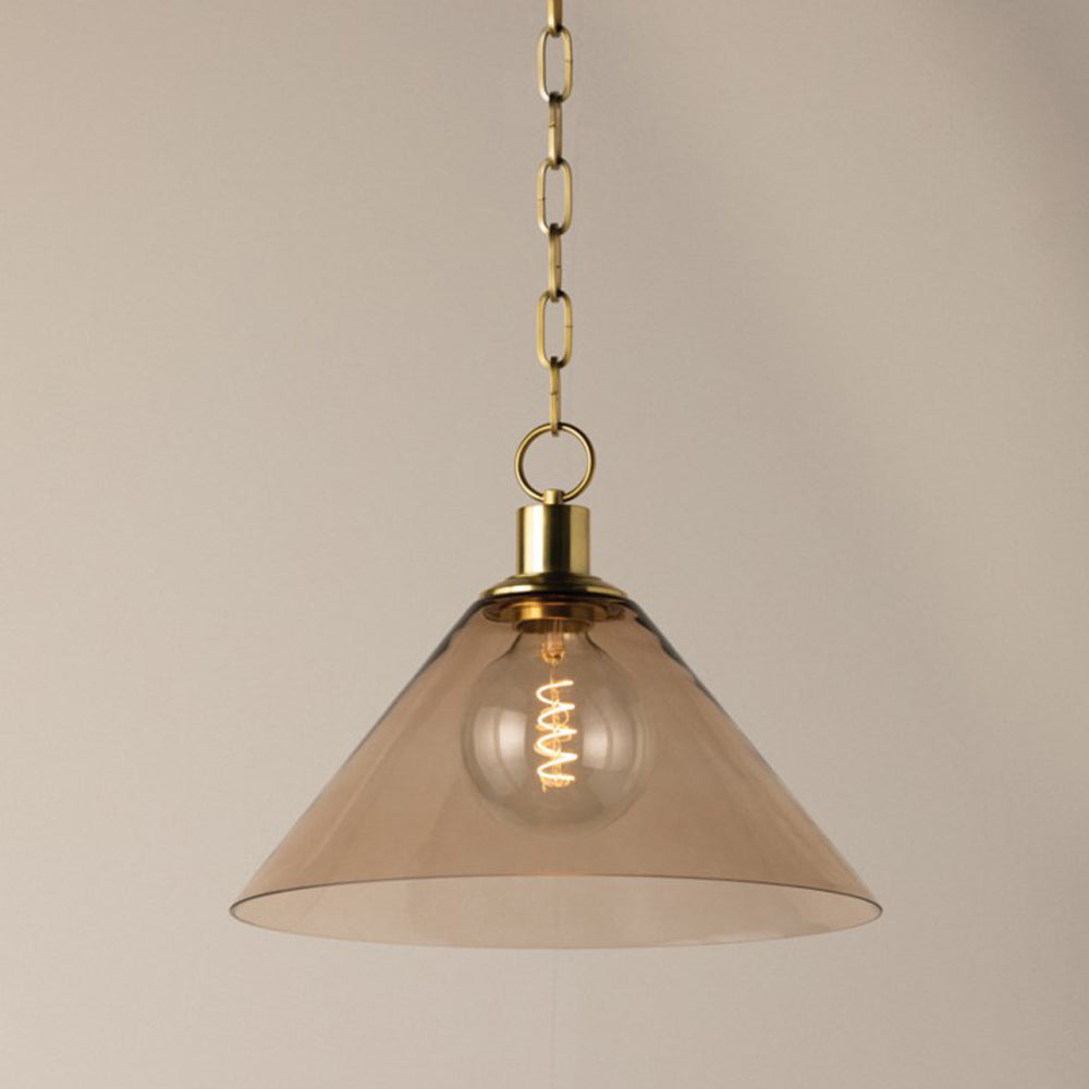 Inspiring over an intimate dining table or sitting area, the Anniebee Pendant Light from Mitzi imparts serenity with clean lines and elegant embellishment. A dusty rose colored glass cone and aged brass cap and chain combine to create stylish harmony of form and function.