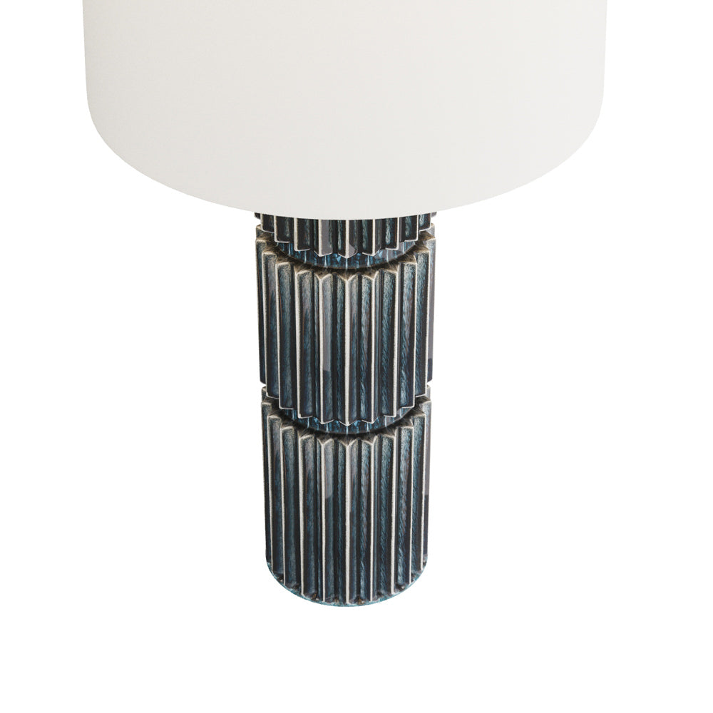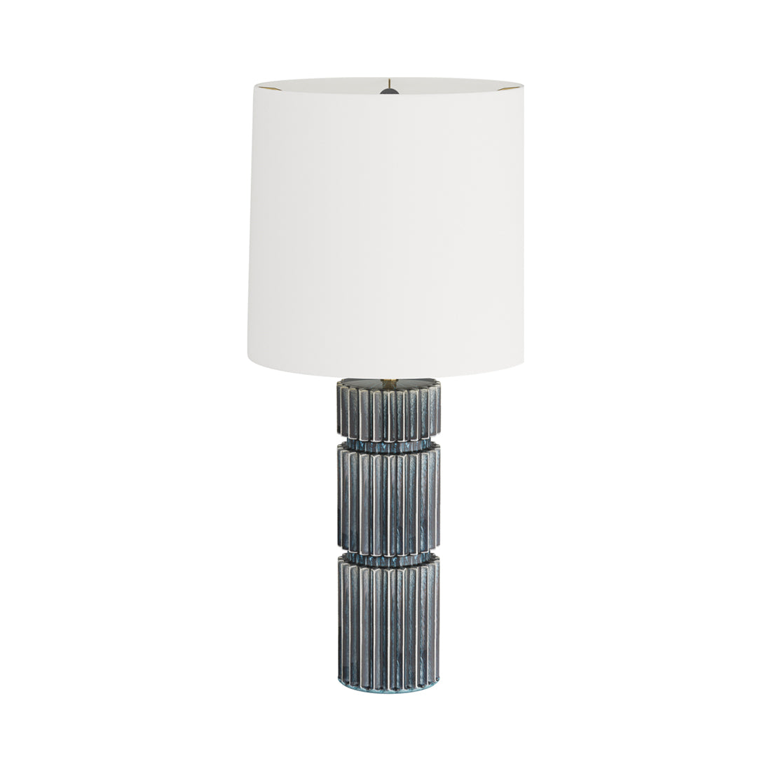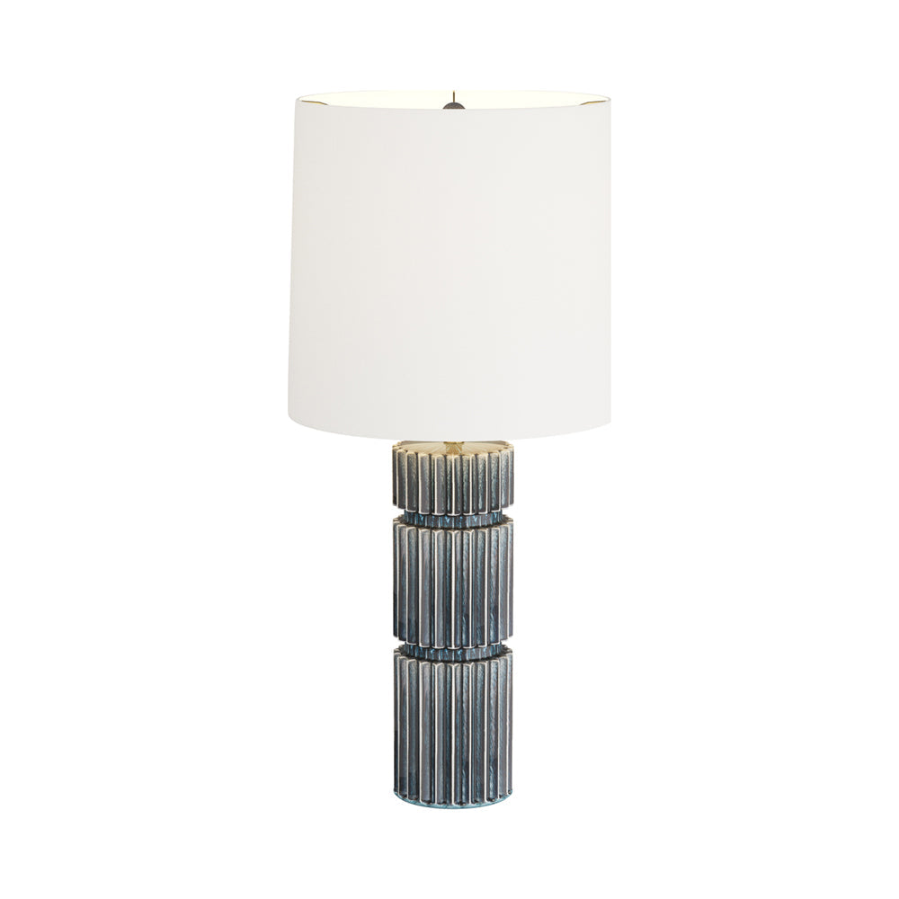 A gorgeous ocean blue finish offers a surprising bit of coastal elegance in a lamp with organic flavor and a minimalist look. Welcome the Annika Table Lamp from Arteriors as a design-forward light source sending soft illumination through a living area or bedroom. Fluting around its banded, cylinder ceramic body is sophisticated and timeless.
