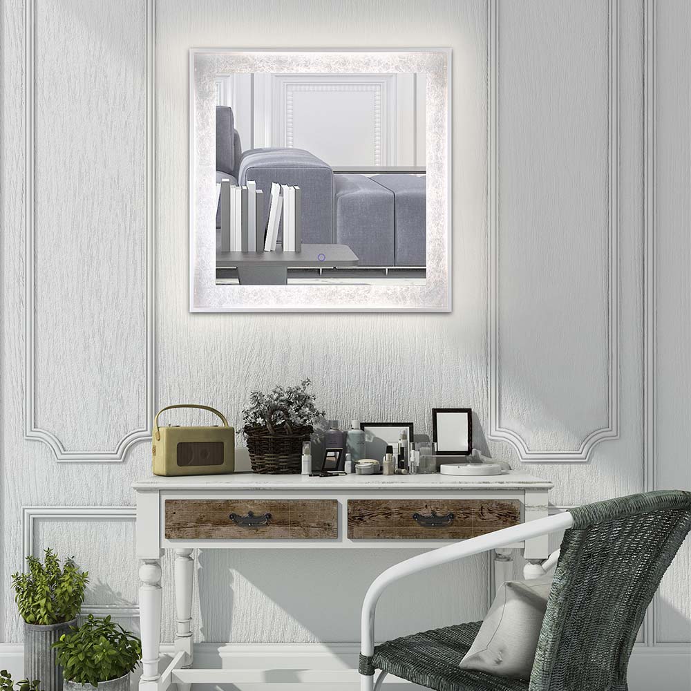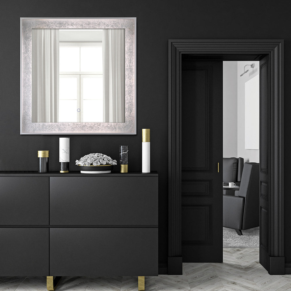 Rustic elegance transforms a conventionally modern aesthetic into one with tasteful vintage attitude. The Anya LED Square Mirror from Eurofase offers the bonus of energy-efficient edge-lit illumination activated by a touch sensor switch. Make a statement in a contemporary bath or living space with this glam mirror.