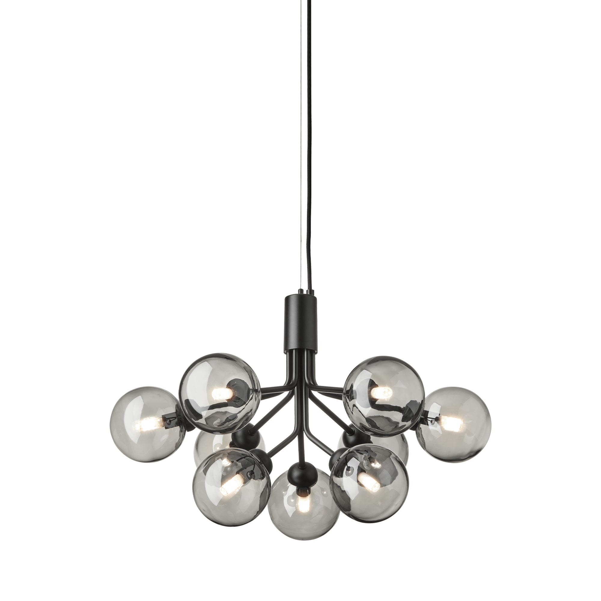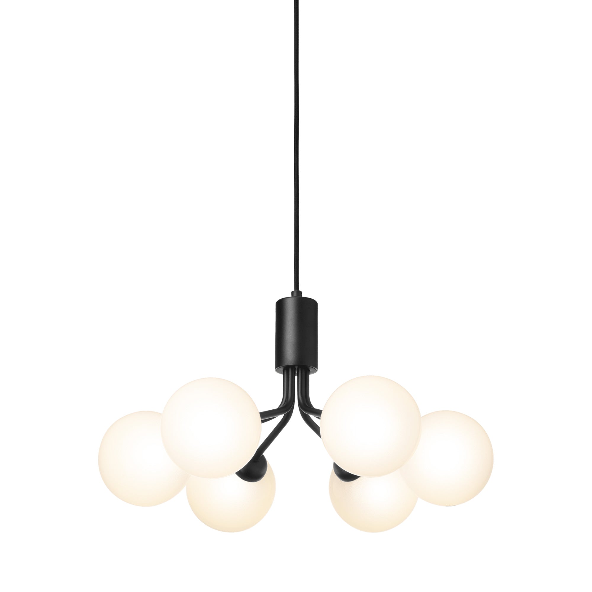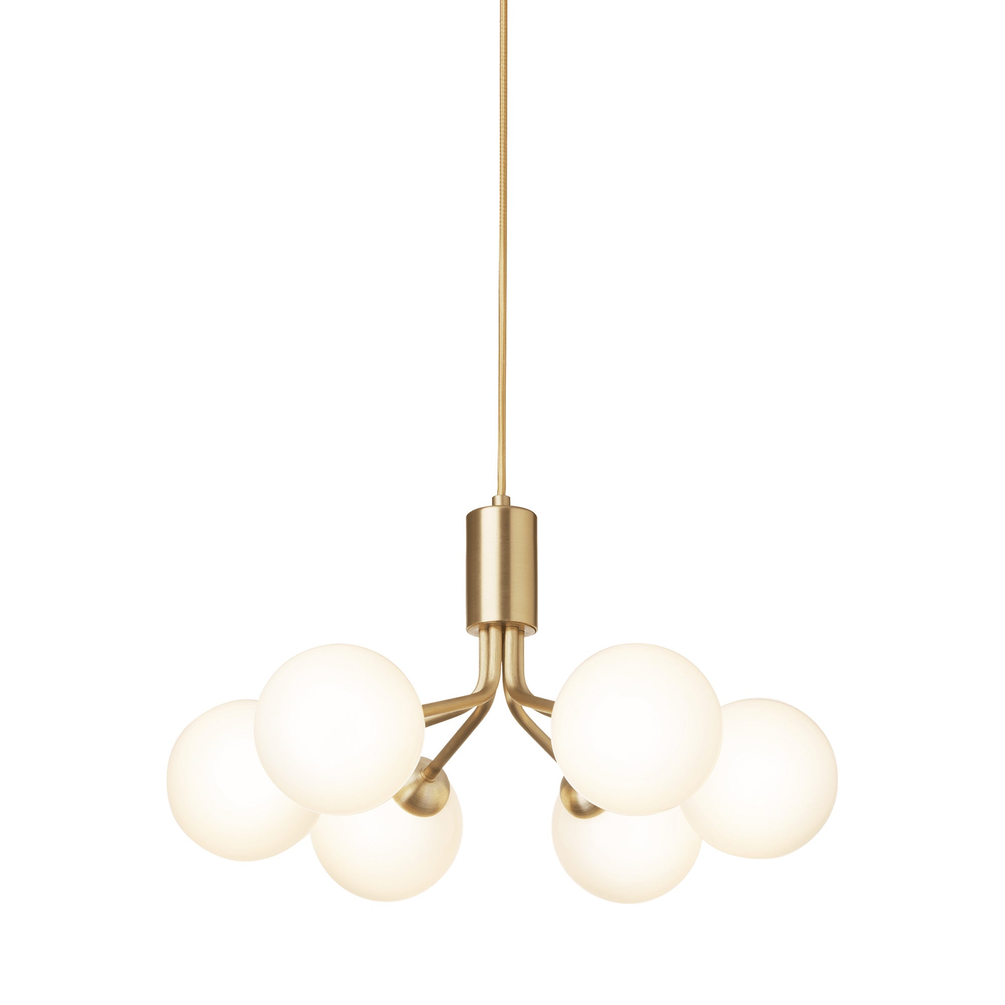 Cheerful design elements form a self-sustaining Art Deco feel in a light fixture supplying no shortage of charm. The Apiales Chandelier from Nuura celebrates conventional metal framing, adjusting its silhouette for symmetry and angles. Glass orbs radiate with ambient lighting as they take on a pearl-like vibe.