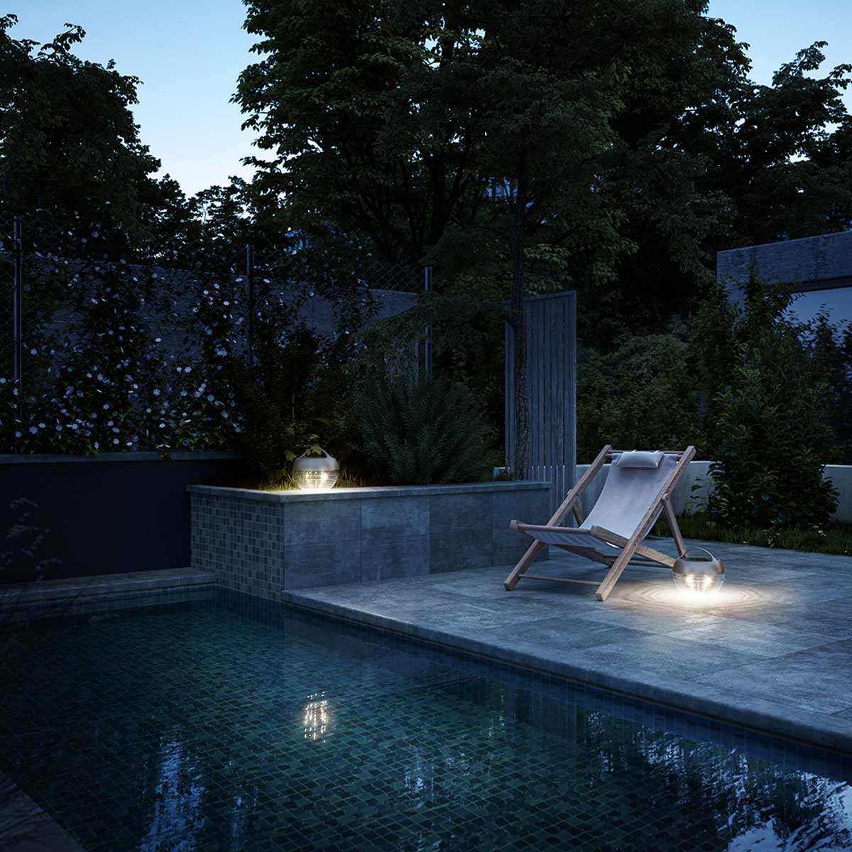An ethos of conservation pairs with impeccable modern design in the Aqu Outdoor LED Portable Table Lamp from IP44.DE. This highly intelligent luminaire collects the energy of the sun through the day and converts it to bright illumination when the sun sets. Striations in the shade create an elegant watery effect across your table, and the luminaire is chargeable by USB should the sun hide behind the clouds that day.