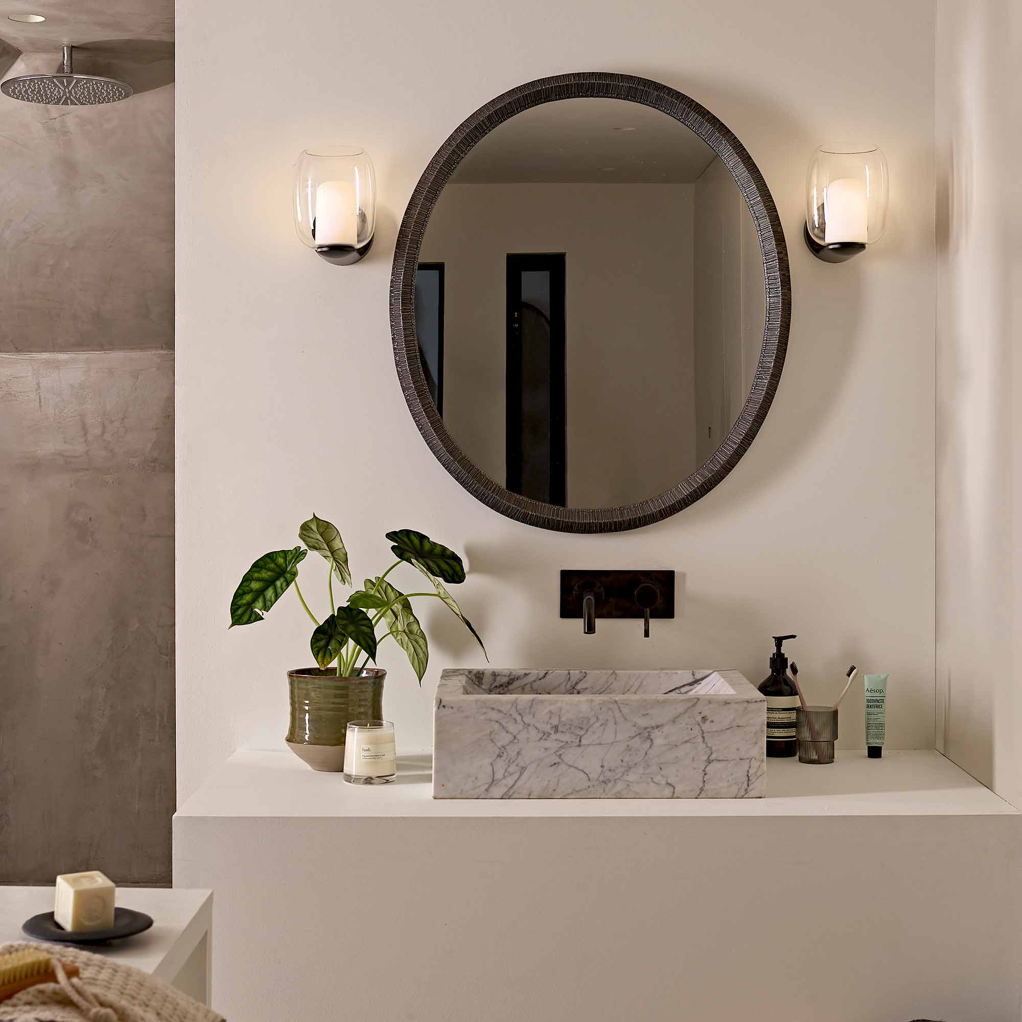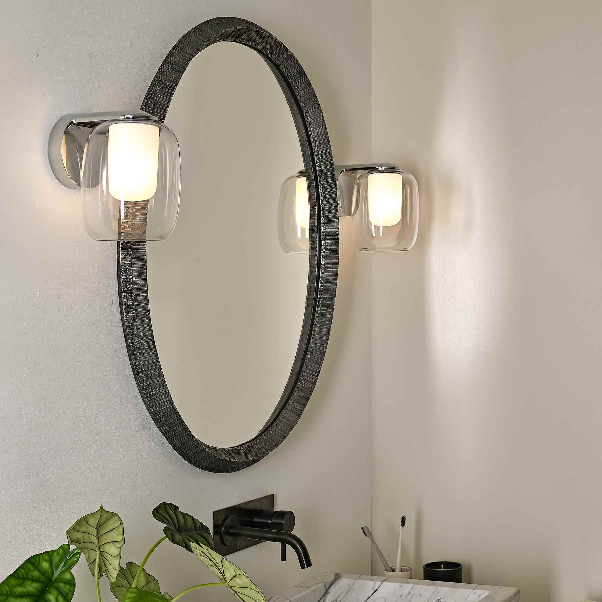 Add just enough design prowess to illuminate a bath space with a fixture created to reinforce simplicity. The Aquina Bath Wall Light from Astro Lighting embodies a charming farmhouse-inspired glass jar motif with an elliptical silhouette and a dual shade design. Ambient lighting shines through a blown glass shade with a sleek metal arm serving as a tasteful mount.