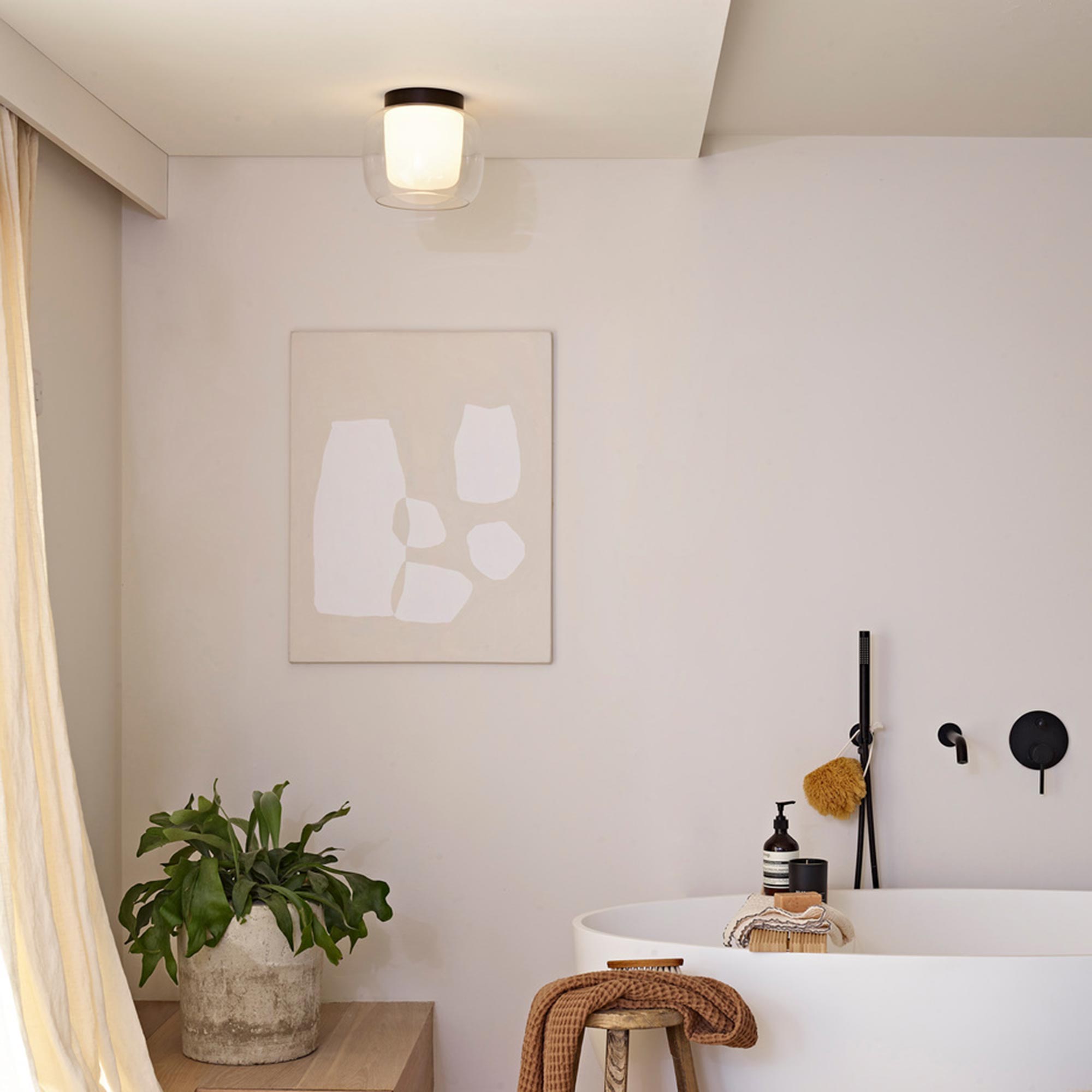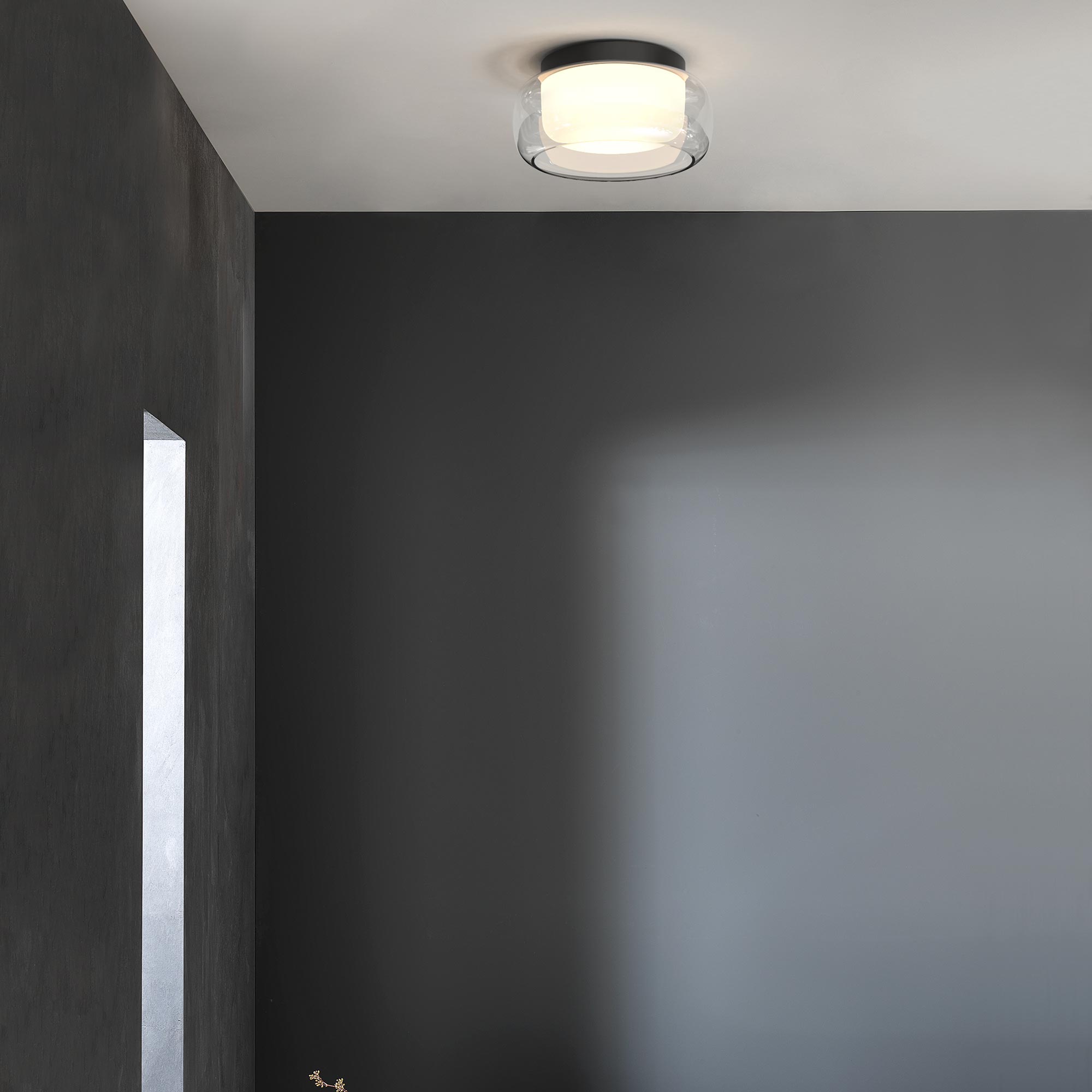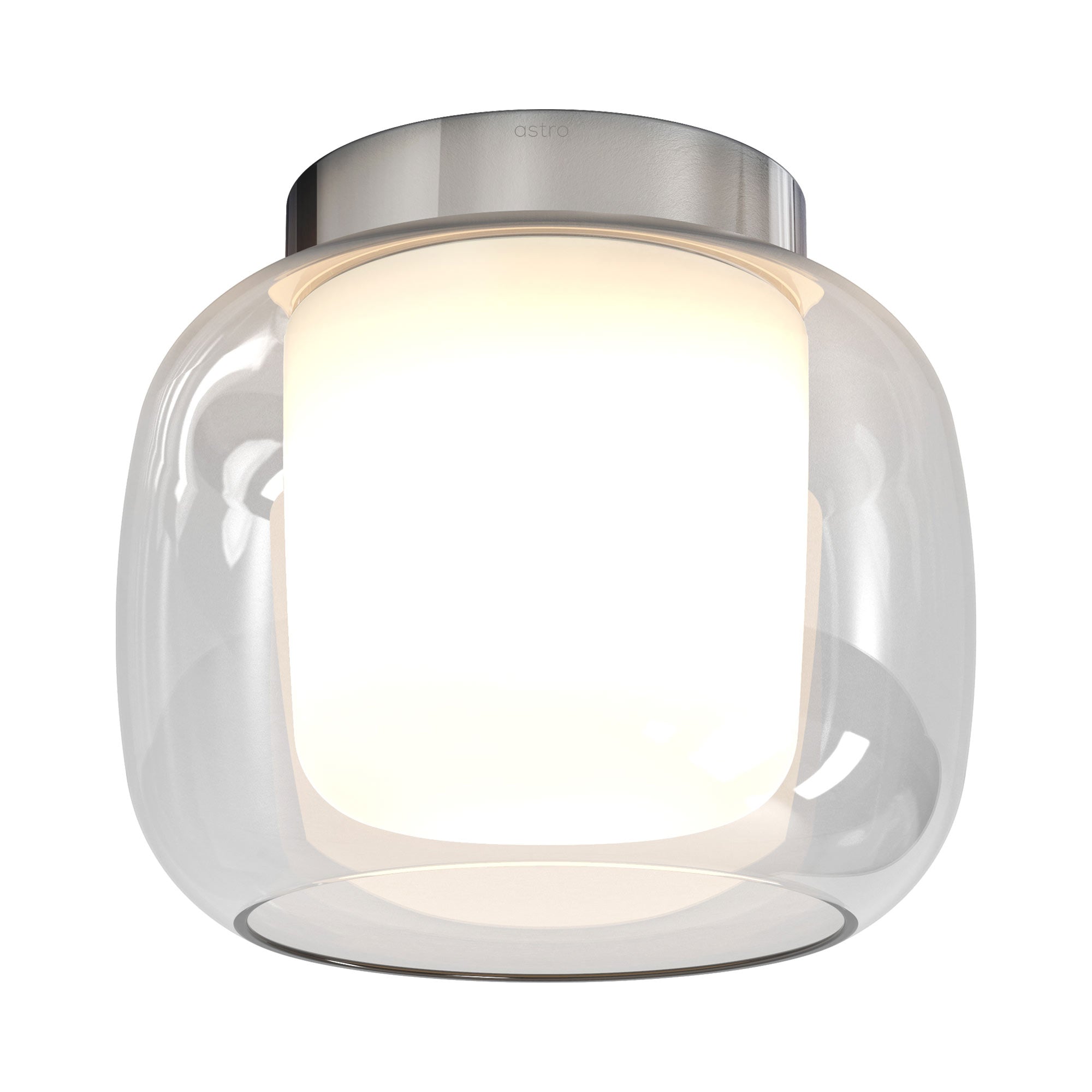 A charming and simple aesthetic makes good use of a glass jar motif, creating a soft romance to the Aquina LED Semi Flush Mount Ceiling Light from Astro Lighting. Weaving in a touch of quaint farmhouse attitude with updated ease, this fixture borrows from elliptical silhouetting with a dual shade and replaceable lamp. Easy elegance attaches the dimmable fixture with a low-profile ring mount, maintaining visual focus on surrounding design elements.