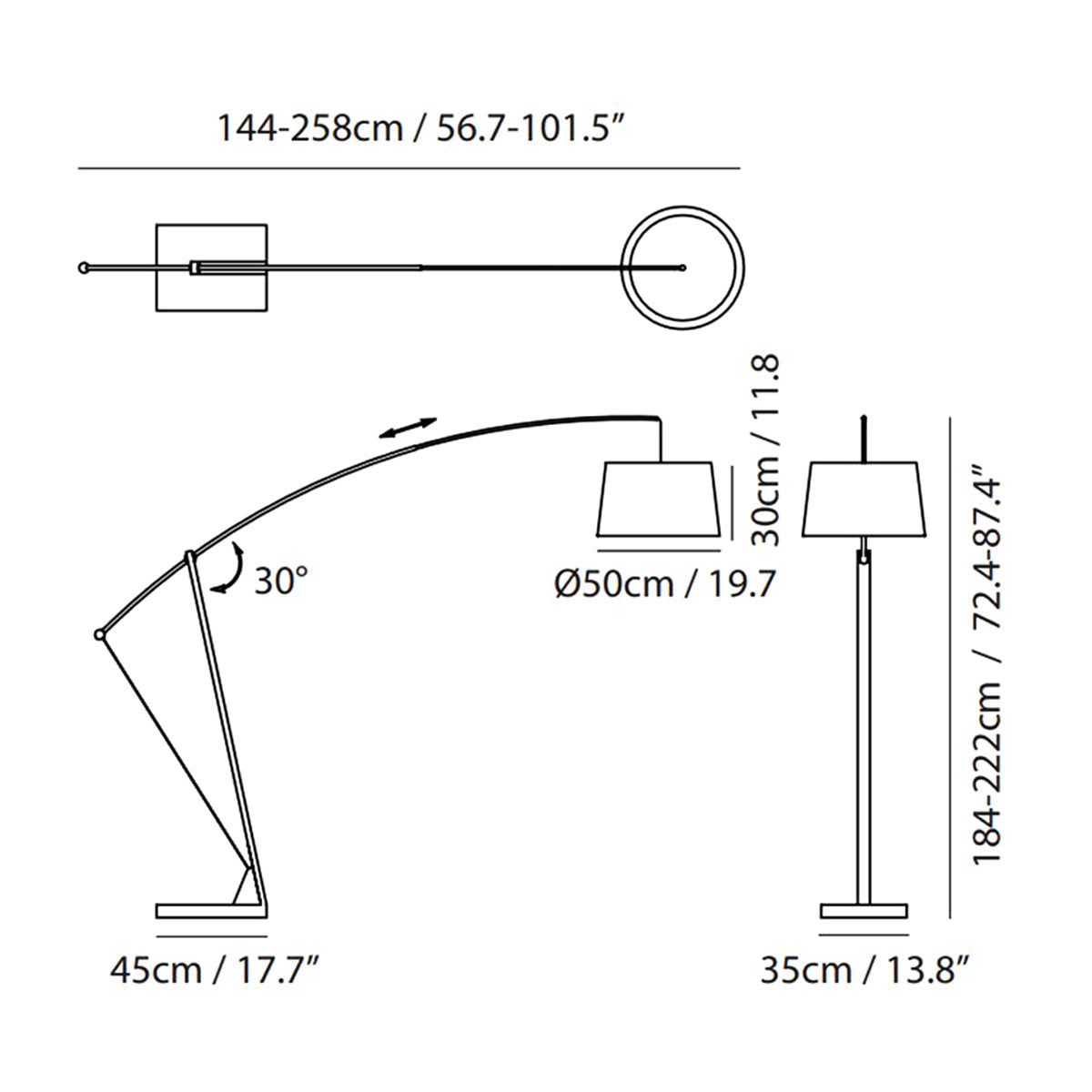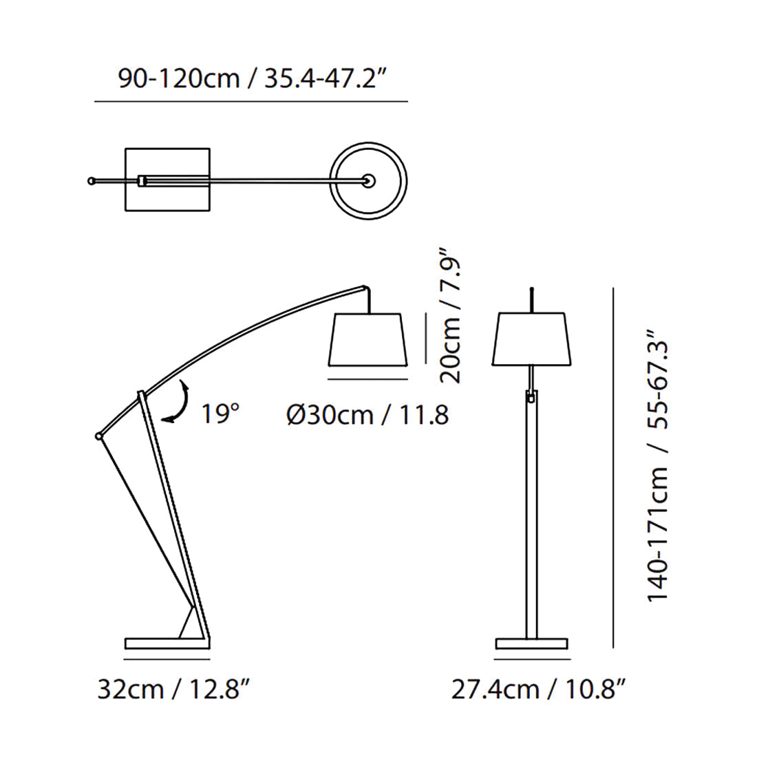 - Shade: 19.7"D X 11.8"H