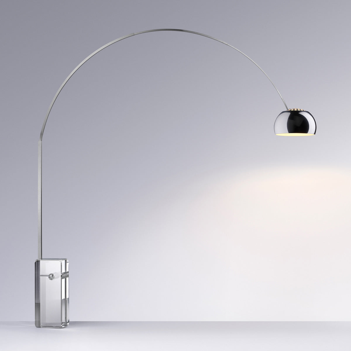 An architectural flavor delivers cool style with modern influence as this floor lamp becomes a go-to choice for contemporary settings. Fashioned of gleaming metal and crystal, the Arco K Limited Edition Floor Lamp from FLOS creates a focal point in a modern living room or office. Embrace the romantic arc silhouette in a lamp with plenty of features and adds energy-saving lighting.
