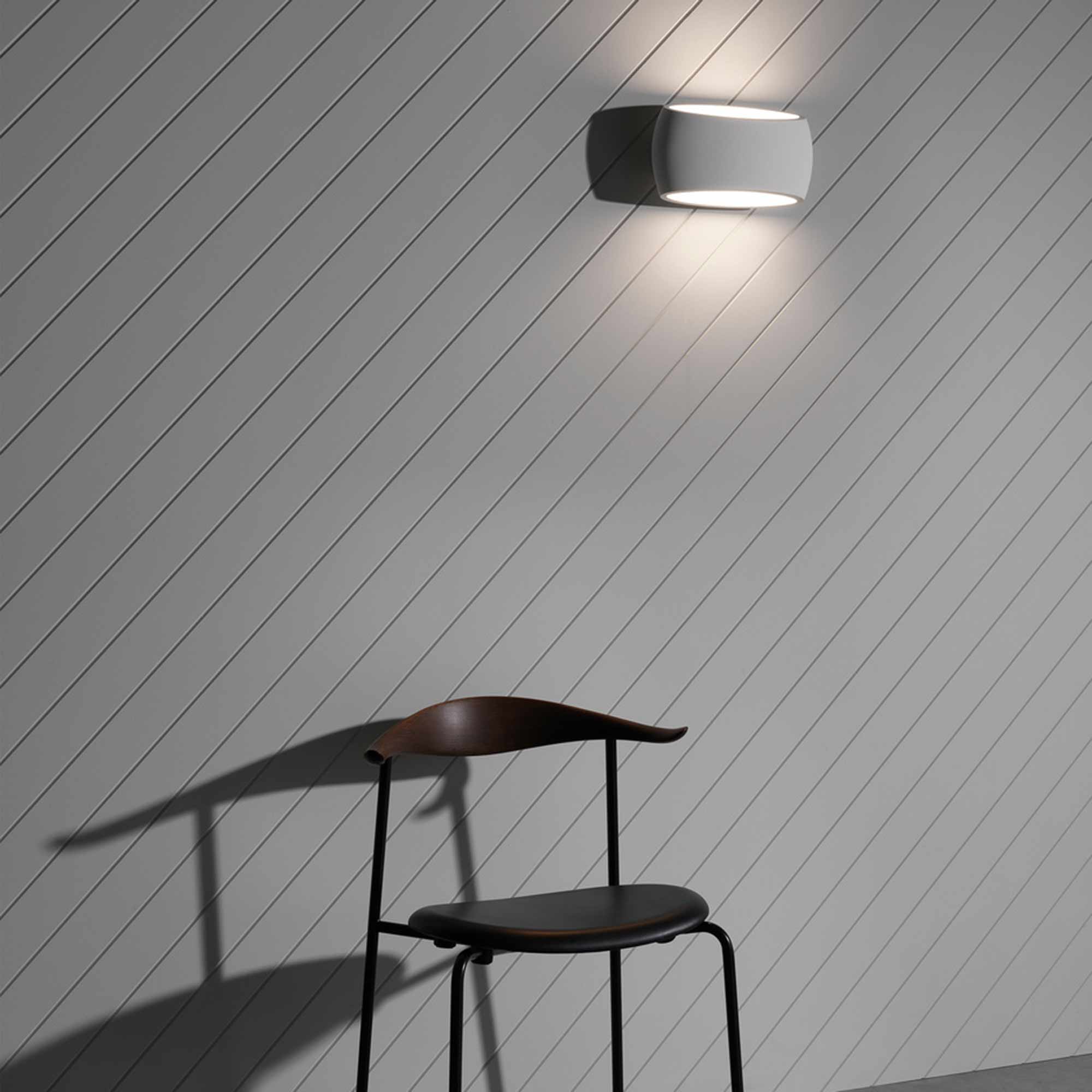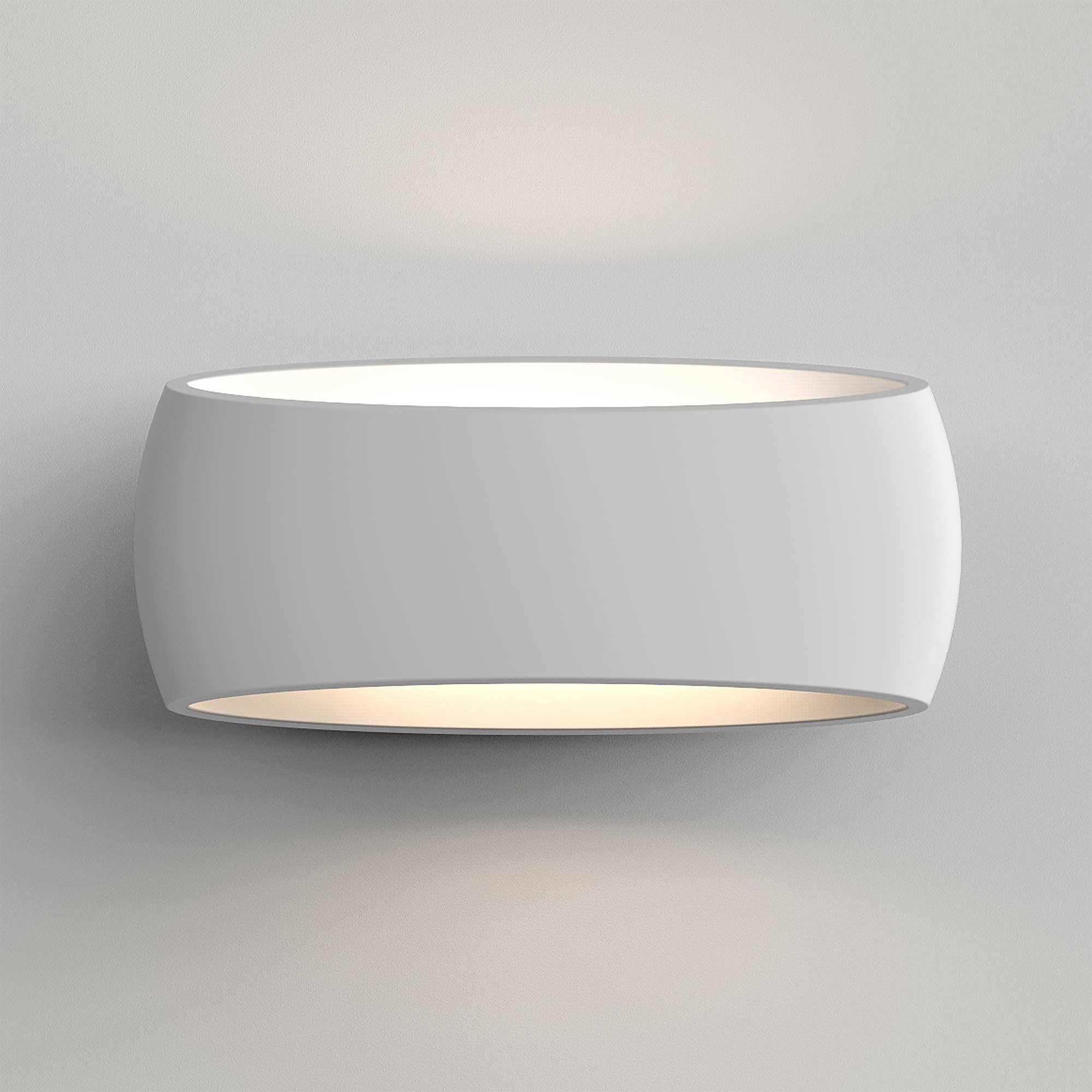 The sleek look of polished plaster forms a delectable and asymmetrical frame creating artful simplicity. The Aria 370 Wall Light from Astro Lighting delivers ultra-contemporary elegance with tasteful simplicity, ideal for making the most of an upscale, updated setting. Up light and downlight illumination doubles the glowing radiance of a gallery-inspired fixture.