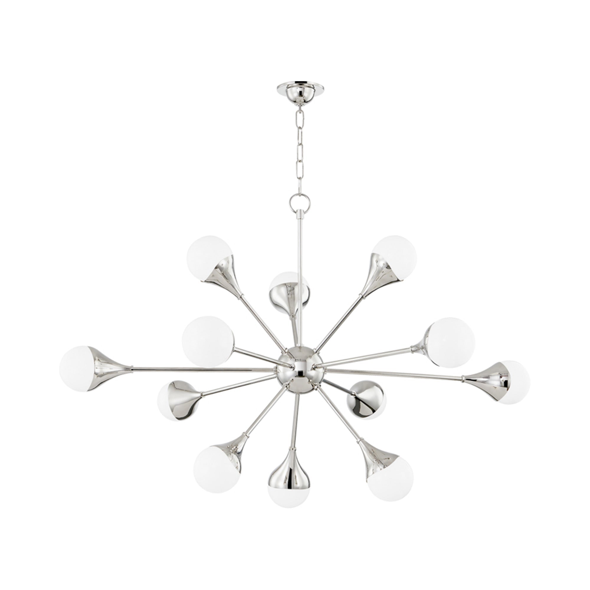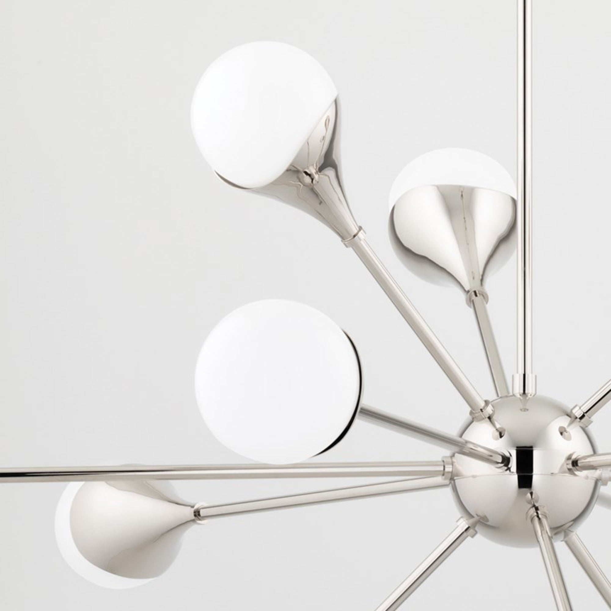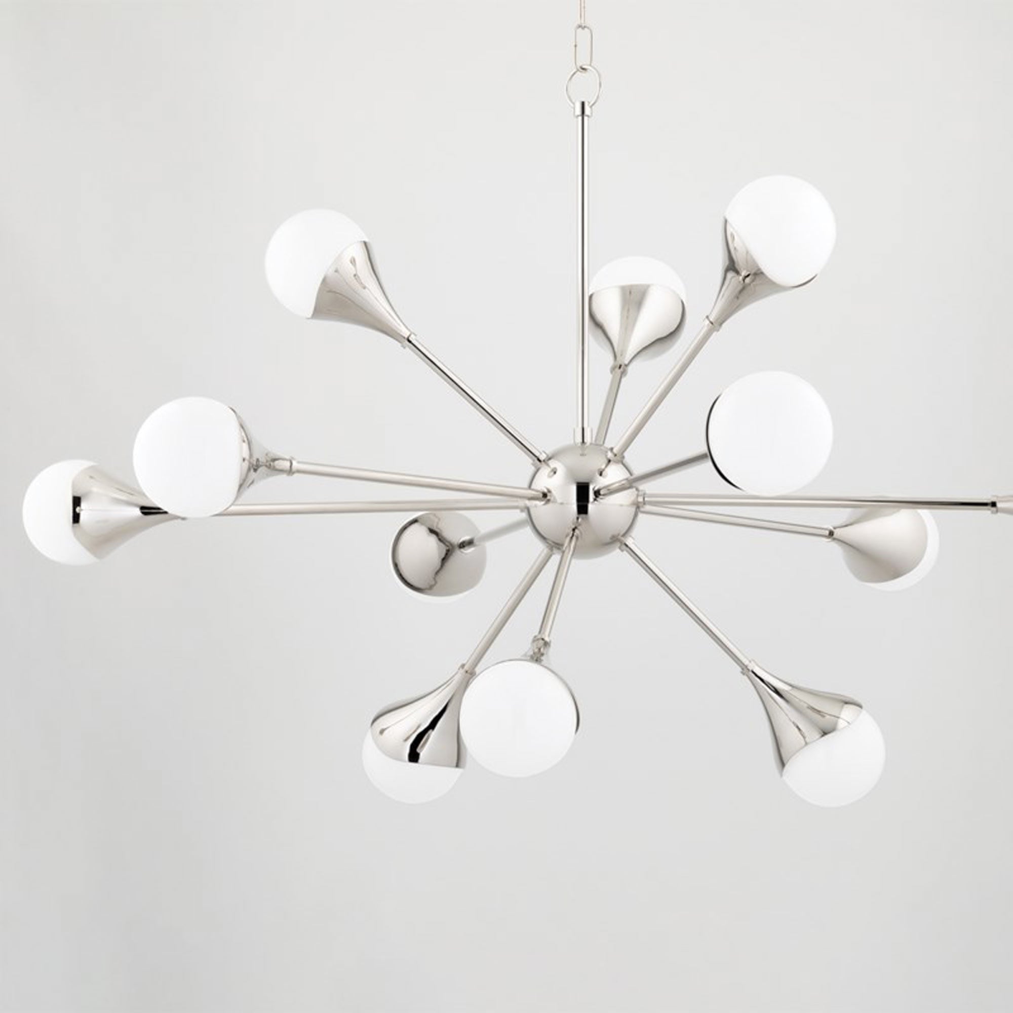 Gorgeous opal glass shades punctuate the radiant arms of the Ariana Chandelier from Mitzi. A striking creation for an entry or dining room, the chandelier is both elegant and engaging, offering a decidedly modern profile with hints of vintage character.