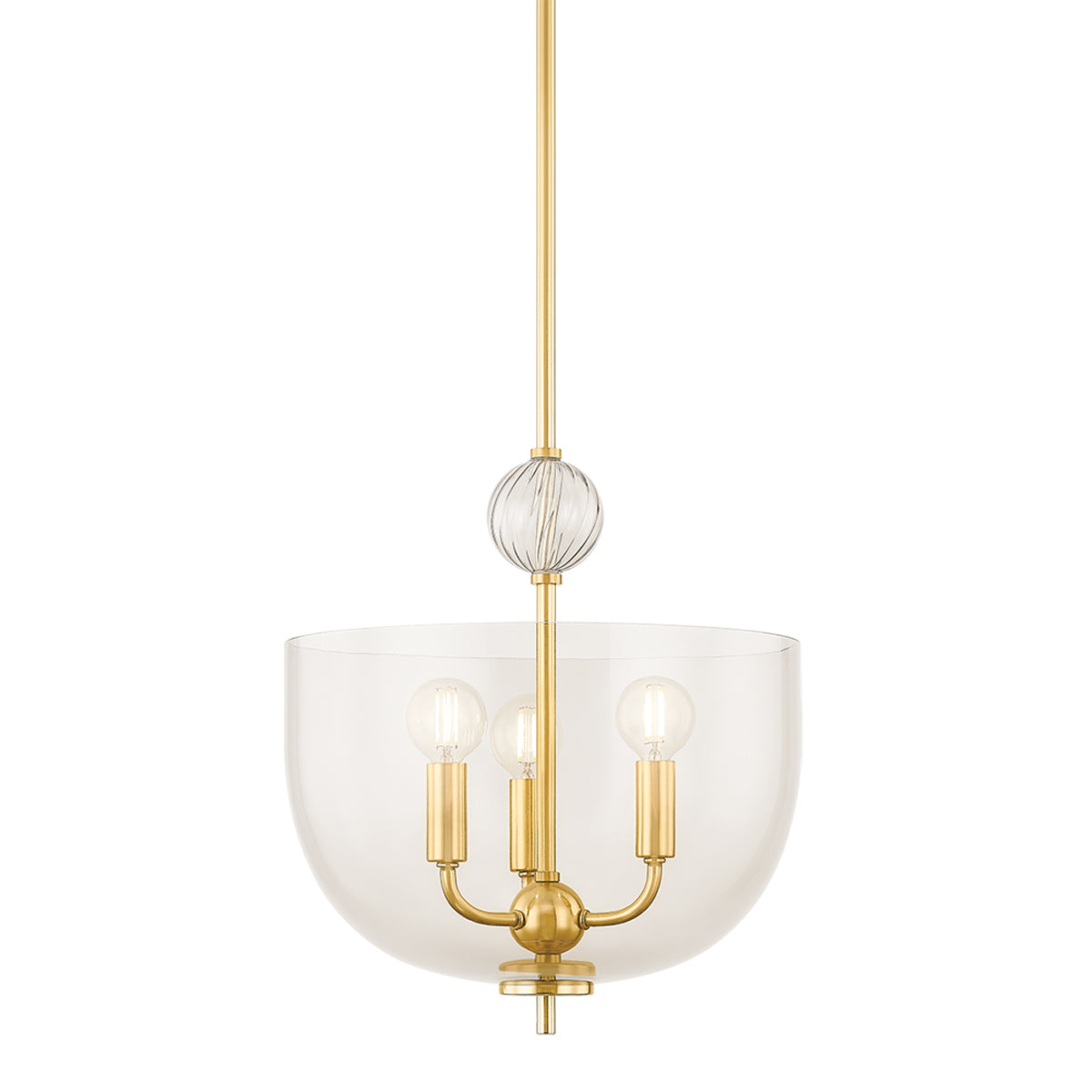 The Arianne Pendant Light from Mitzi exudes scintillating beauty with delicate vibes adding an extra boost. Clear and ribbed glass elements dress up a fixture constructed of aged brass finish metal, warm and inspiring.