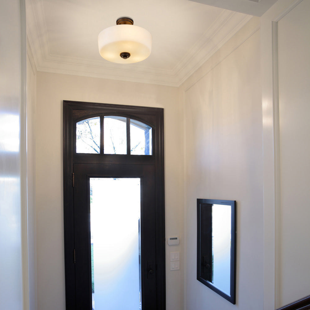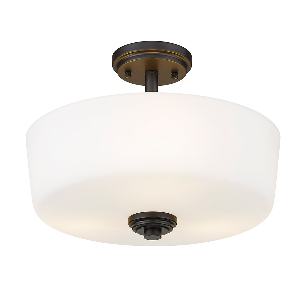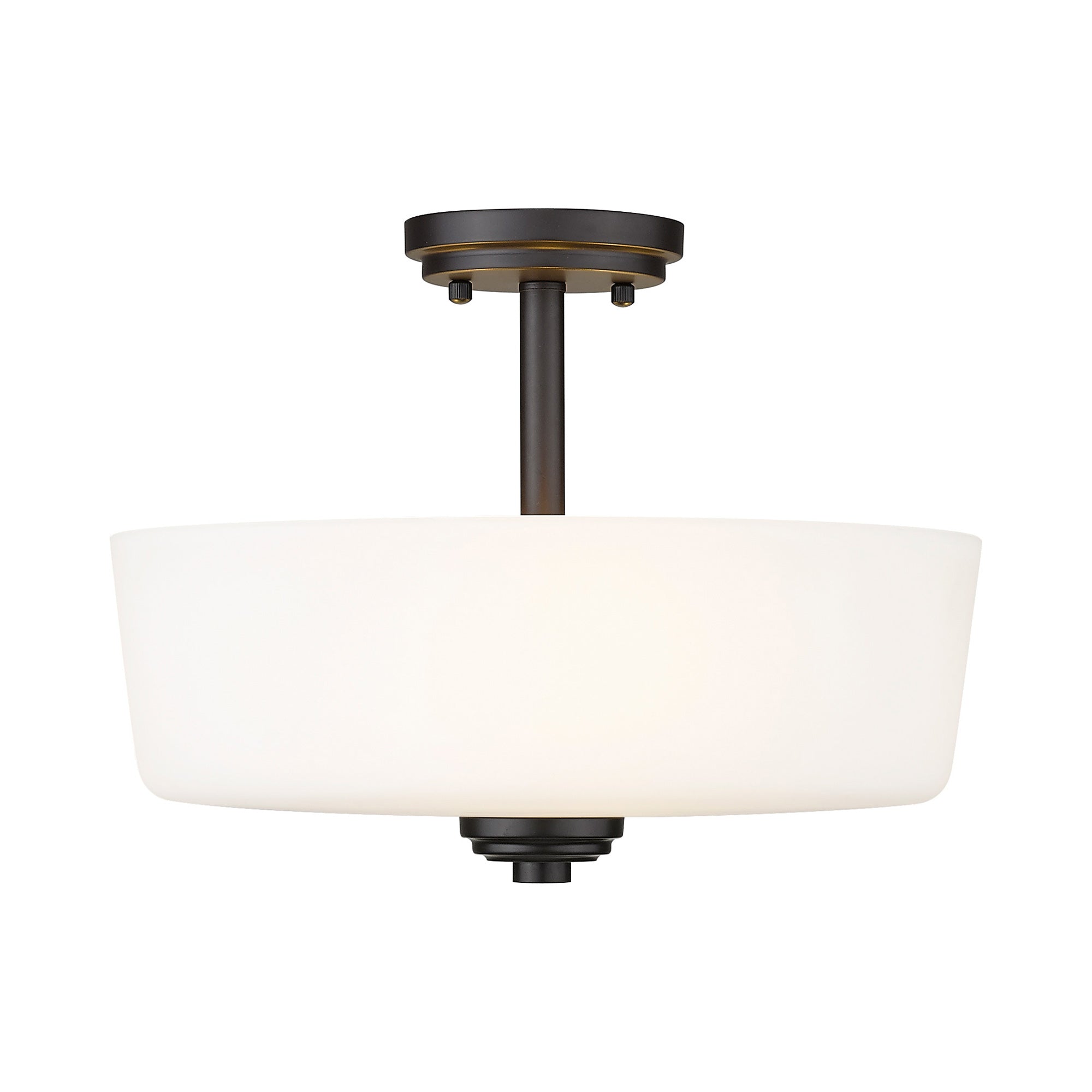 The Arlington Semi Flush Mount Ceiling Light from Z-Lite is a gift to fans of conventional retro style. Choose this light to invoke nostalgic Mid-Century Modern ambiance, blessed with versatility and simplicity. Dominated by a round matte opal glass shade, it embellishes a kitchen, dining room, or foyer in style.