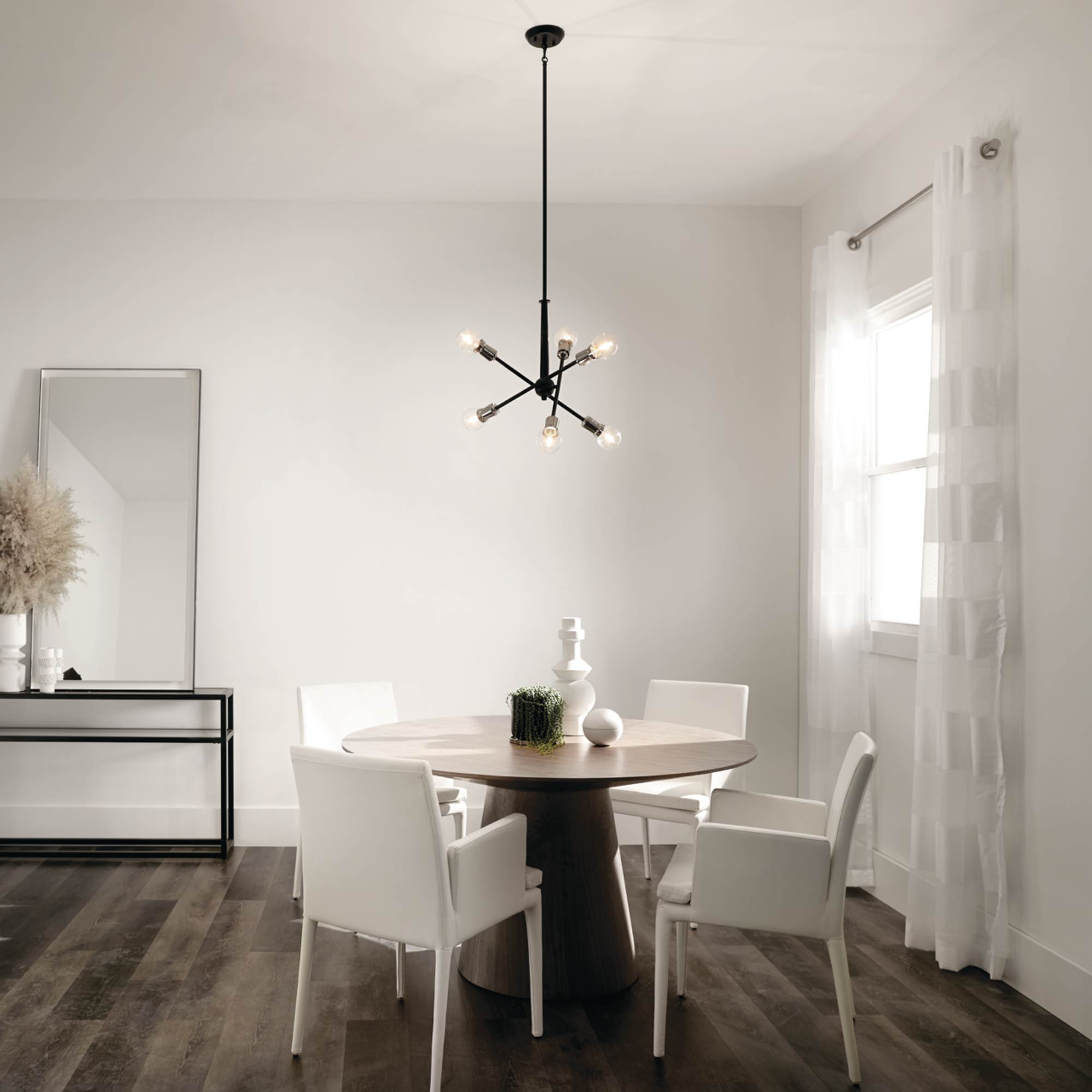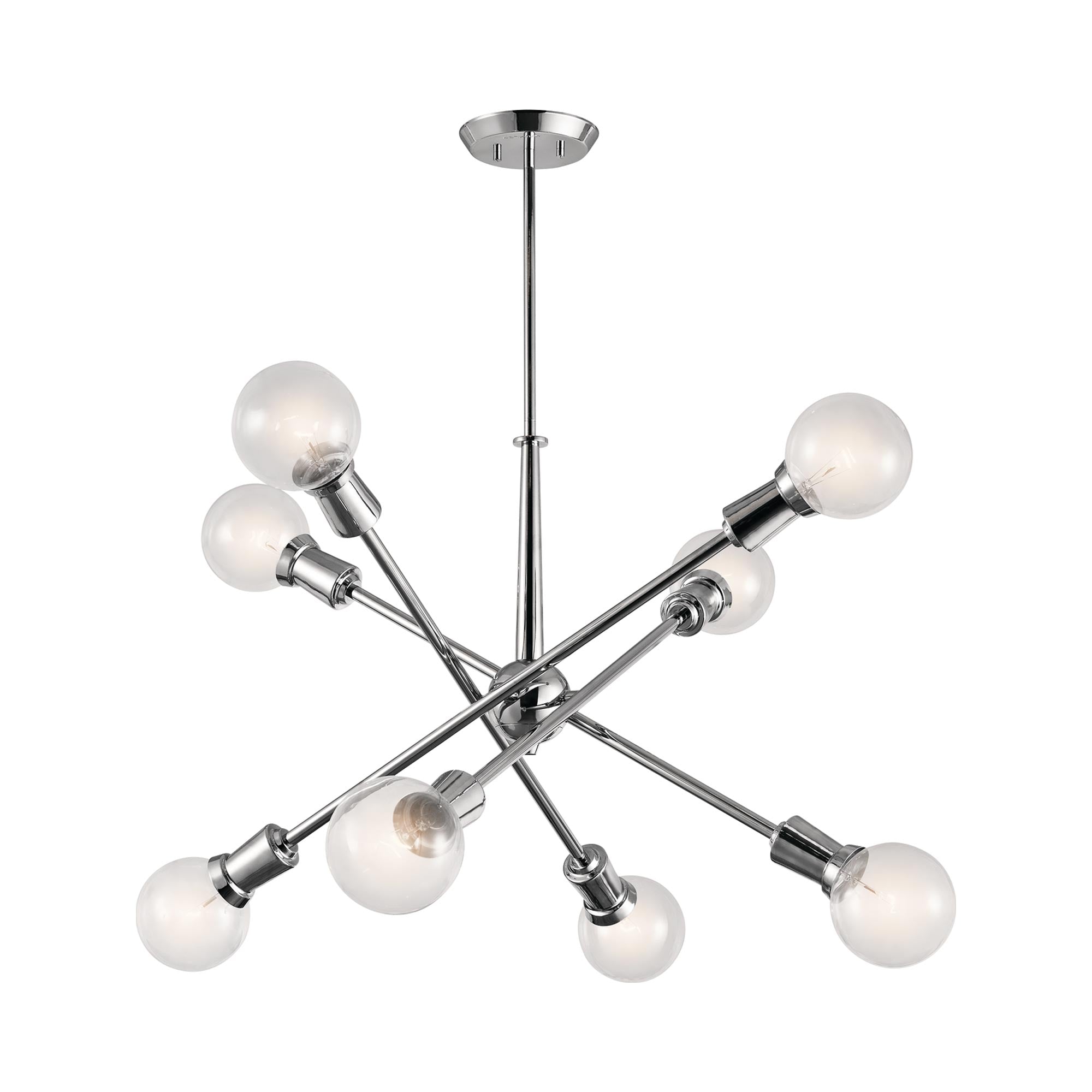 The Armstrong Chandelier features a "sputnik" design with adjustable arms, allowing you to customize the light horizontally or vertically for just the right look. The Armstrong chandelier is perfect in contemporary or mid century modern environments.
