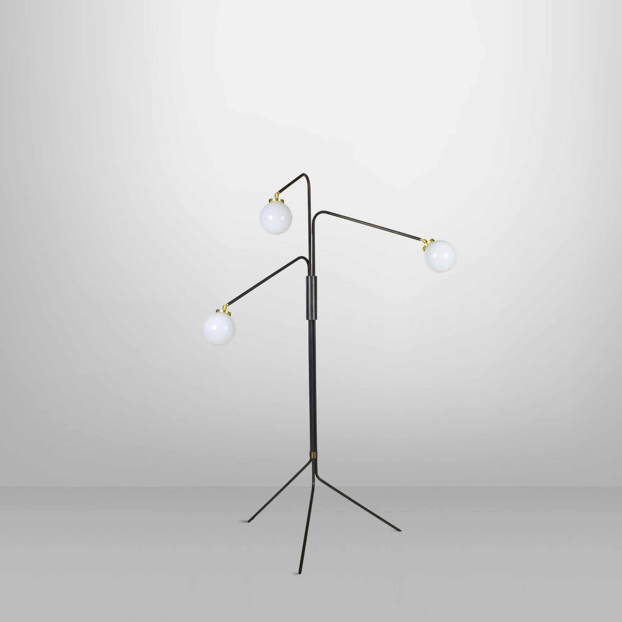 A cheery vibe shows through in delicate opal glass globes dotting the Array Opal Floor Lamp from CTO Lighting. Showcasing a perfect mix of old and new, this retro-inspired light is modernized with a slender body and convenient features. Multiple arms rotate and move to spread light as needed, as metalwork is bronzed and hand-waxed for gleaming, sophisticated effects.