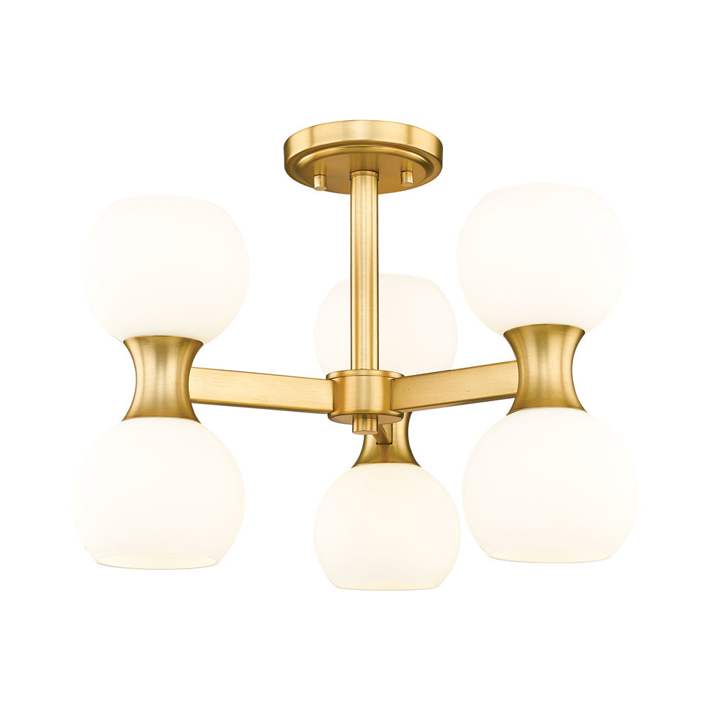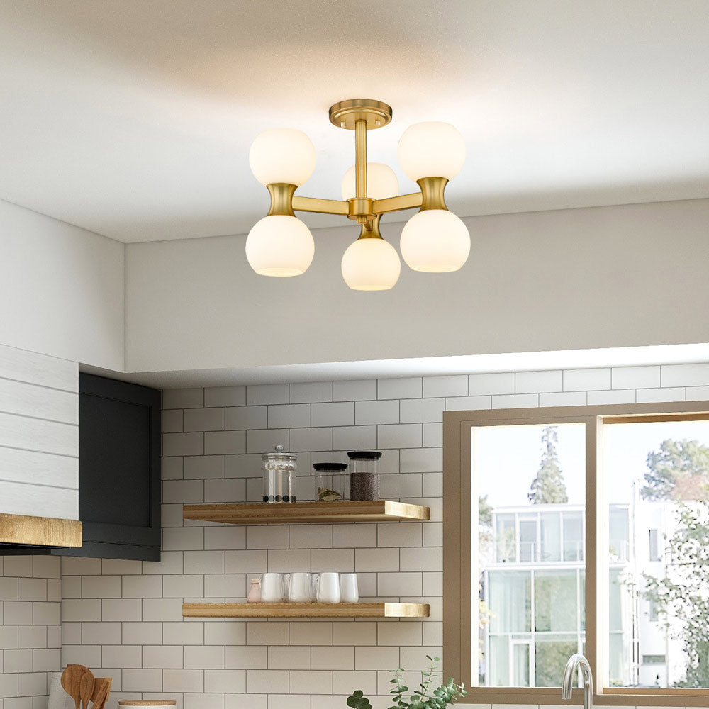 Harken back to a past era to infuse a whimsical tone into a modern space. The Artemis Semi Flush Mount Ceiling Light from Z-Lite emulates Mid-Century Modern and vintage in one sweeping motif, blending tasteful metal framing with artisan opal glass semi-globe shades positioned to send illumination upward and downward. Attention-grabbing and fun, this fixture becomes a focal point in a kitchen, entryway, or main living space.