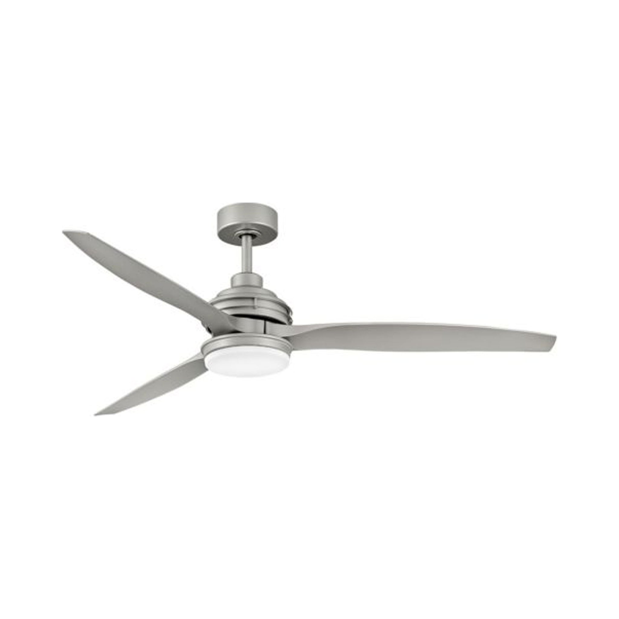 A modern three-blade design, the Artiste Outdoor LED Ceiling Fan from Hinkley is a stellar addition anywhere additional air circulation is needed. Its stylish design is emphasized with an energy efficient LED light kit with an etched opal glass diffuser for excellent illumination.