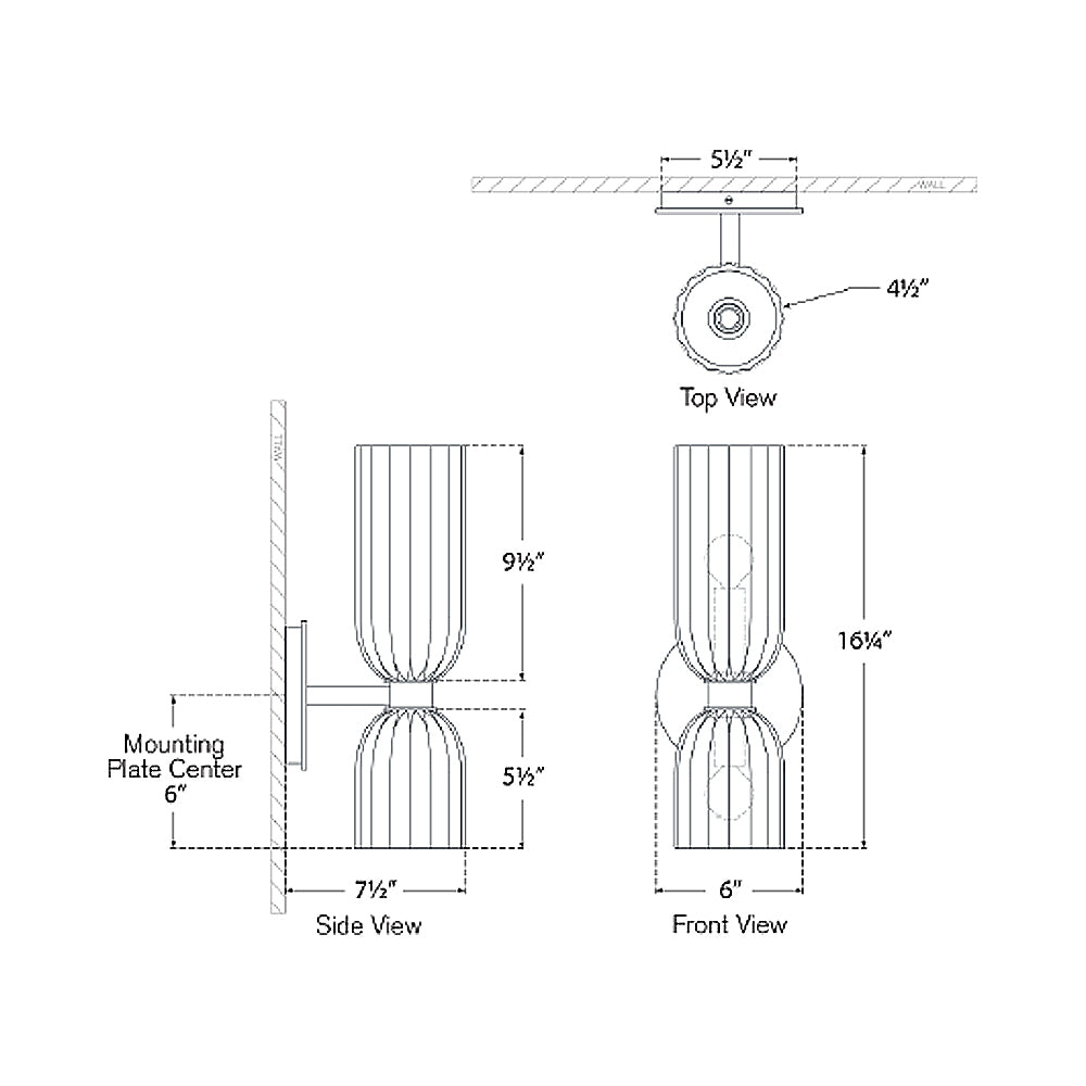 - Dimensions: 6"W X 16.25"H; 7.5" Extension