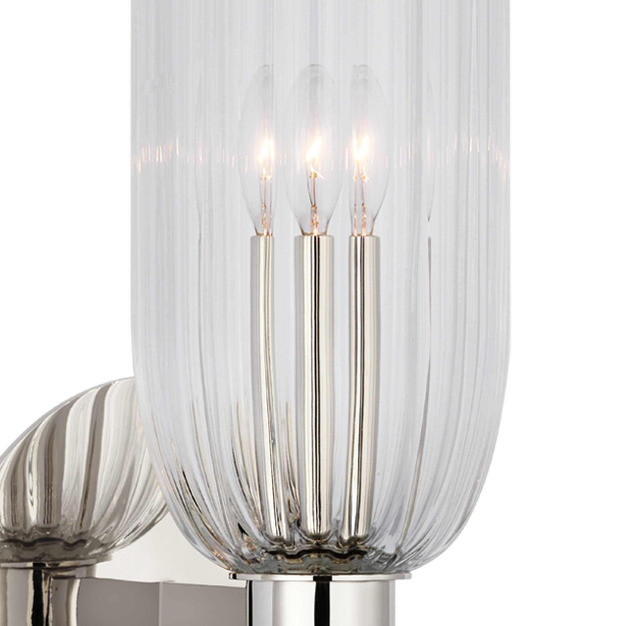 An element of classic allure is achieved in the design of this Asalea Bath Double Wall Light from Visual Comfort Signature. A perfectly textured glass shade evokes images of dancing candlelight in the dark.