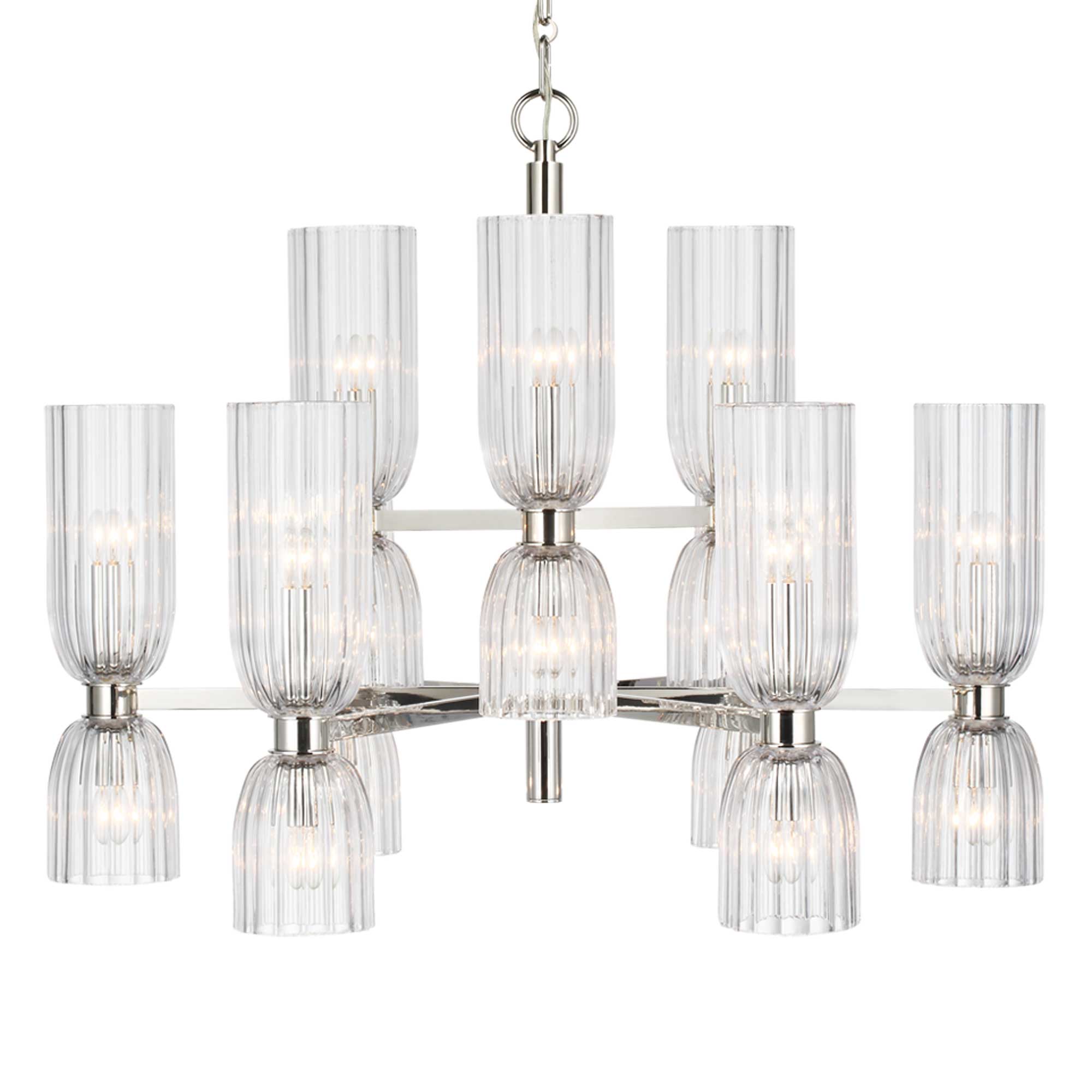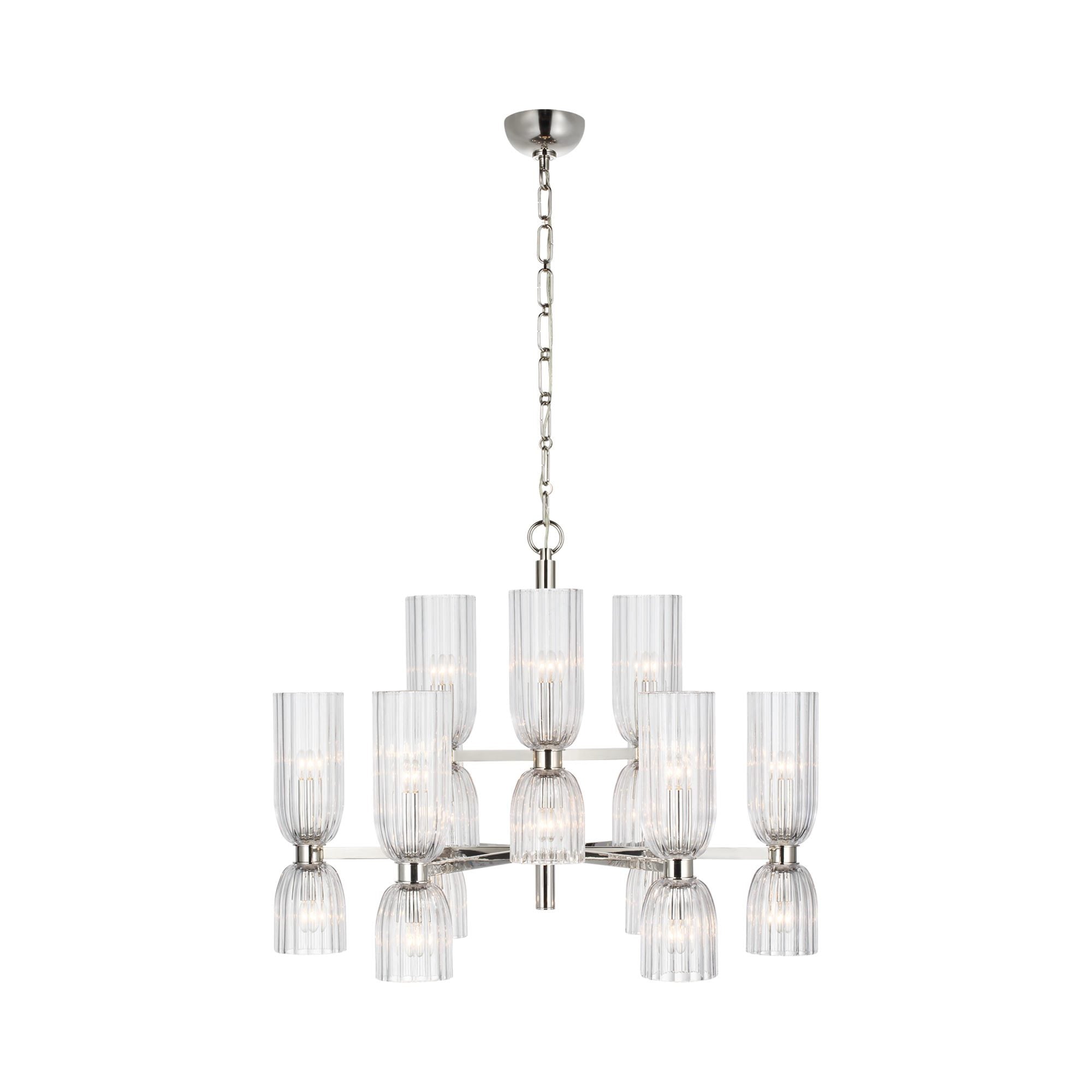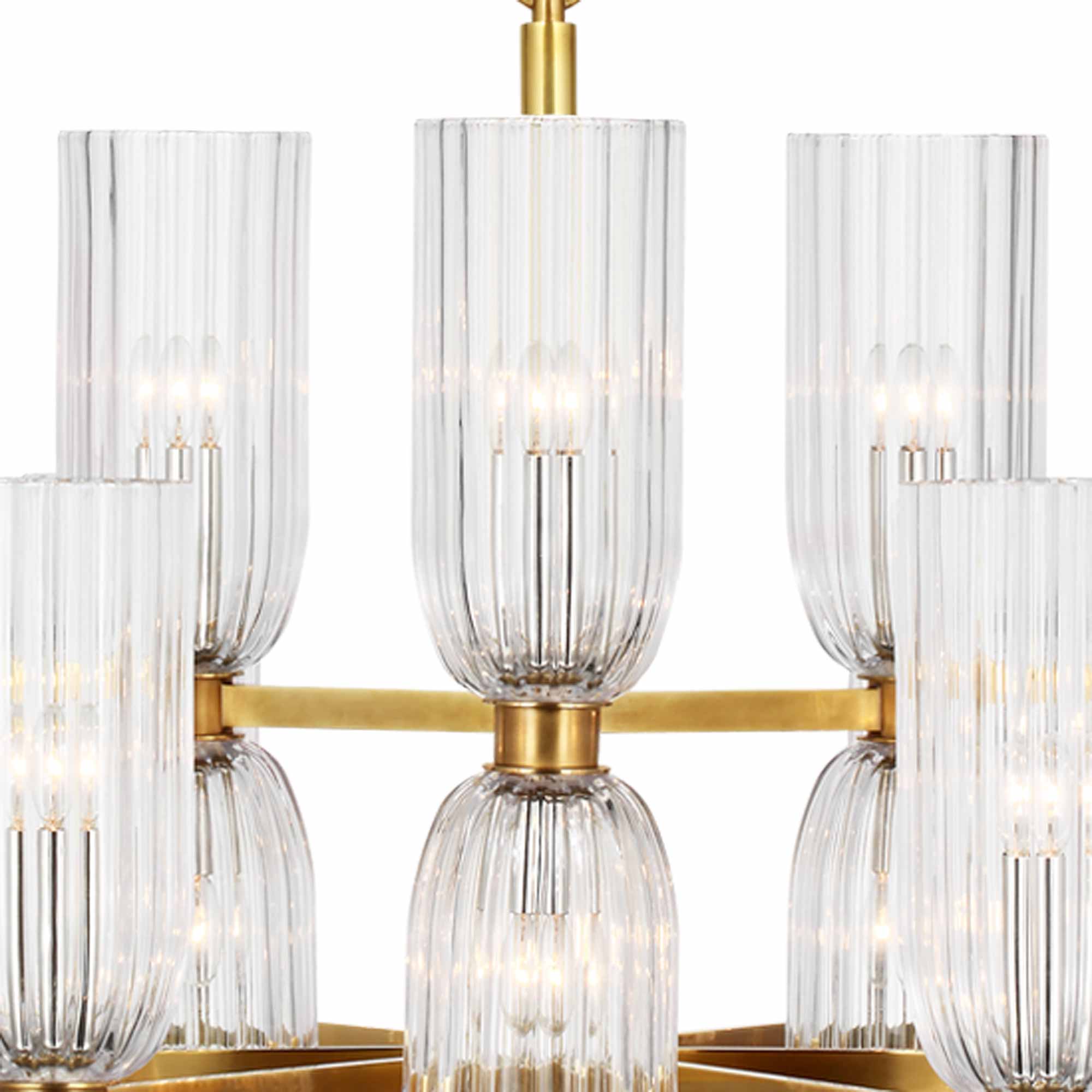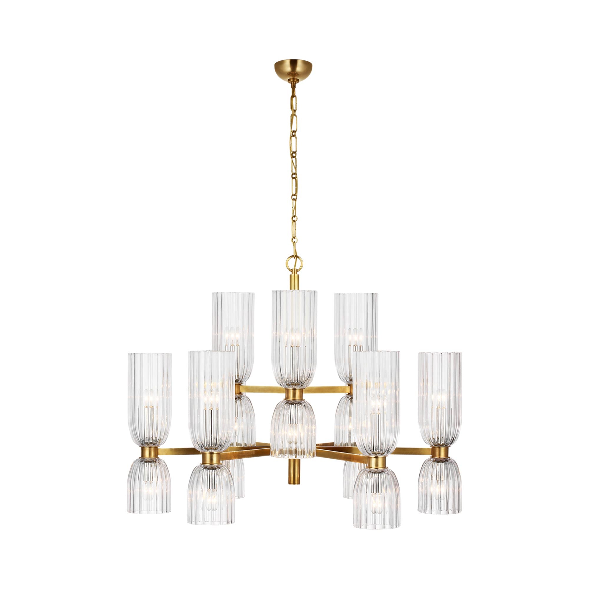 The Asalea Chandelier from Visual Comfort Signature compels guests to ooh and ahh over a stylish silhouette. A two-tier design and glass shades makes a perfect option for complementing your spiraling staircase.