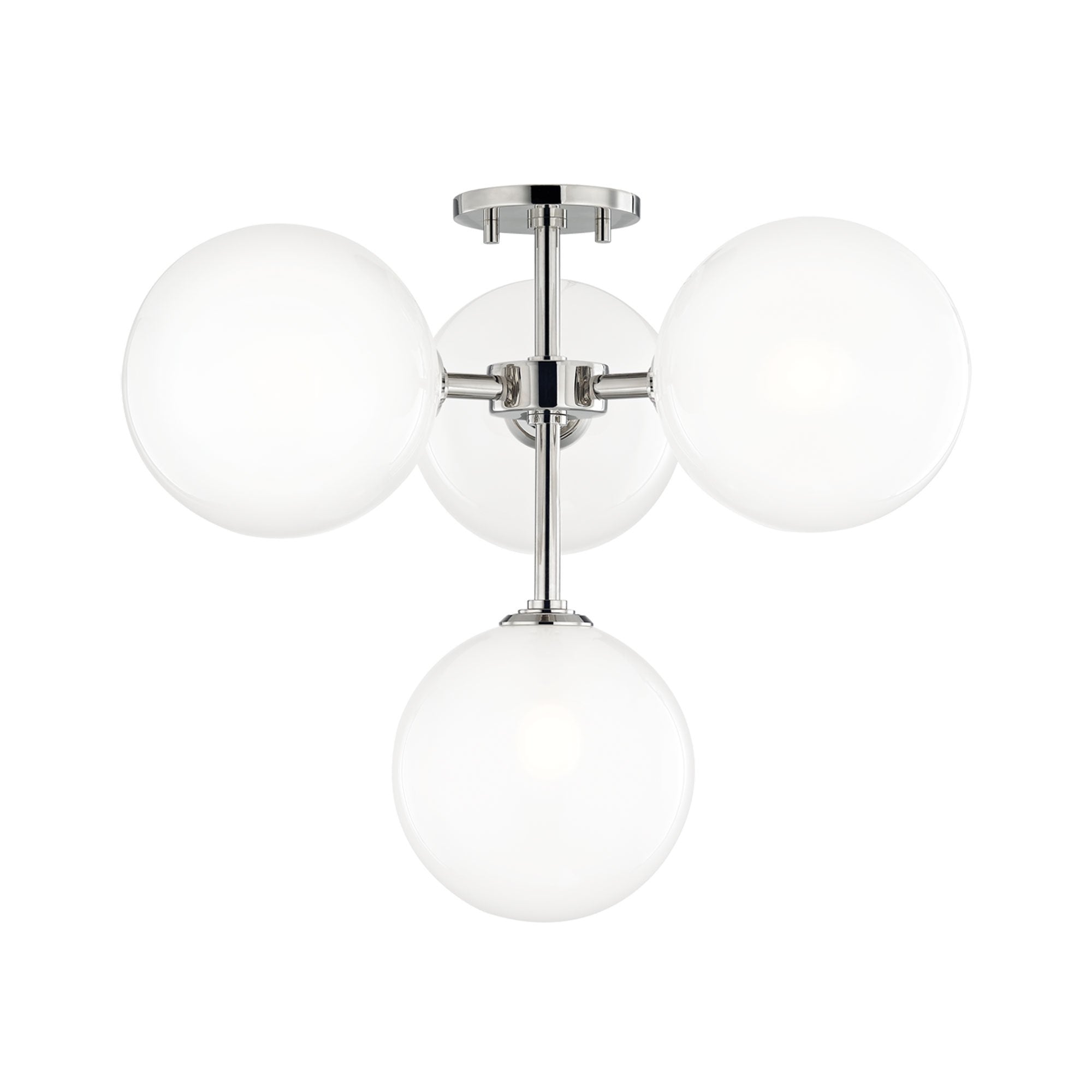 Connect the dots of stylishness and charm with this Ashleigh 4-Light LED Semi-Flush Mount Ceiling Light from Mitzi. Shiny metal arms in aged brass or polished nickel make the ideal complement to the four round glass shades that evoke elegant bubbles emitting an ambient LED glow that lights up any kitchen, hallway, or bathroom.