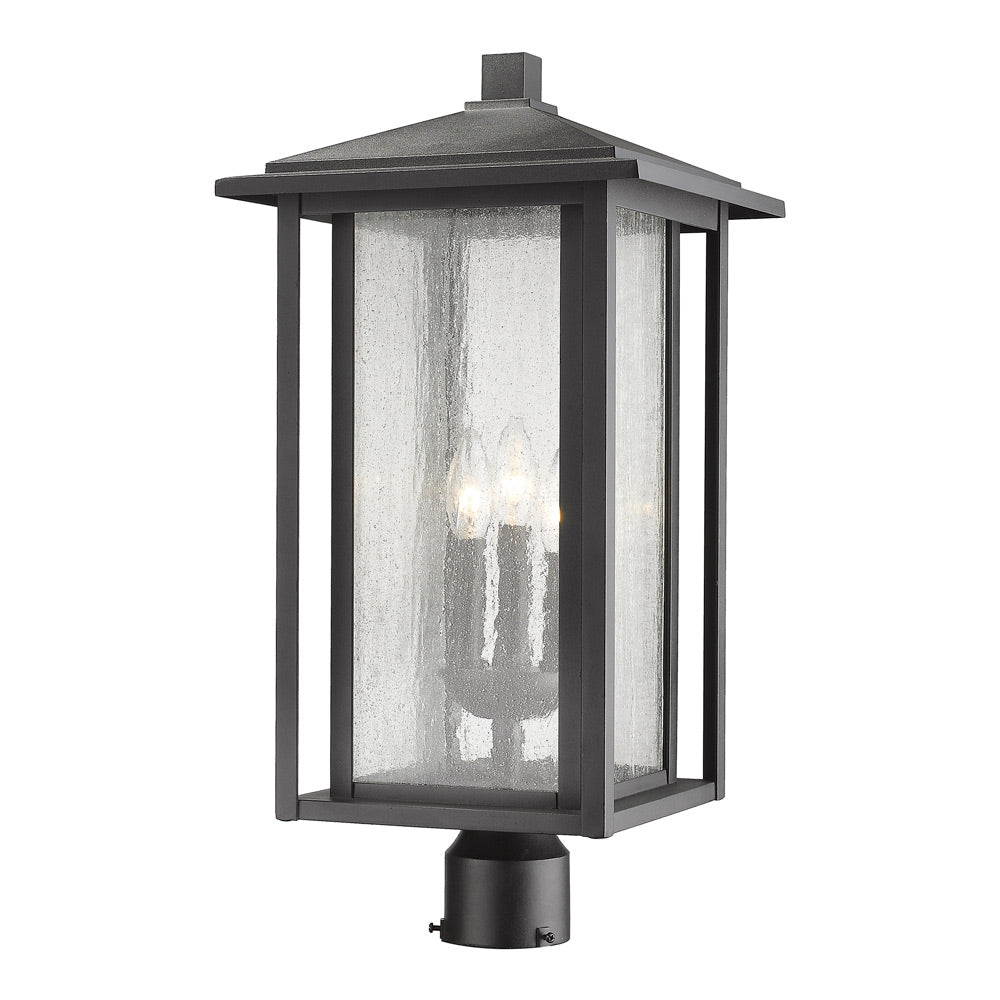 A custom exterior setting deserves upscale and artisan light fixtures, and the Aspen Outdoor Post Light from Z-Lite brings that in spades. Make your hard work materialize with this lantern-inspired post light leaning on openwork and solid metal framing. Its sophisticated temple-like roof and chic clear seedy glass panes pull out all the stops toward measuring up to a sophisticated garden or walkway.