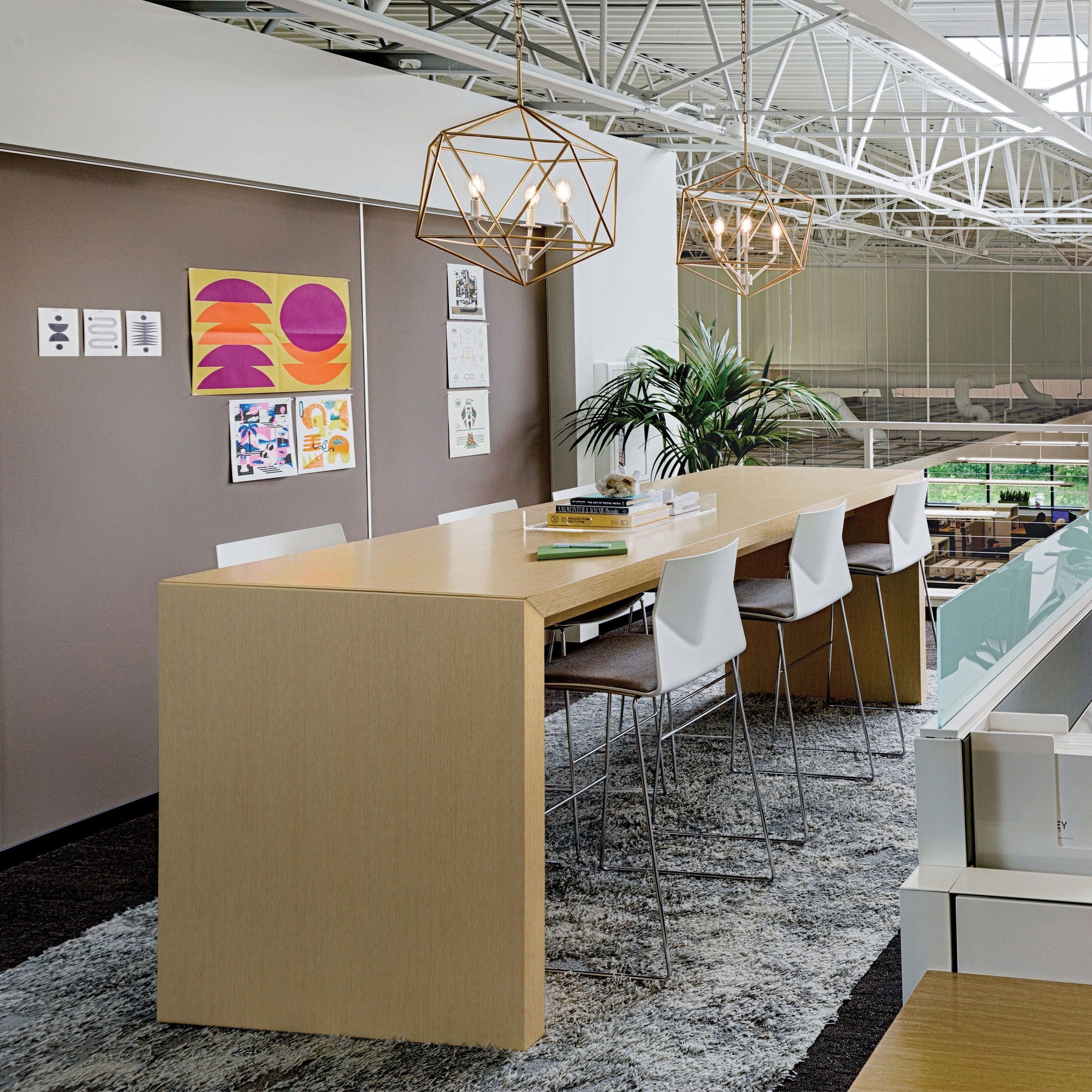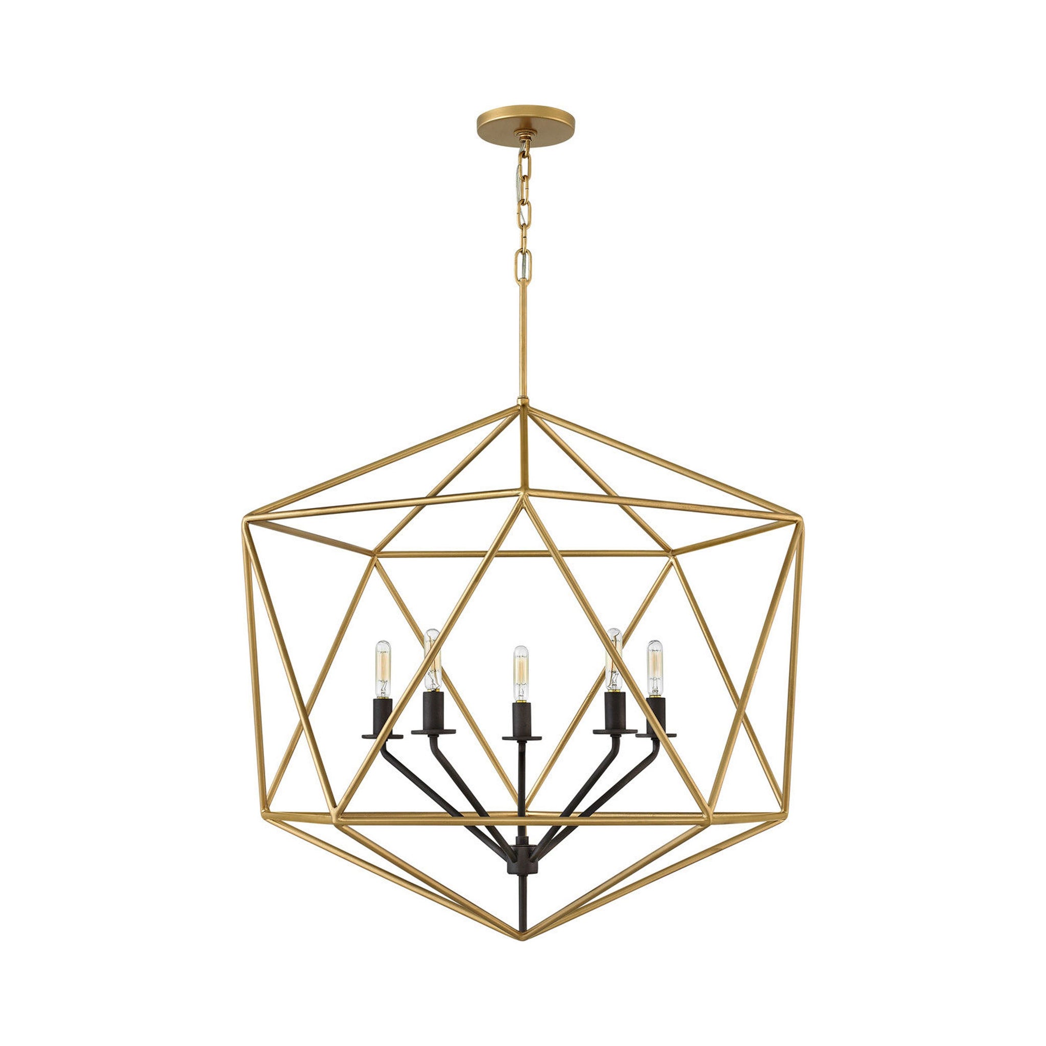 Blending geometric shapes to create an engaging, mid-century silhouette for the contemporary Astrid Chandelier from Hinkley. The center light cluster adds a vintage finishing touch.