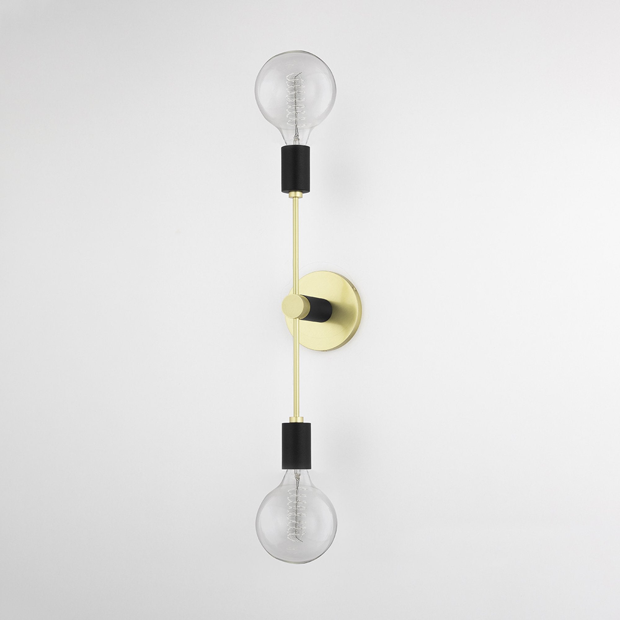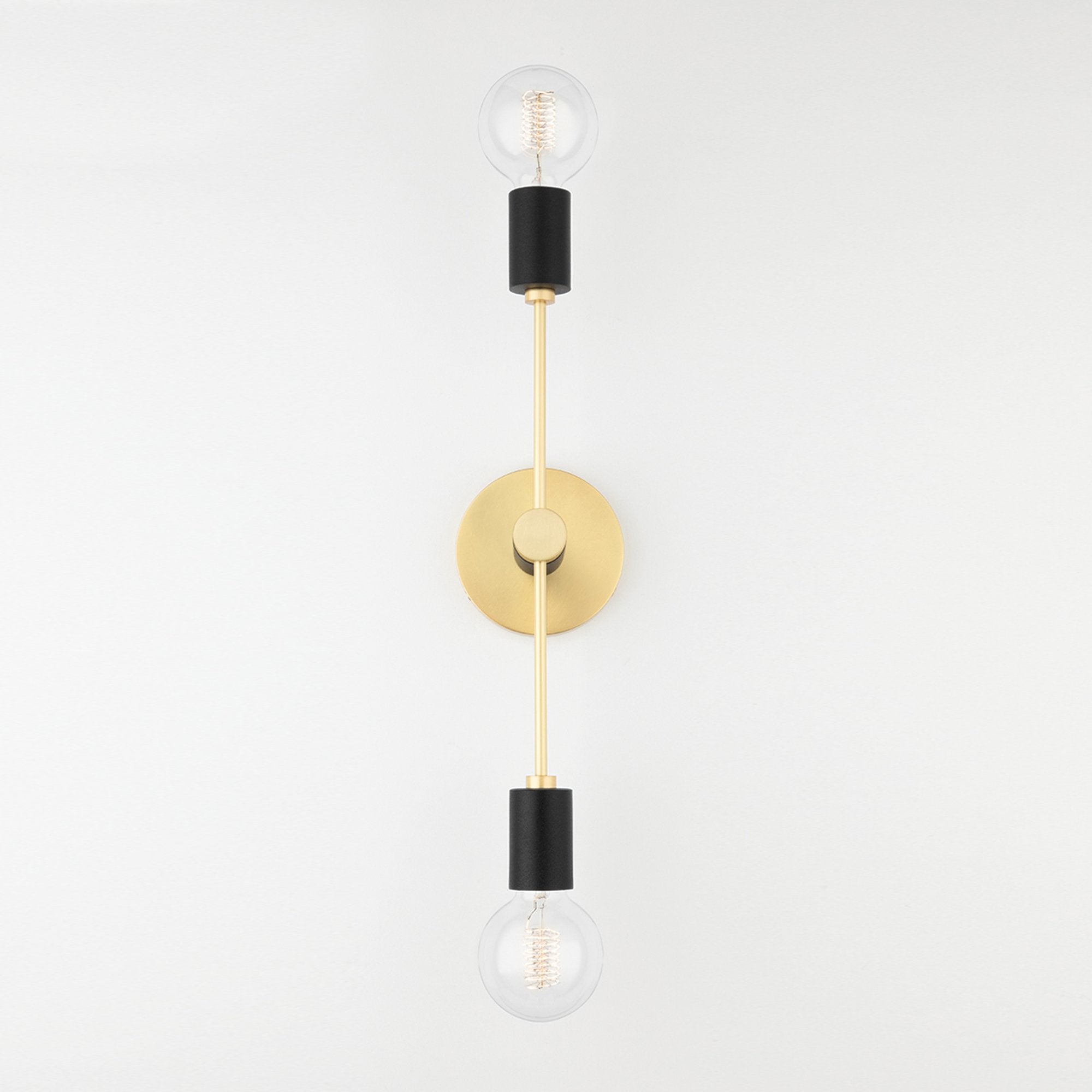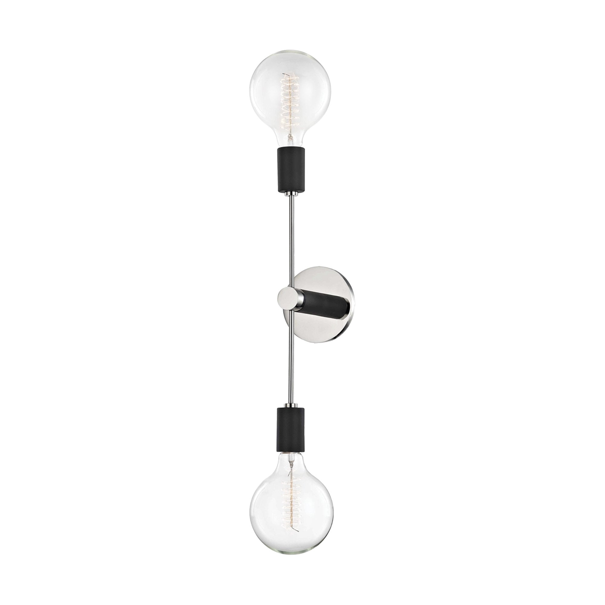 The Astrid Wall Light from Mitzi leaves a simplistic, yet bold impression along walls with its dual baton-like design. Featuring contrasting finishes of matte black sockets and luxe shiny metallics, this sconce is part sculptural piece, part industrial style.