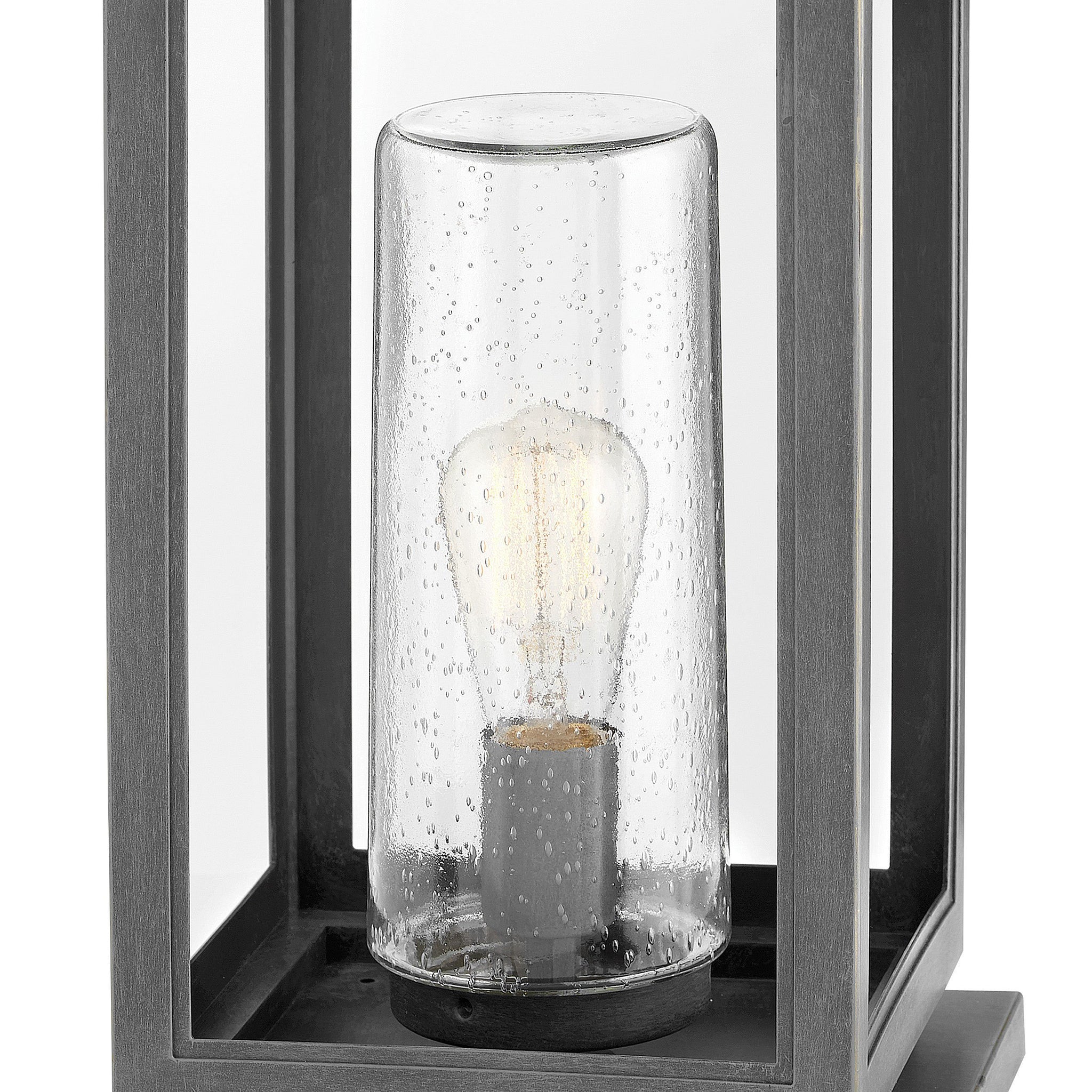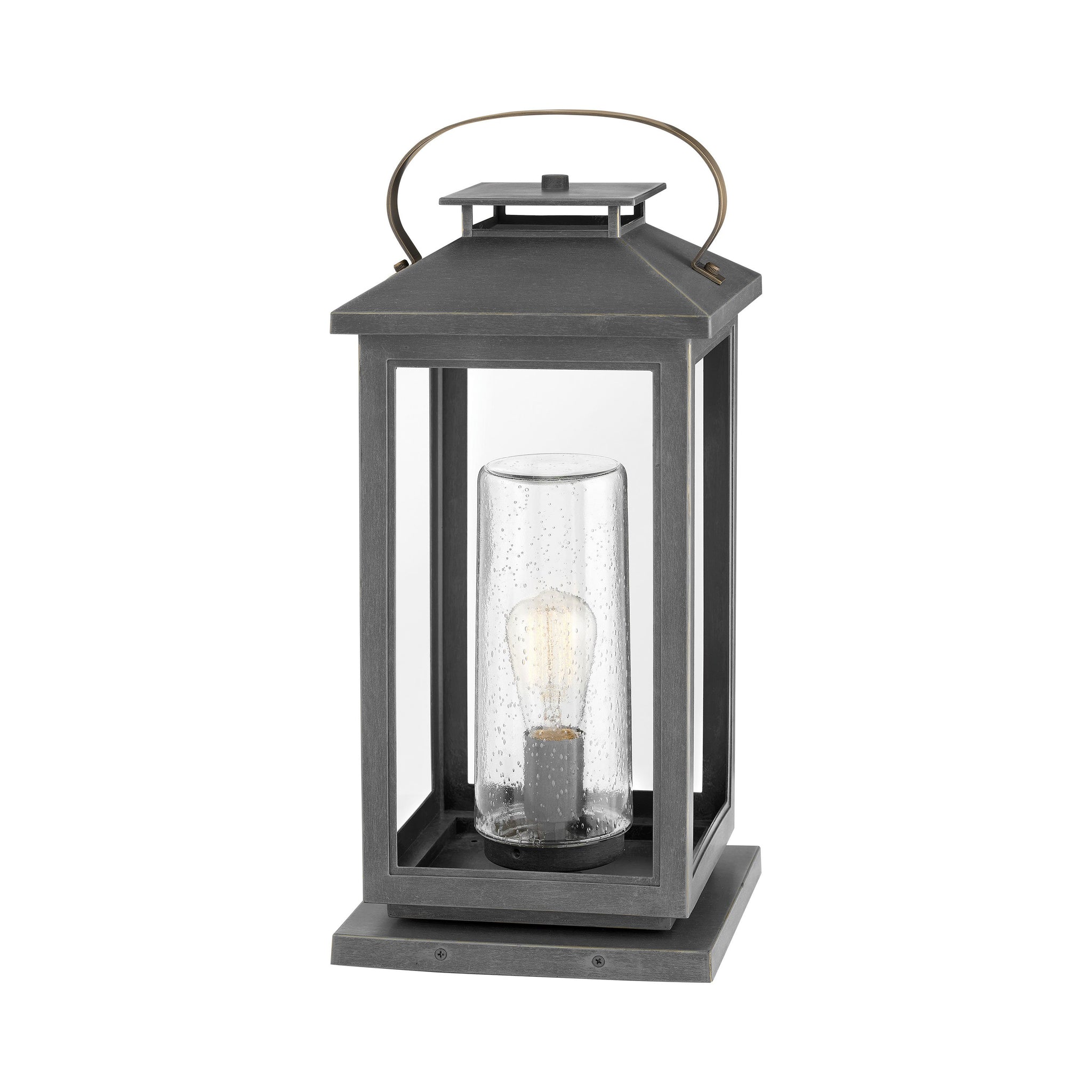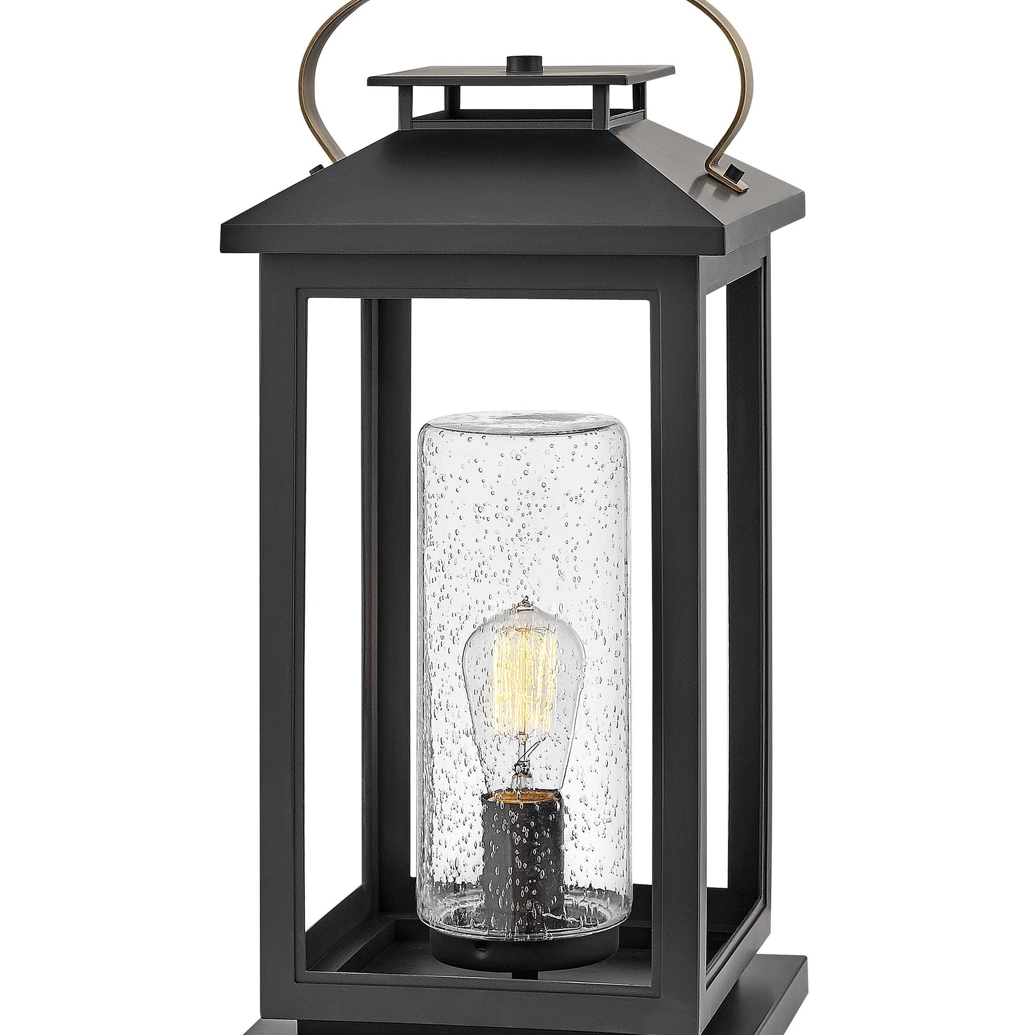 A classic coastal lantern silhouette is updated with a core of seedy glass to bring a sparkling finishing touch to the Atwater Outdoor Pier Mount Light from Hinkley. It’s the perfect addition to a backyard stream or meandering garden path.