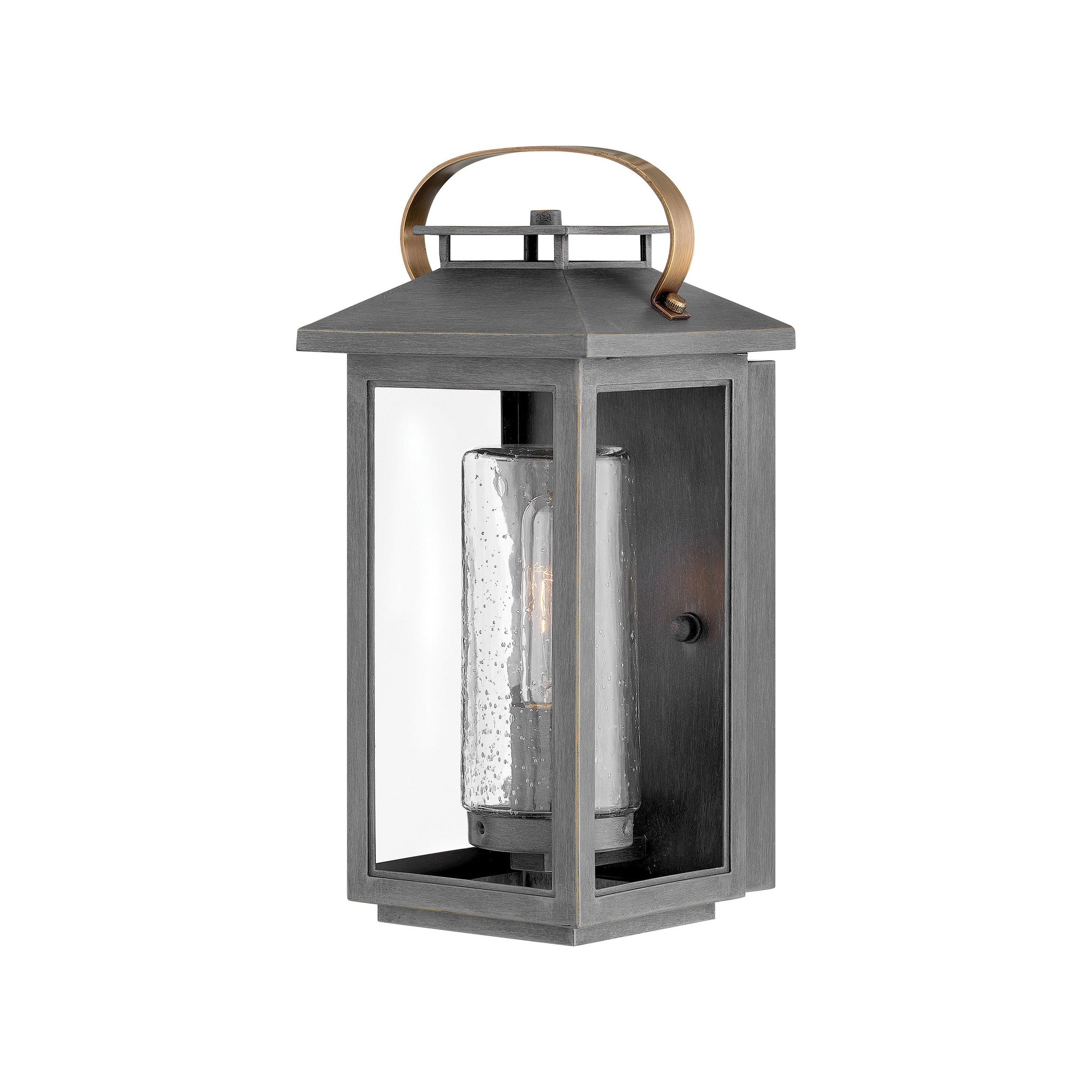 Classic and elegant, Atwater offers beauty and endurance. Constructed from a composite material and treated with an anti-fading agent, the updated coastal design incorporates elegant brass accents, handle, and an inner glass that creates a faux candle effect. The high performance finish is resistant to rust and corrosion with a 5-year warranty.