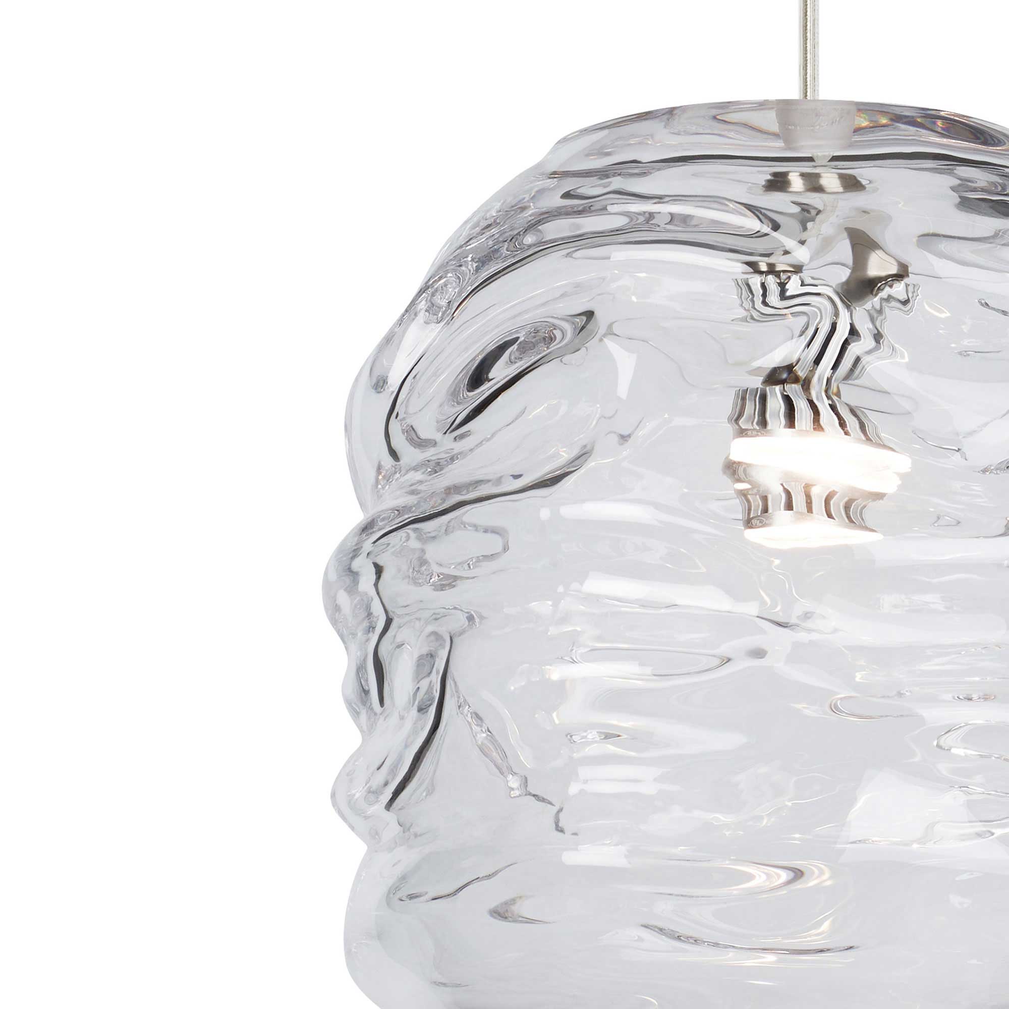 Thick, organic flowing glass of the modern Audra Grande pendant light from Visual Comfort Modern is painstakingly molded by European artisans to create an incredibly deep and rhythmic silhouette through which your choice of LED light or halogen light is artfully diffused. At 9.5” in height, this beautiful and unique pendant fixture is the perfect scale to be used as kitchen island lighting, bath lighting flanking a vanity or perhaps installed in a cluster as a modern interpretation of a chandelier in a foyer or dining room. With its five on-trend glass colors including classic clear, sultry smoke, surf green, winter white and steel blue, the Audra Grande light fixtures may be used to add a pop of color to complement décor in your special space.