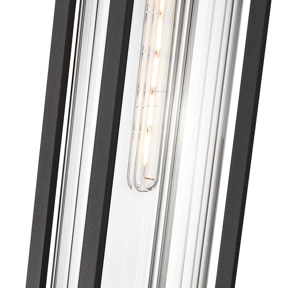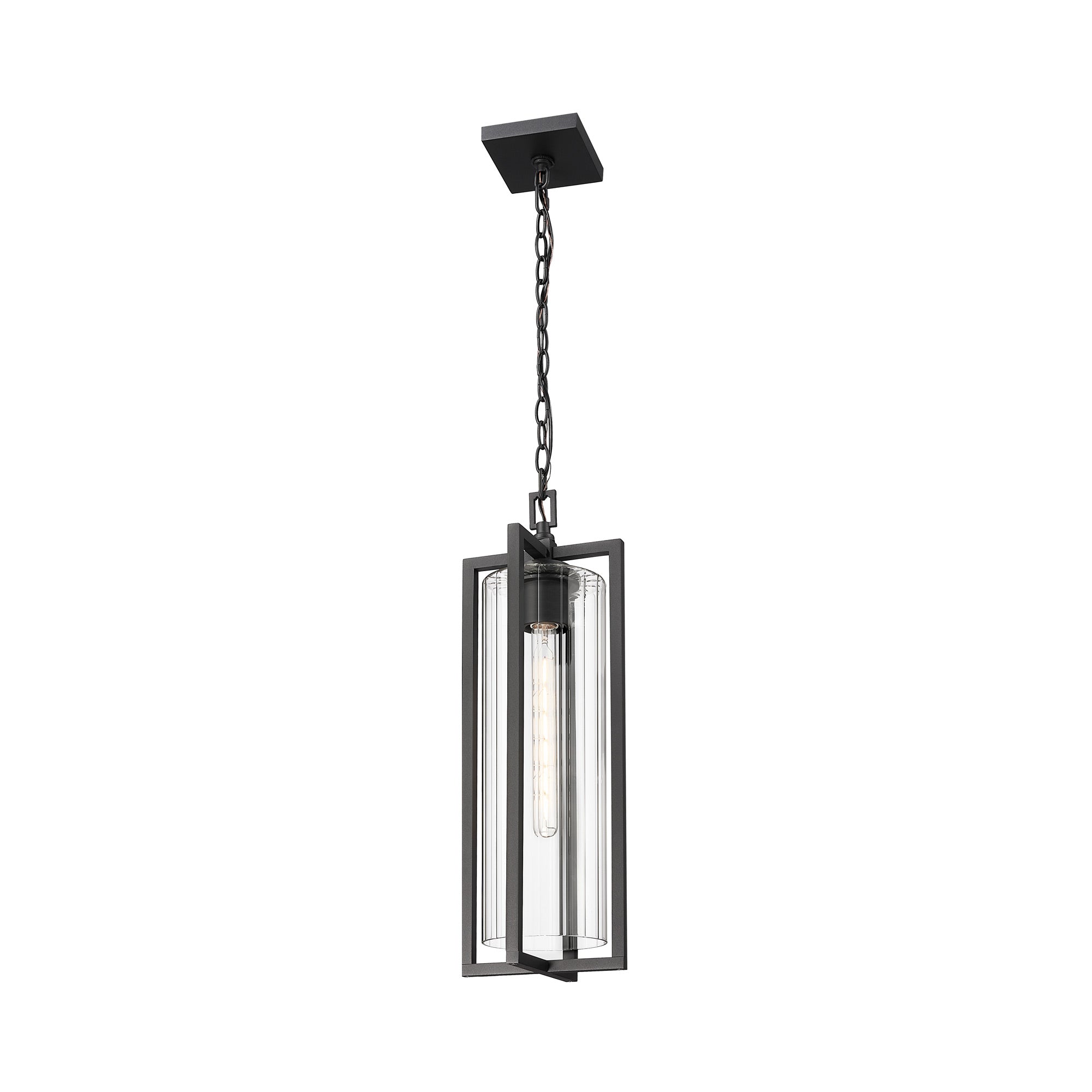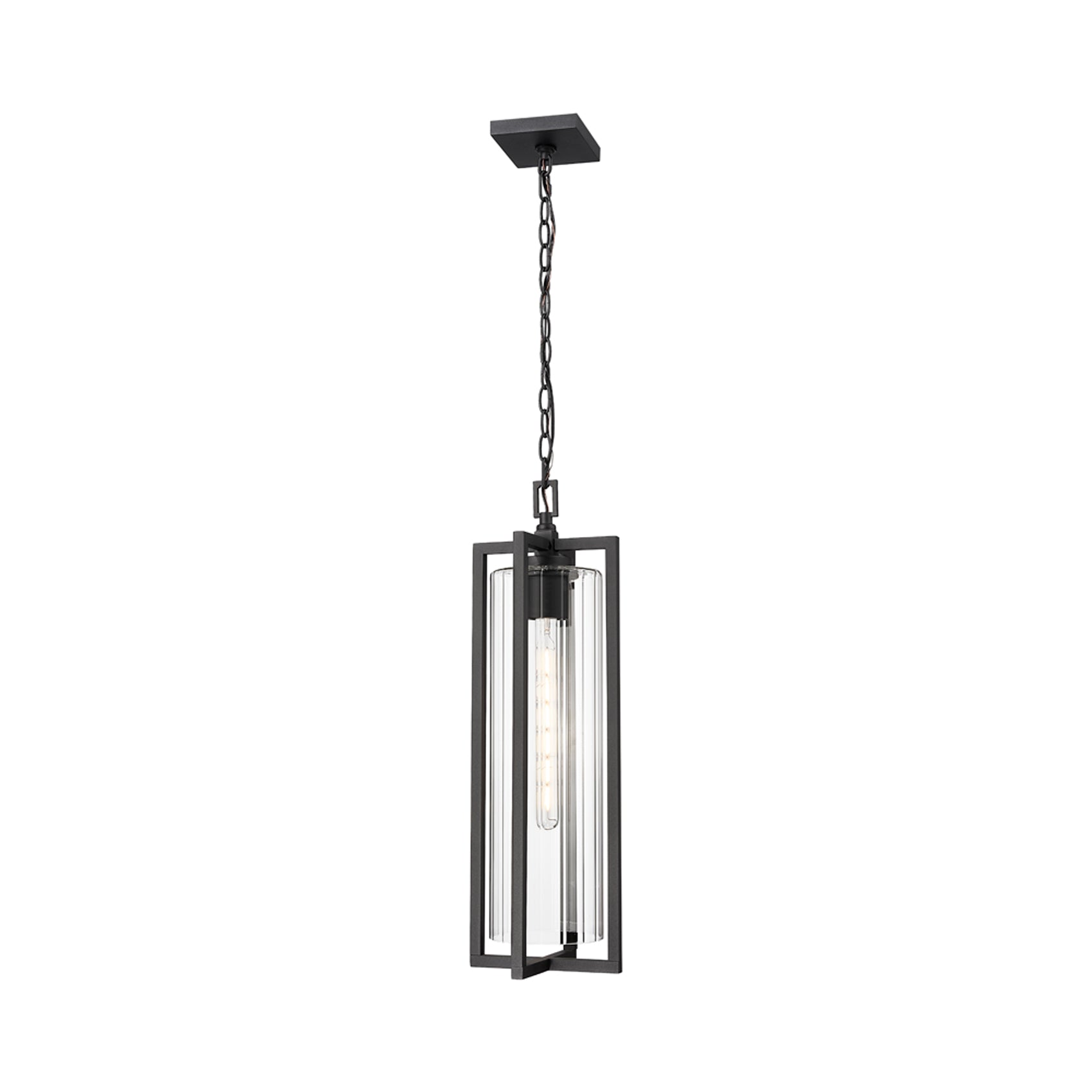 A powerful impact led by dimensionality and clean lines tells the story of the Aura Outdoor Pendant Light from Z-Lite. Openwork aluminum framing offers a chic coal black finish, versatile and dynamic. Ribbed glass magnifies a linear attitude as it reflects radiant illumination suitable for outdoor entertaining spaces.