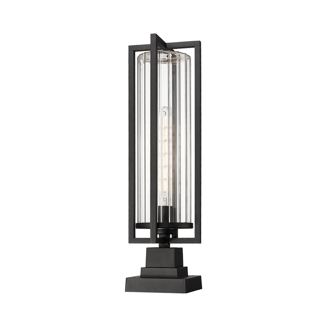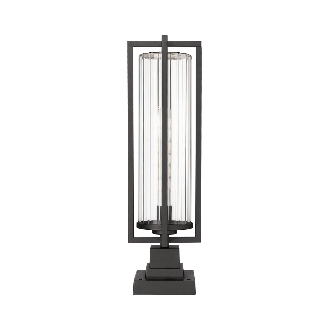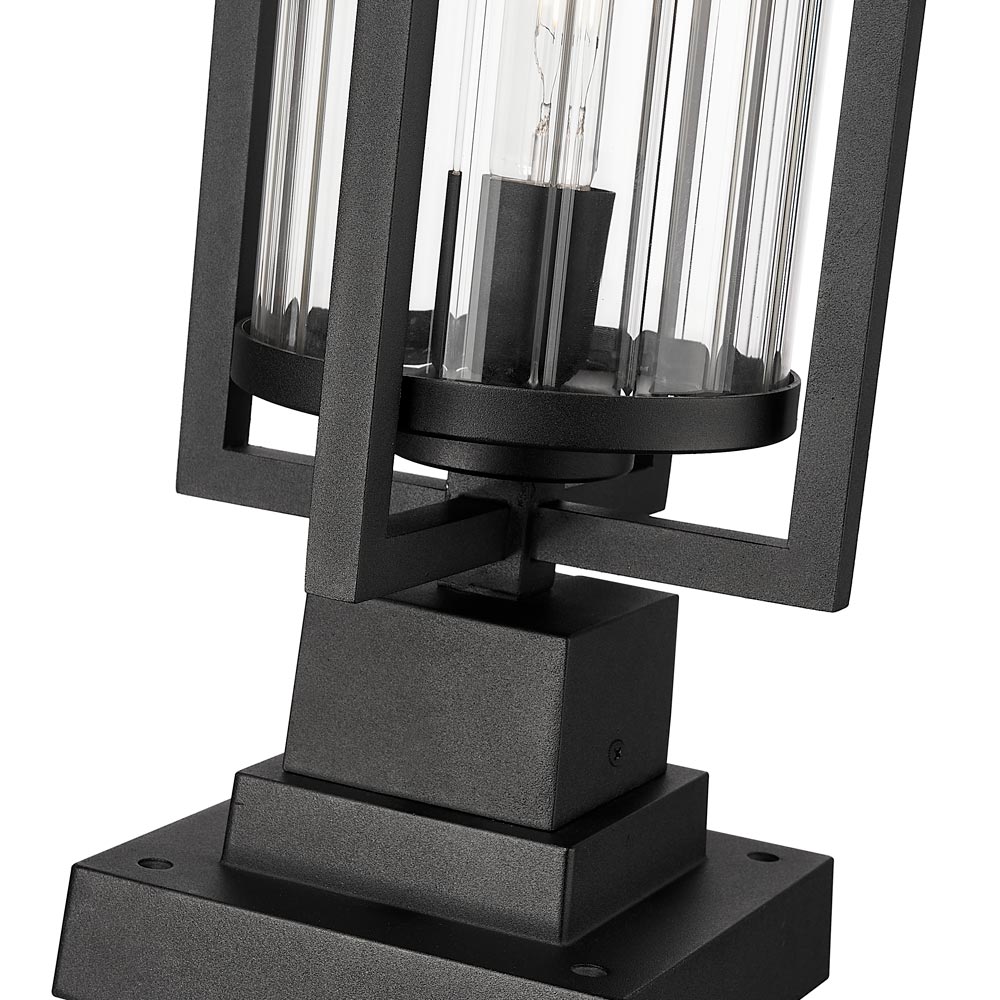 The Aura Outdoor Pier Mounted Post Light from Z-Lite ups the ante on a sophisticated design embellishing a walkway or custom landscaped setting. Dimensionality follows an openwork aluminum frame with a classic coastal black finish, emulating a lantern motif with fully updated elements. Illumination glows through a ribbed glass cylinder shade to highlight a beautifully designed exterior space.