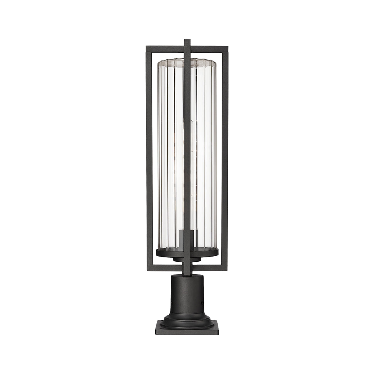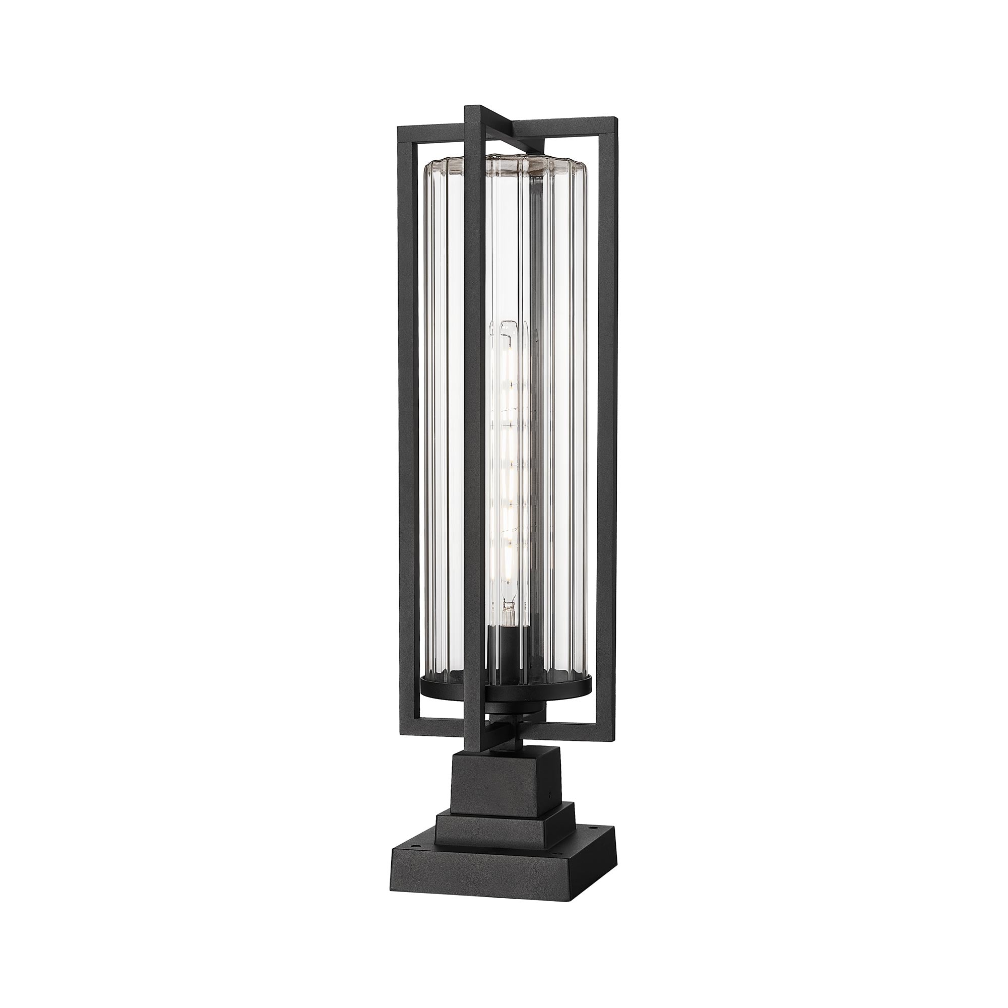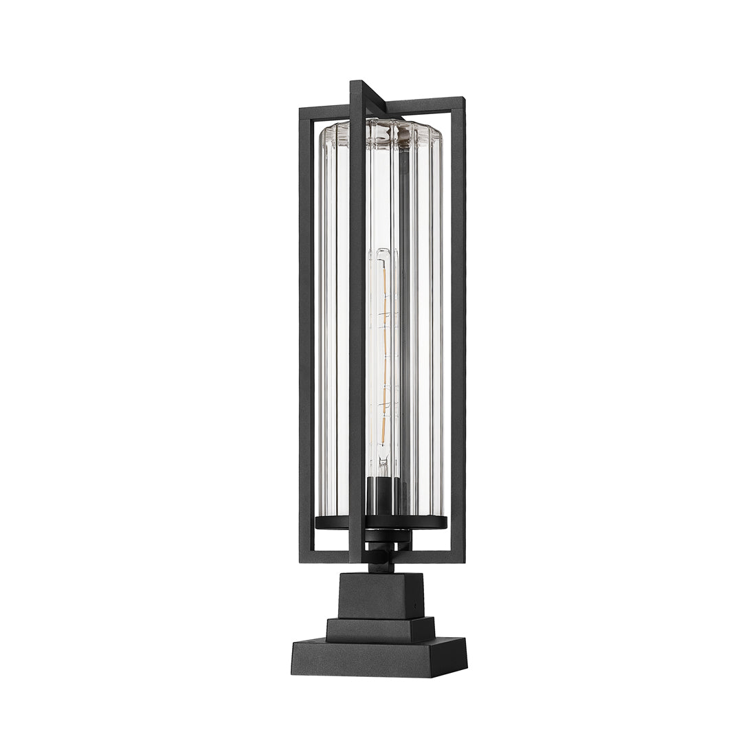 The Aura Outdoor Pier Mounted Post Light from Z-Lite ups the ante on a sophisticated design embellishing a walkway or custom landscaped setting. Dimensionality follows an openwork aluminum frame with a classic coastal black finish, emulating a lantern motif with fully updated elements. Illumination glows through a ribbed glass cylinder shade to highlight a beautifully designed exterior space.