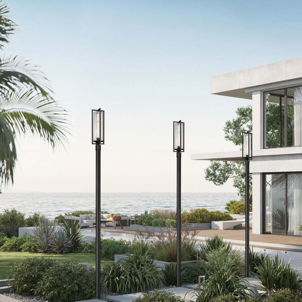 Slender and modern, the Aura Outdoor Post Light from Z-Lite is a perfect partner for an updated exterior setting. Illuminate a front or back yard with this boxy and dimensional lightweight coastal black finish aluminum frame and body, putting a geometric spin on its overall aesthetic and adding an indulgent look with a ribbed glass shade.