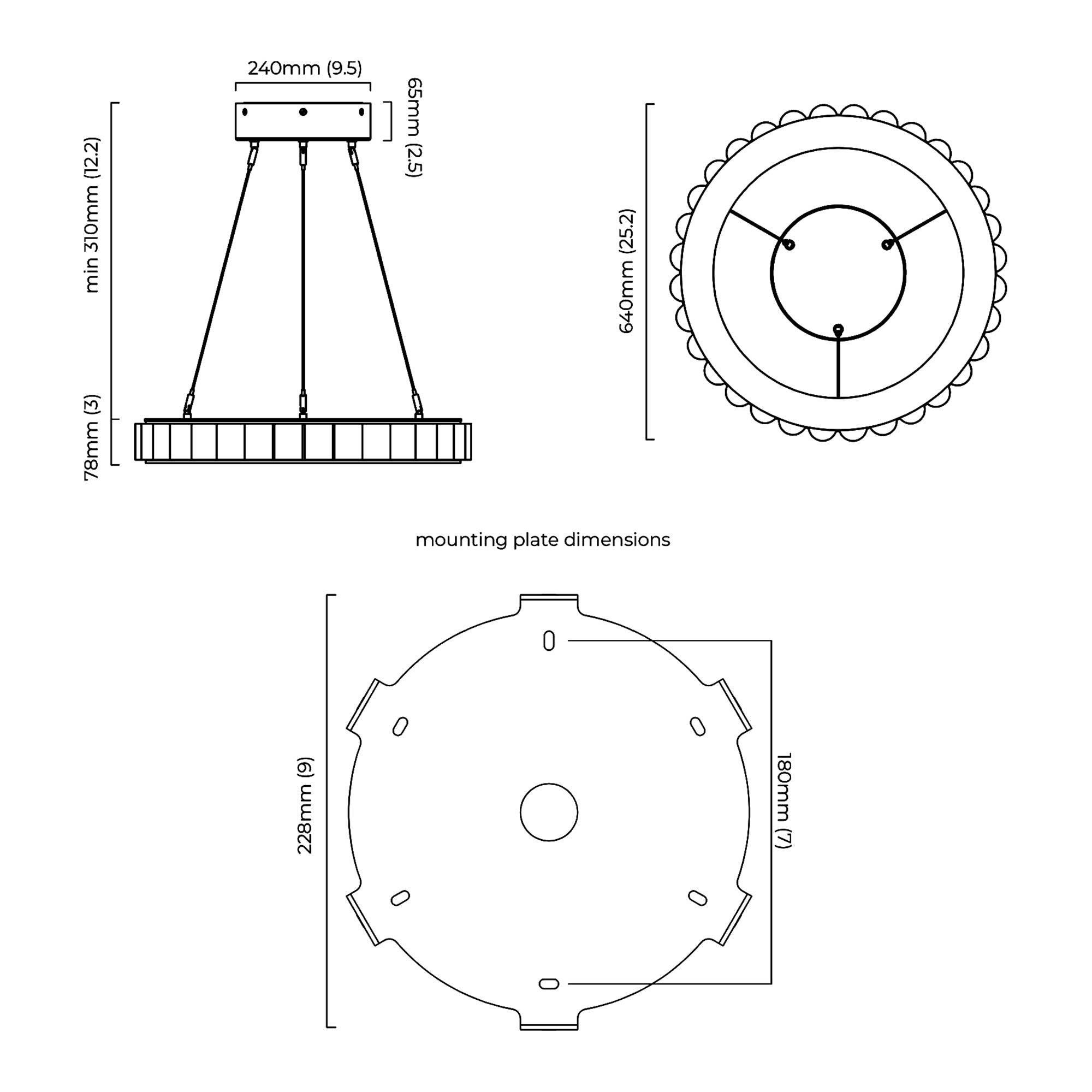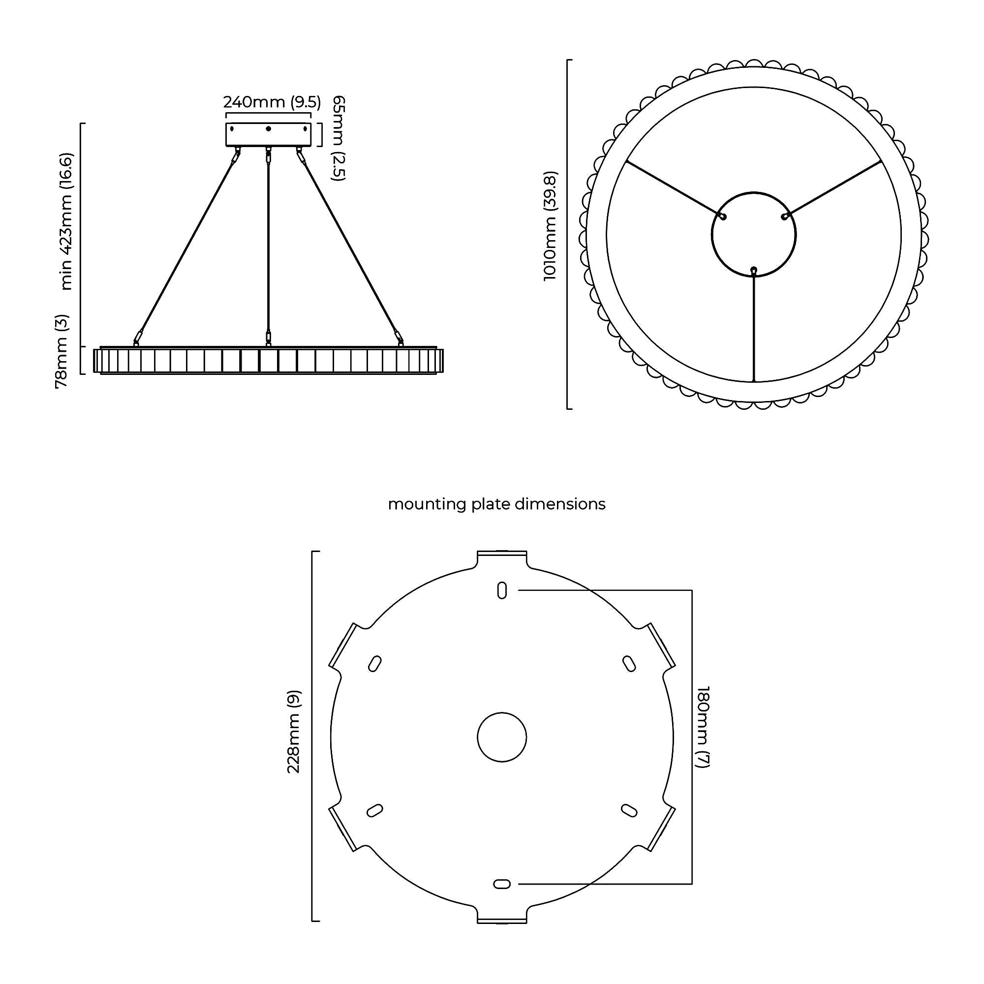 - Canopy: 6.3"D (None Mounting Kit), 9.45"D X 2.56"H (Mounting Kit)