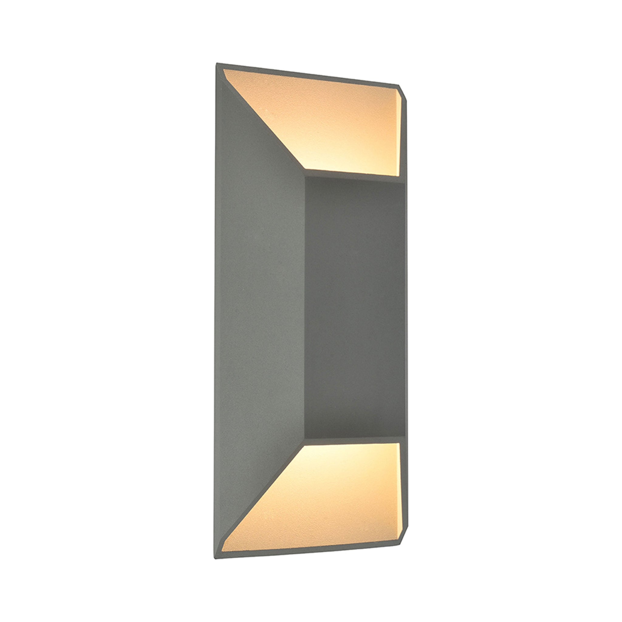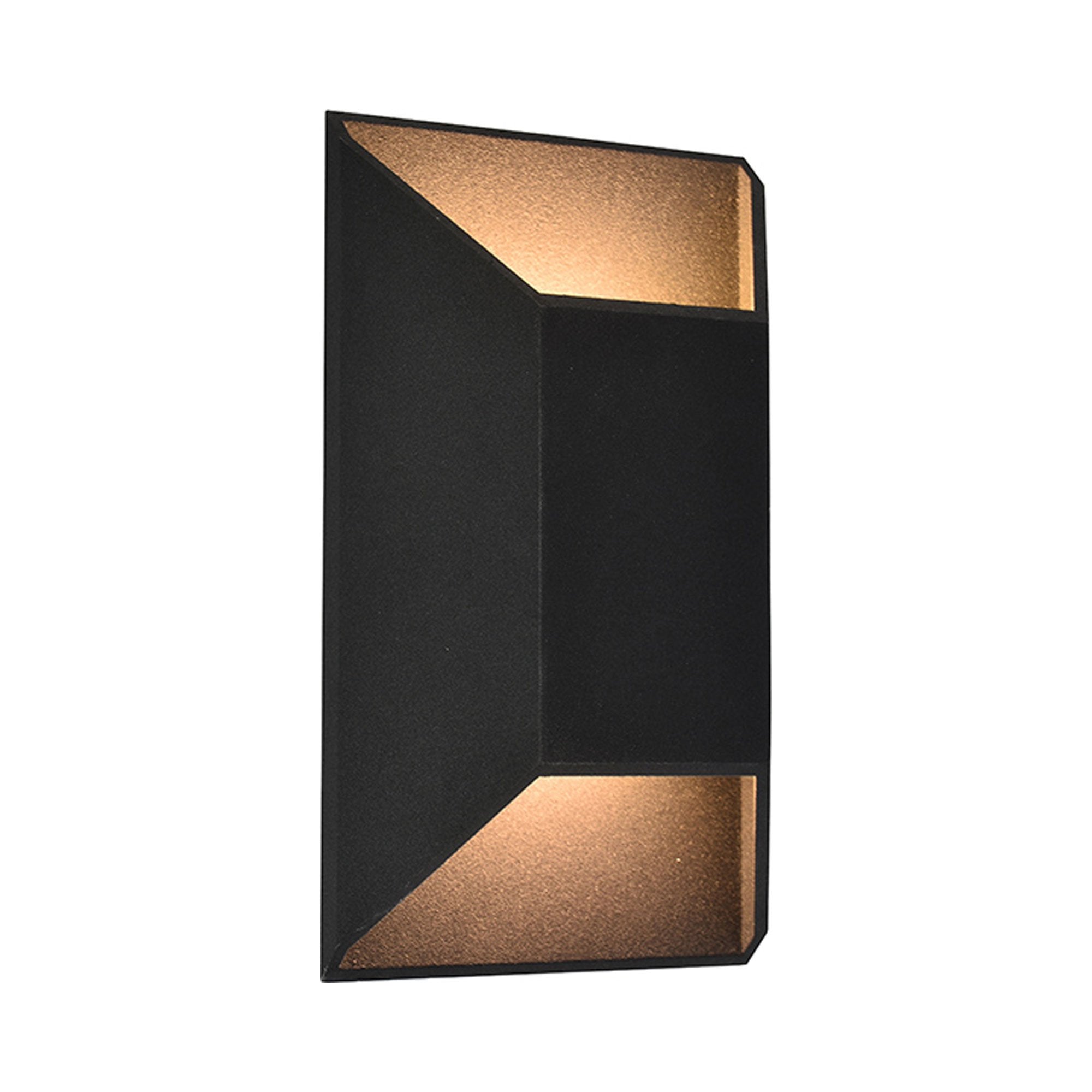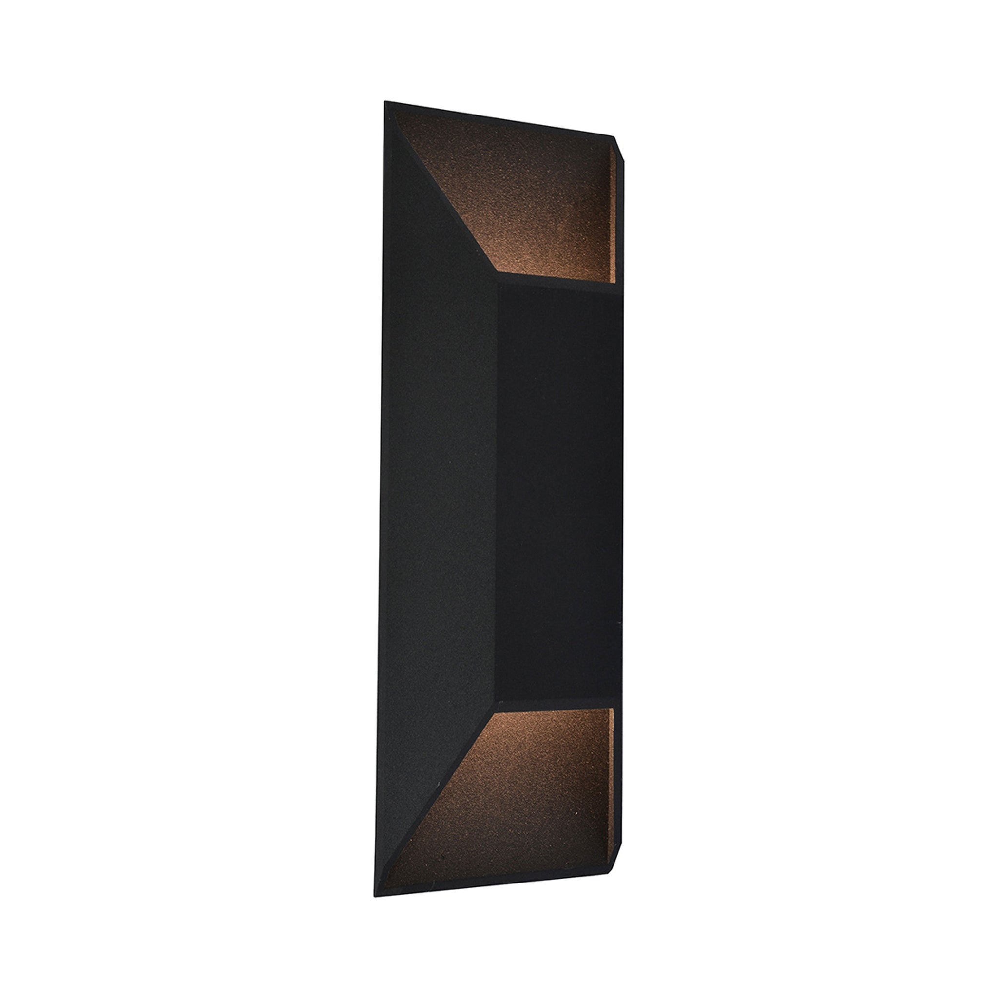 Eye-catching and geometric Avenue Outdoor Up Down Wall Light creates warm, ambient lighting for all outdoor spaces. The rectangular frame made of aluminum finish comes in a choice of powder coated Black and silver, and the light is softened and diffused by an acrylic lens. This modern piece makes a statement that complements a variety of design styles and is available with energy efficient, LED technology.