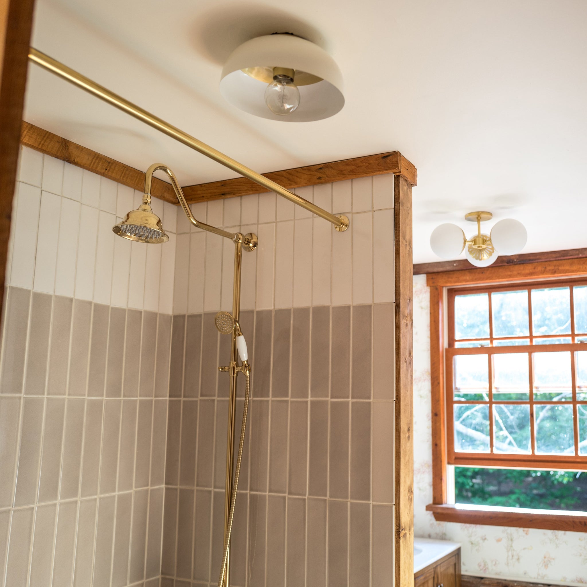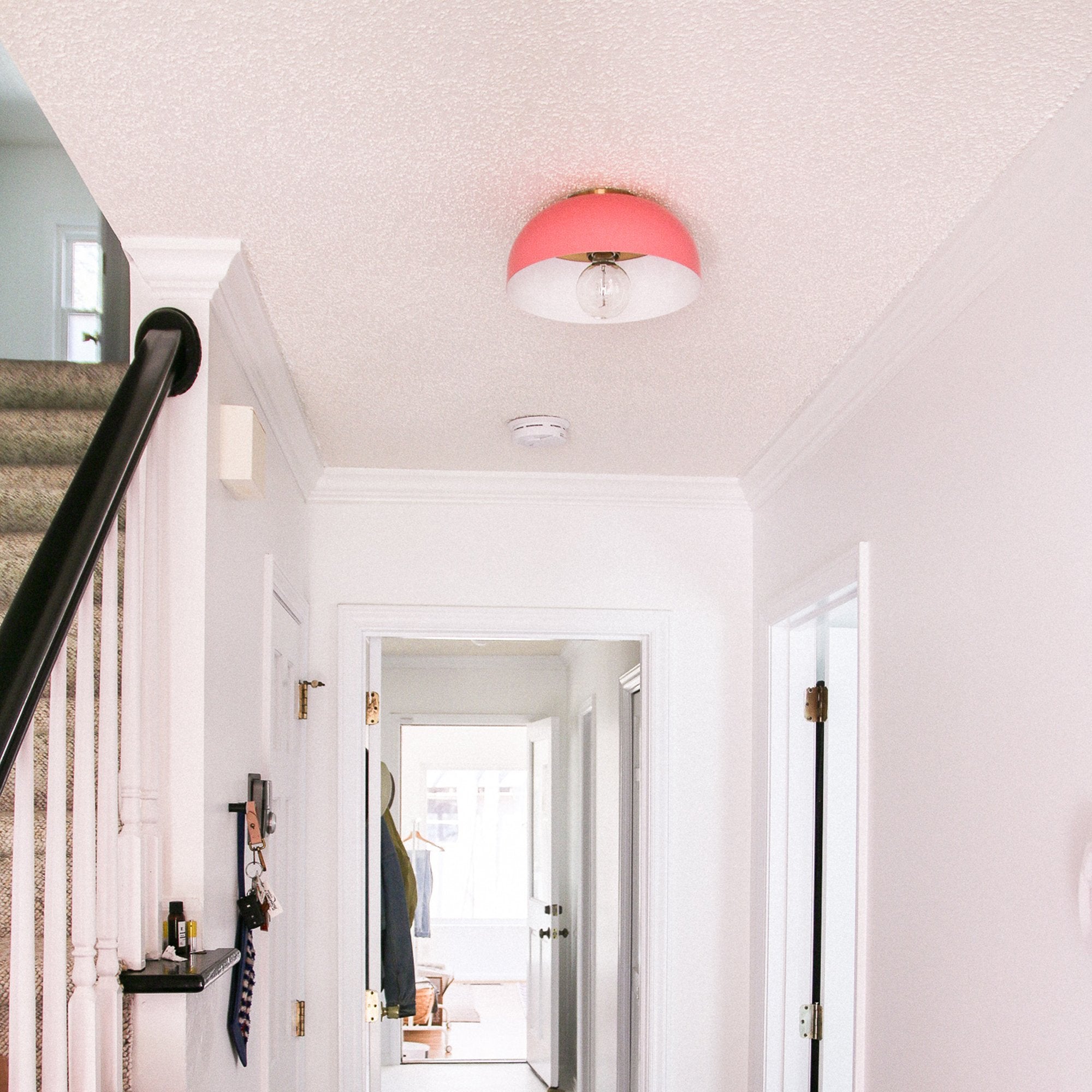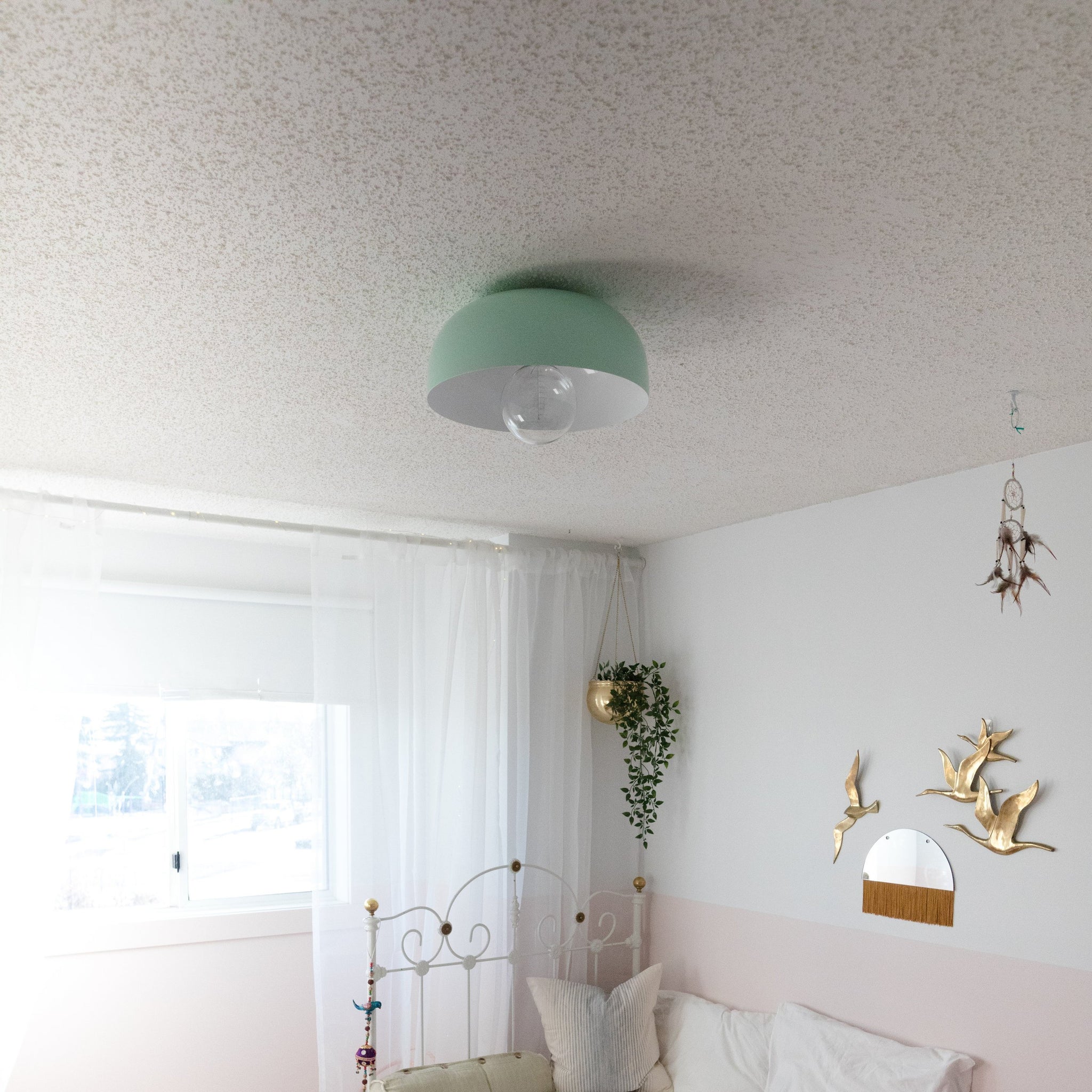 With a cheerfully vintage vibe, the Avery 1-Light Semi-Flush Mount Ceiling Light from Mitzi lends a harmonious look with its two-tone design and metallic accents. Available in playful, cheeky color combinations that offer a diner-esque nostalgia, the Avery ceiling mount fixture provides ample lighting for retro-inspired homes.