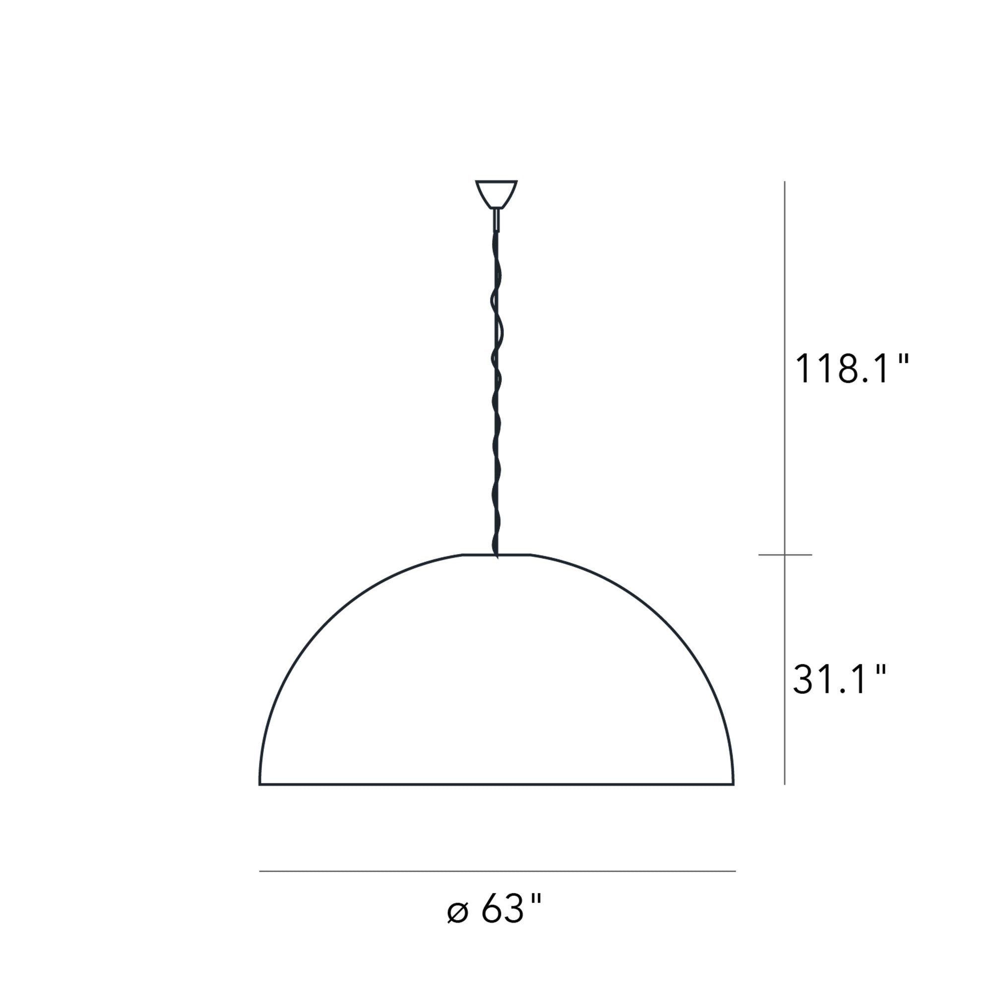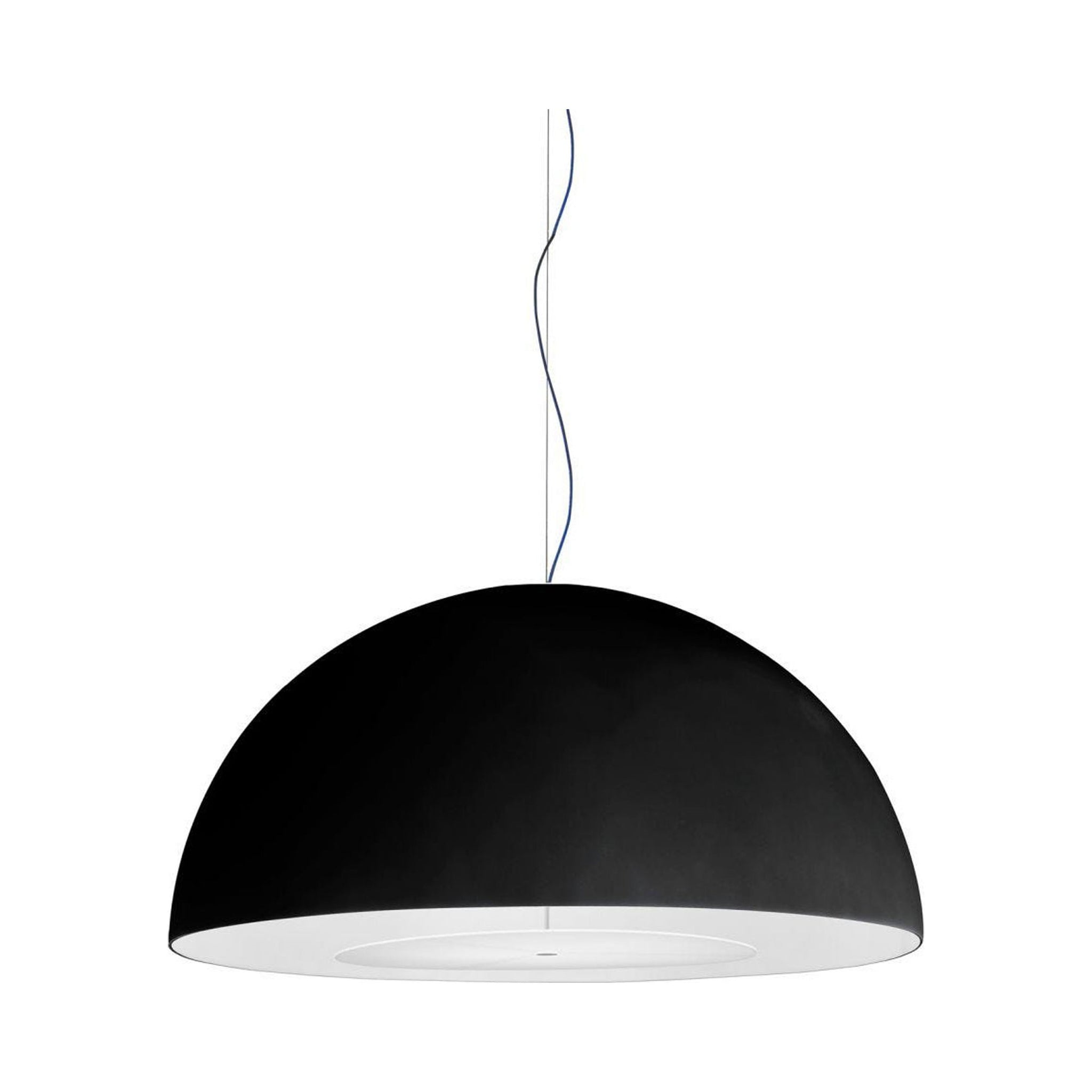 Big-impact suspension lamp, spectacular thanks to its large sizes, available in 120 and 160 centimetre diameters. Diffuser in silver and gold on request. Available separately a bottom disc that covers and hides the light sources.